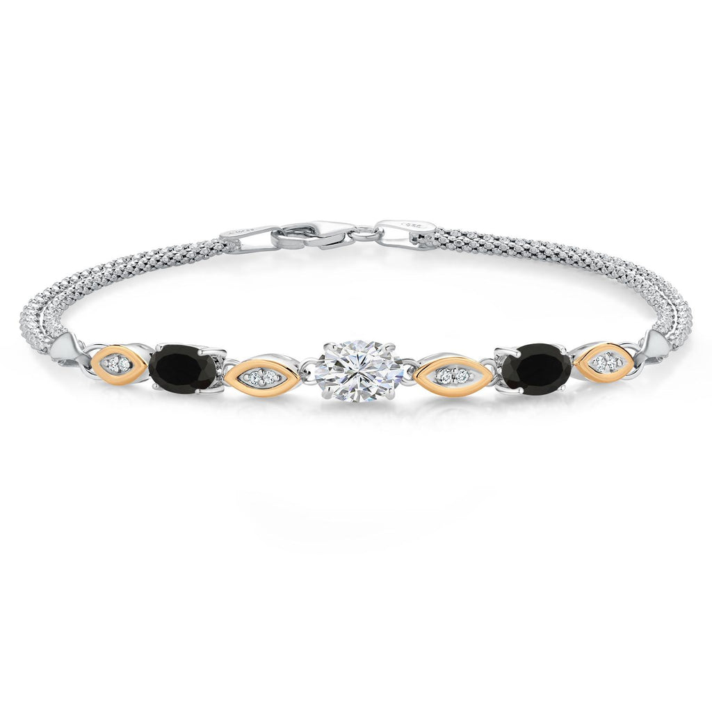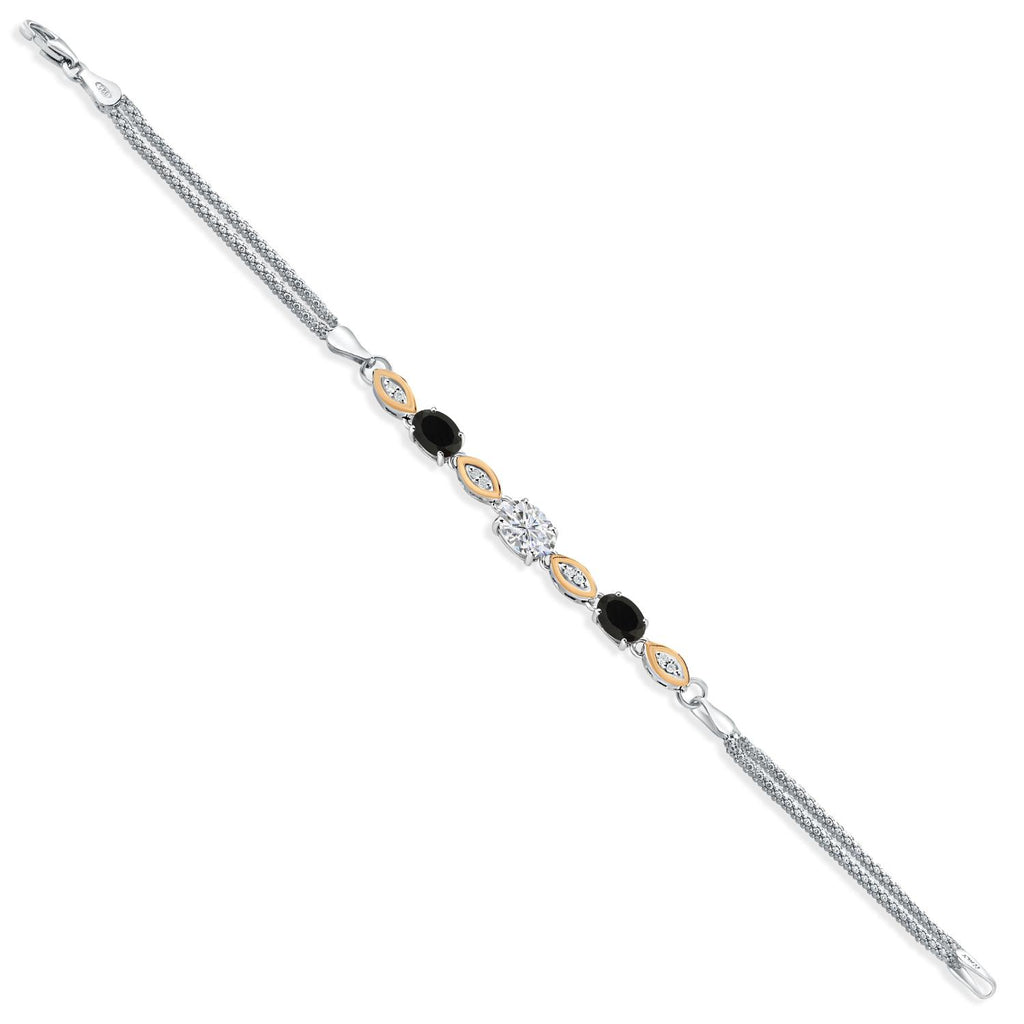 925 Silver and 10K Yellow Gold Lab Grown Diamond and Black Onyx Bracelet For Women | 1.58 Cttw | Center Diamond 0.70 Ct | DEF Color | VVS-VS Clarity | Wheat Chain | 6.5/7/7.5 Inches
