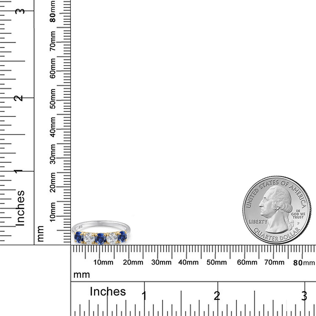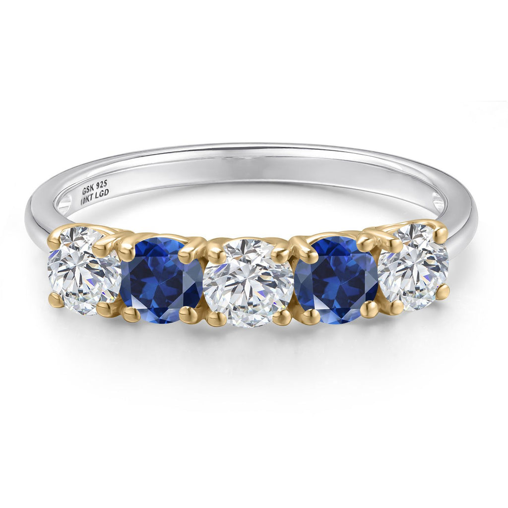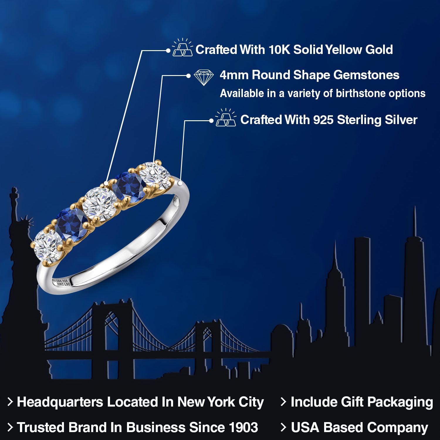 925 Silver and 10K Yellow Gold Lab Grown Diamond and Blue Created Sapphire Wedding-Bands Ring For Women | 1.31 Cttw | Round 4MM | Gemstone April Birthstone