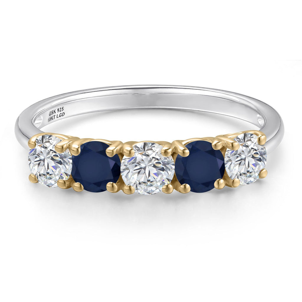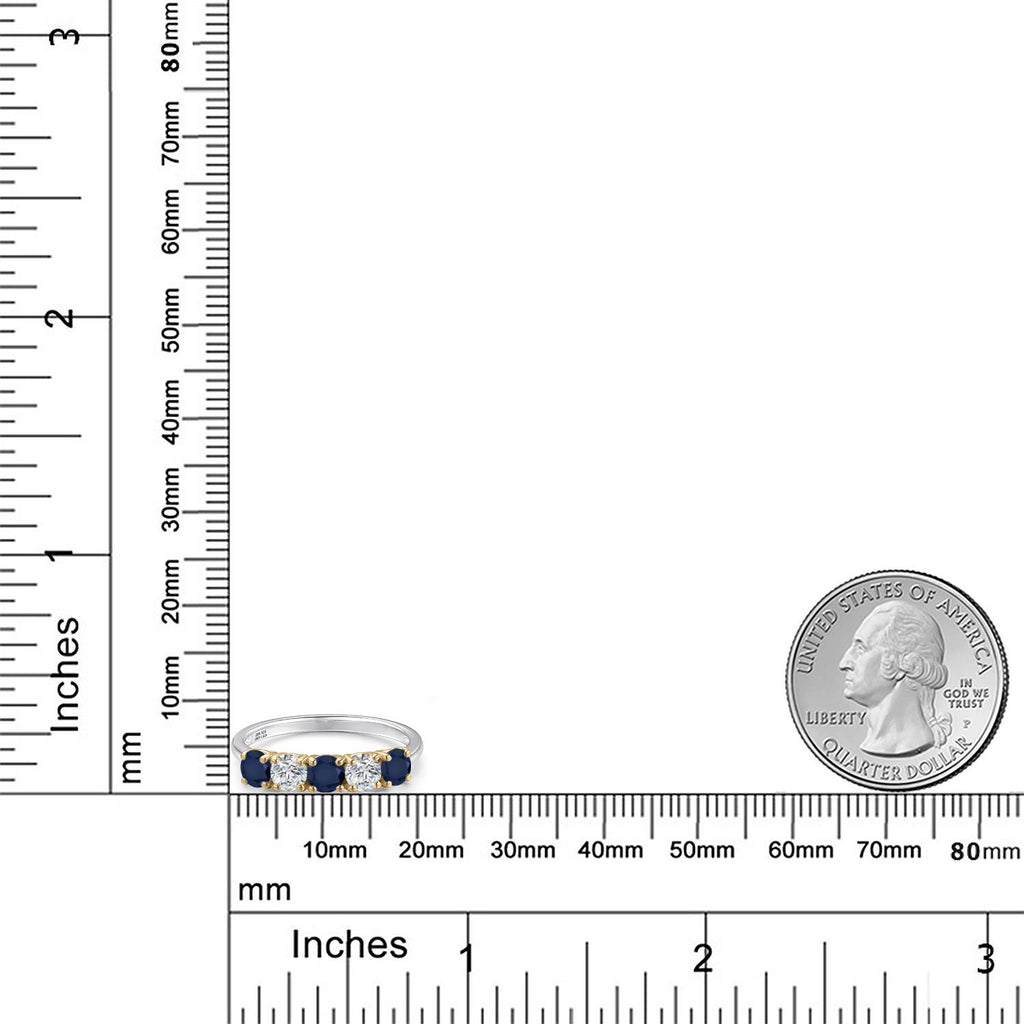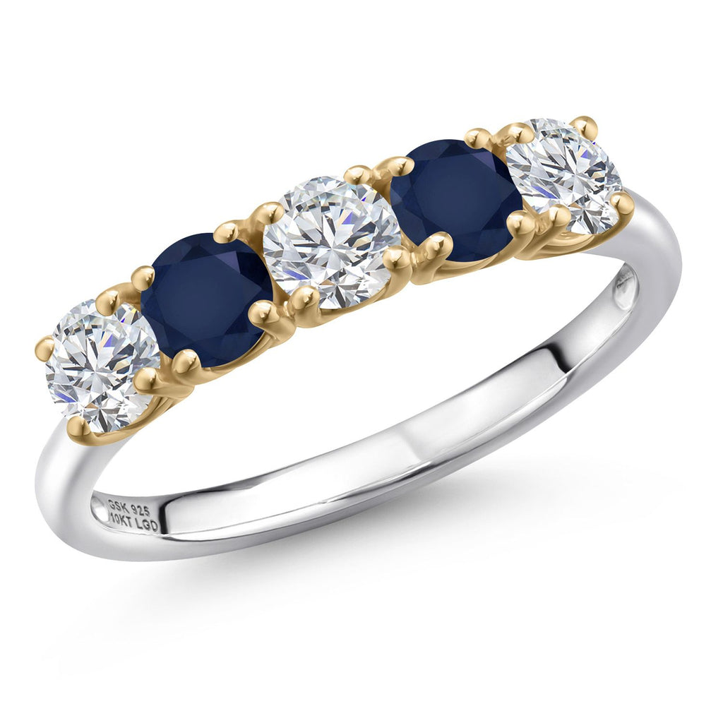 MEASUREMENTS: 4x4mm Round E - F Lab Grown Diamond, 4x4mm Round Diffused Blue Sapphire. Total Carat Weight is 1.51 cttw
