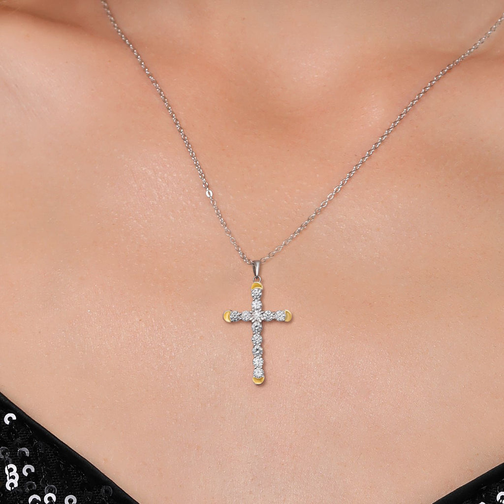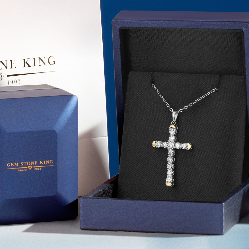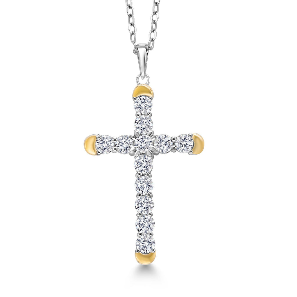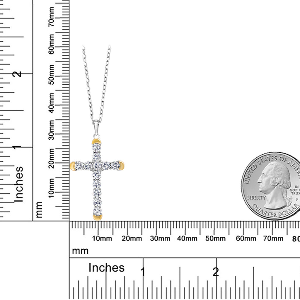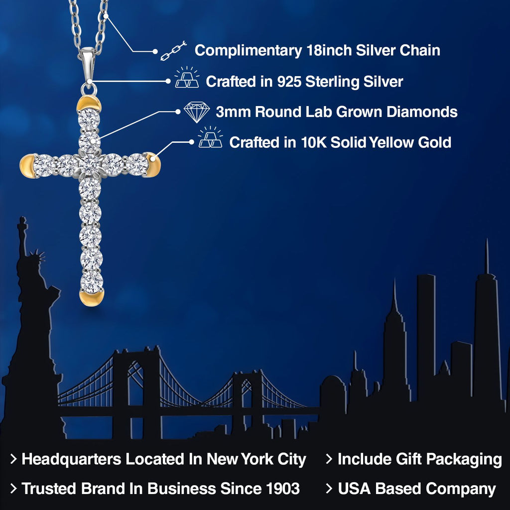 1.20 Cttw Lab Grown Diamond Religious Cross Pendant Necklaces for Women | 925 Silver and 10K Yellow Gold | F-G Color | VVS-VS Clarity | 30X19MM | With 18 Inch Chain