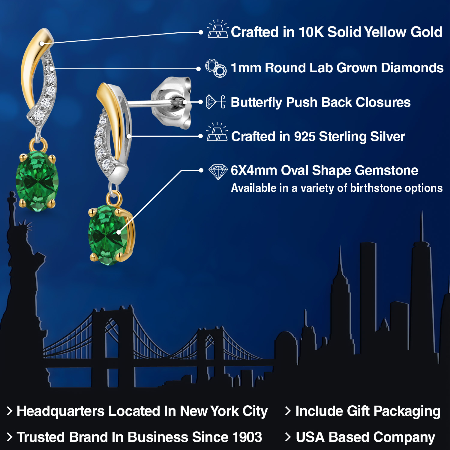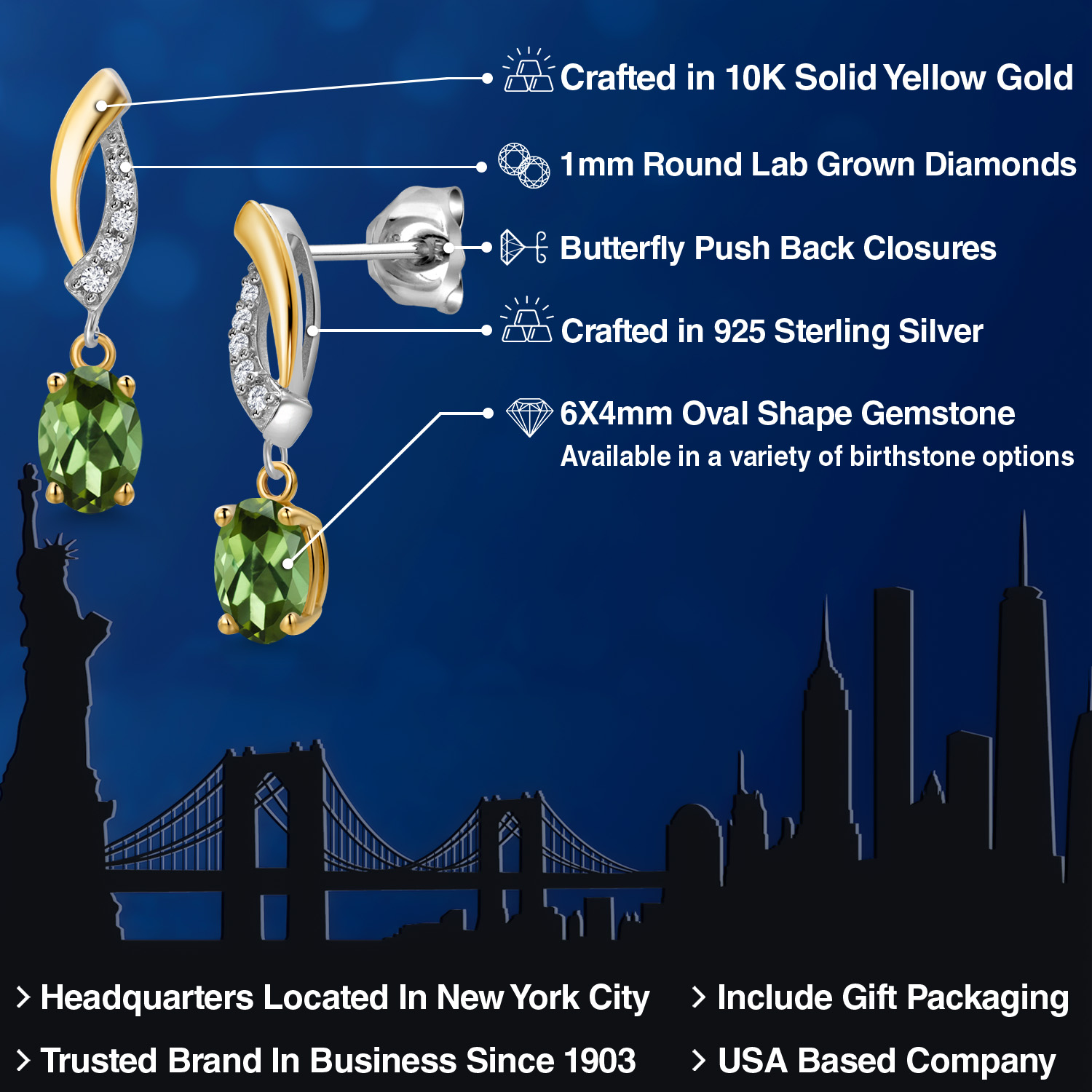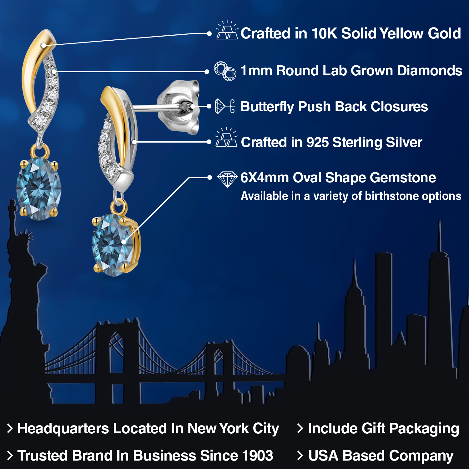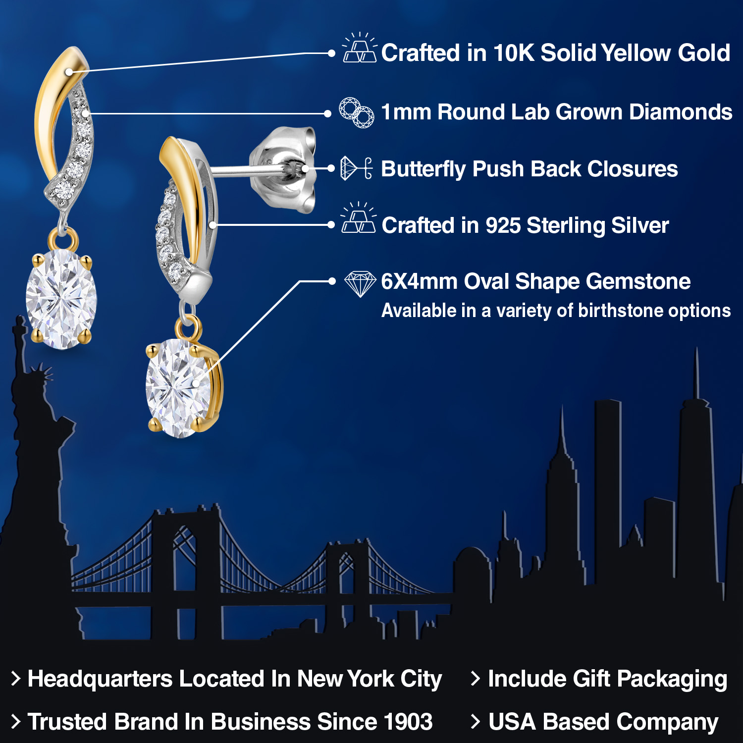 CUSTOMIZABLE GEMSTONE BIRTHSTONE OPTIONS: Choose from a collection of 6X4MM oval-shaped birthstones to personalize these drop earrings with a meaningful touch. The vibrant gemstone is cradled in a masterful combination of cool 925 sterling silver and warm 10K yellow gold, enhancing its allure and making this pair a standout addition to any jewelry collection.