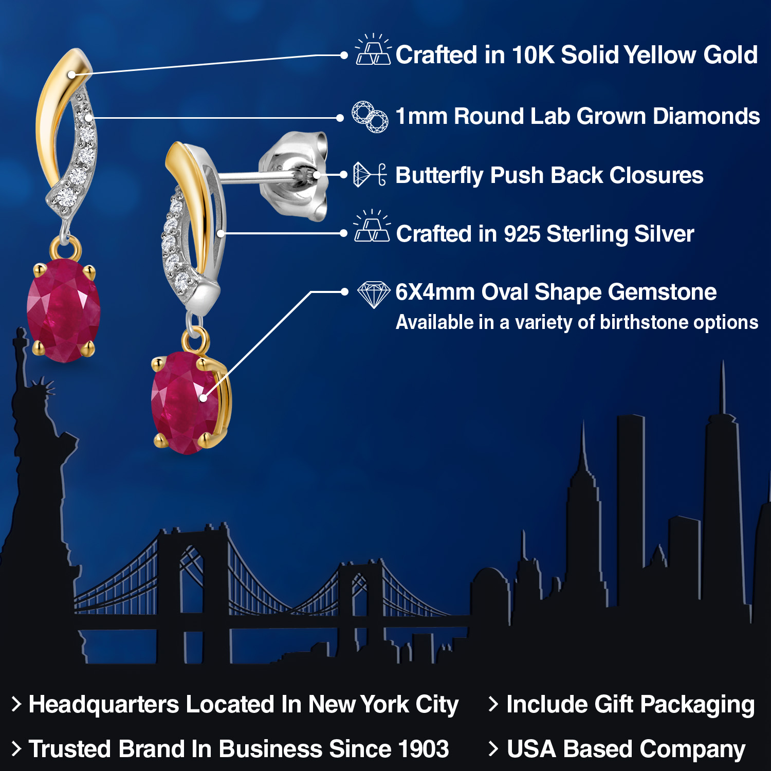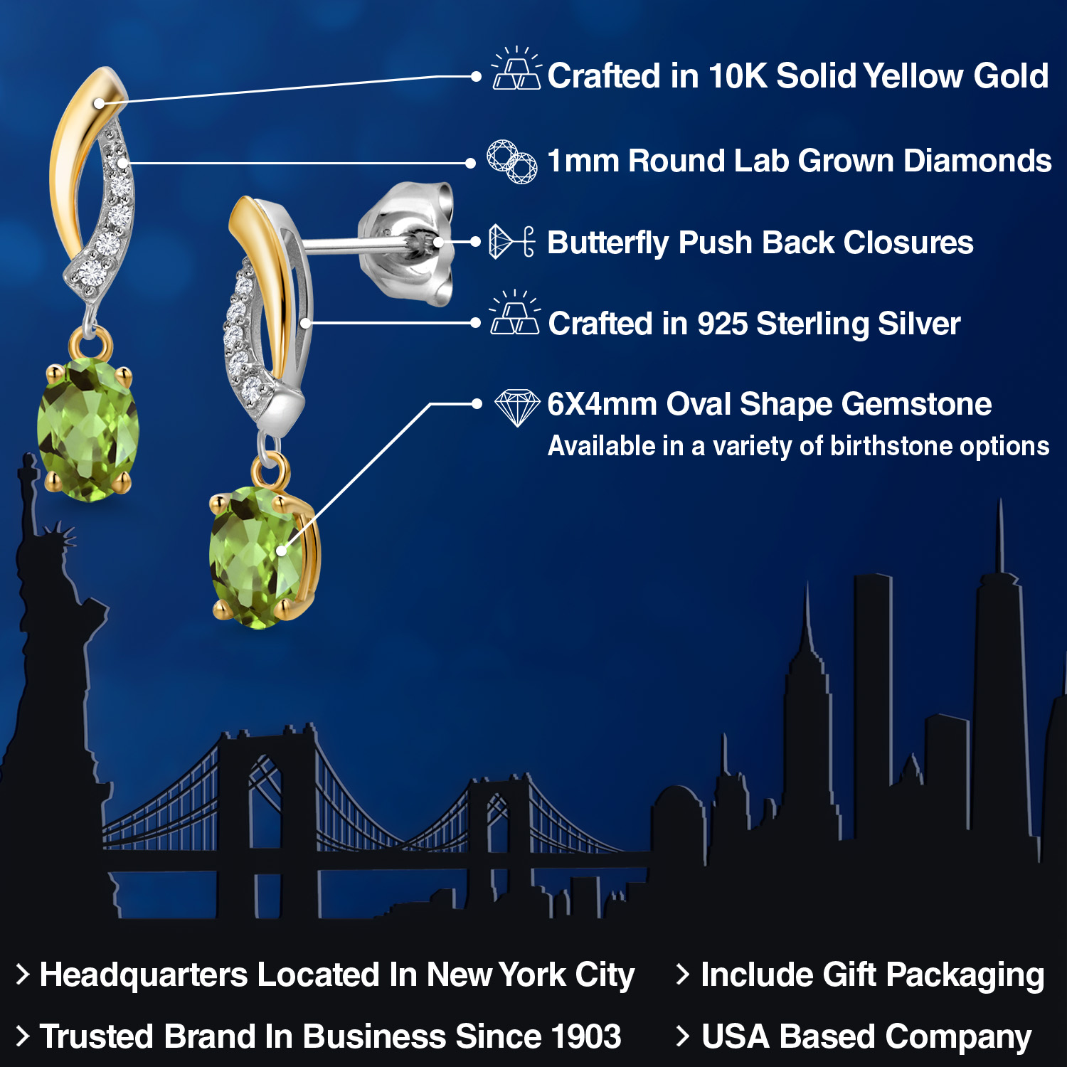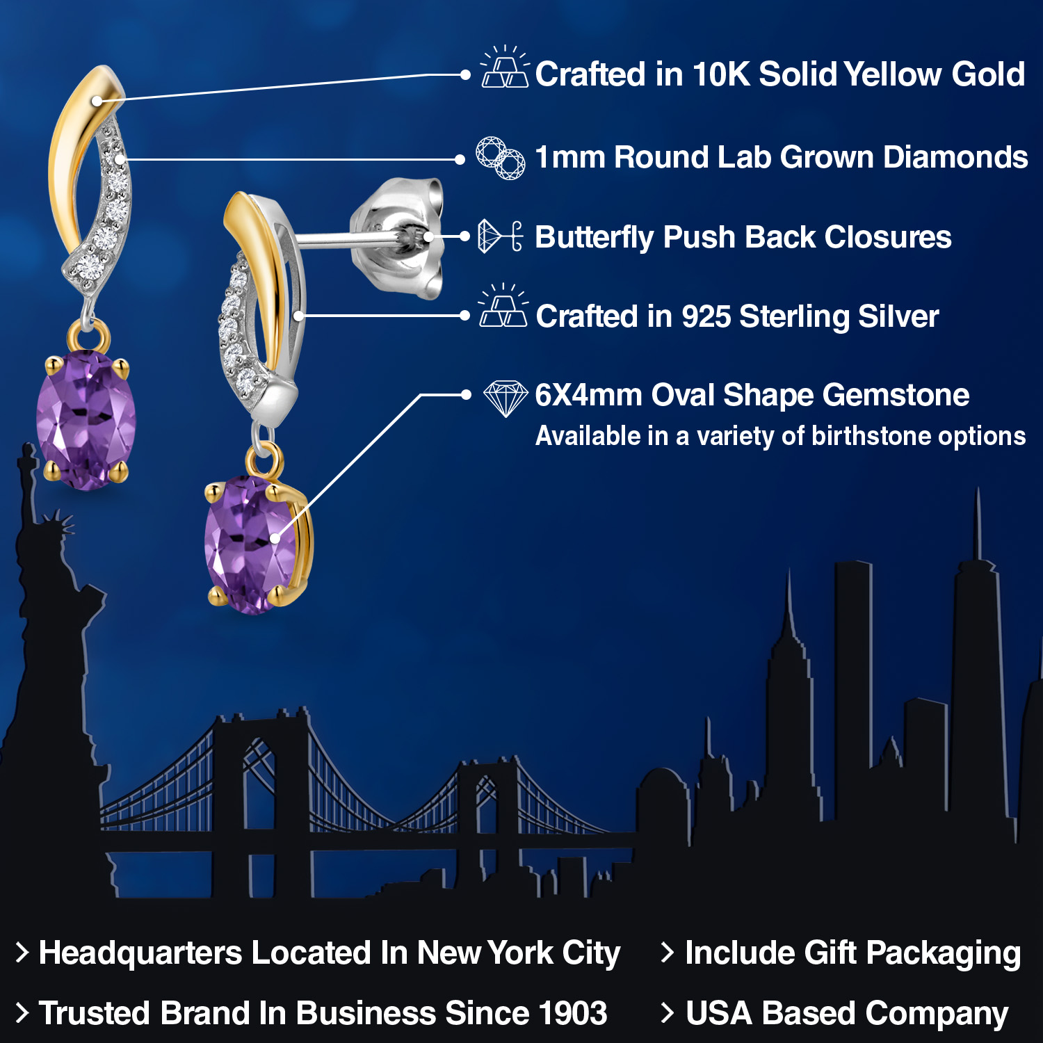 CUSTOMIZABLE GEMSTONE BIRTHSTONE OPTIONS: Choose from a collection of 6X4MM oval-shaped birthstones to personalize these drop earrings with a meaningful touch. The vibrant gemstone is cradled in a masterful combination of cool 925 sterling silver and warm 10K yellow gold, enhancing its allure and making this pair a standout addition to any jewelry collection.
