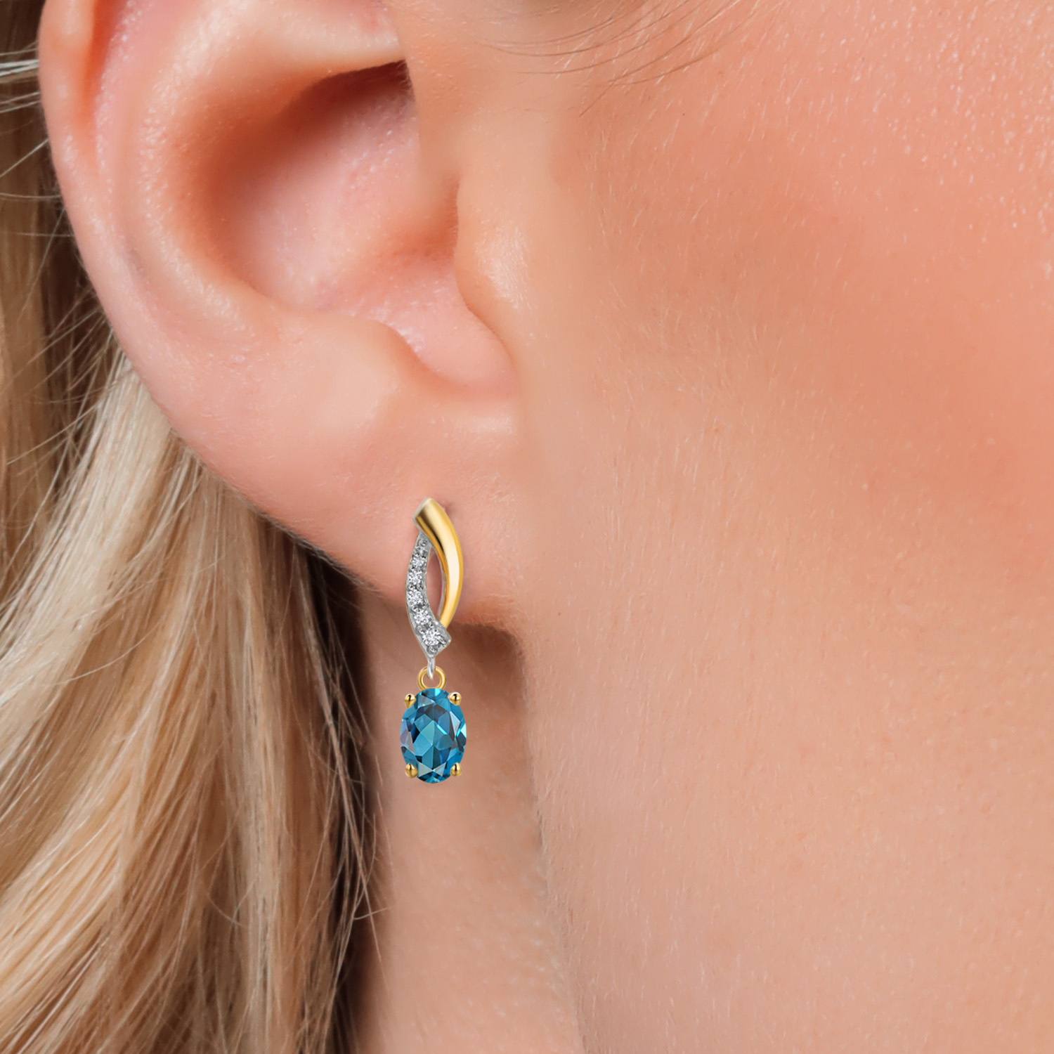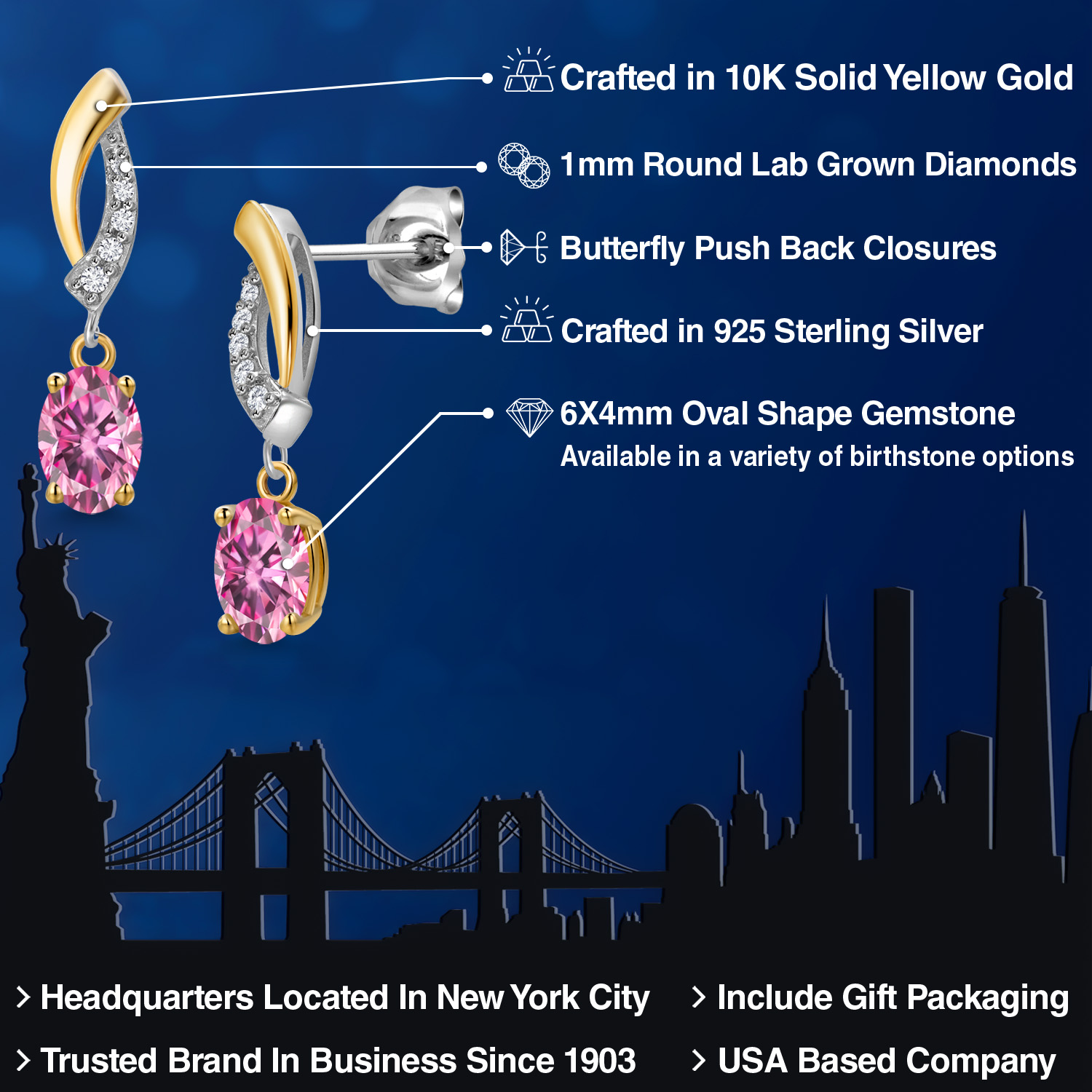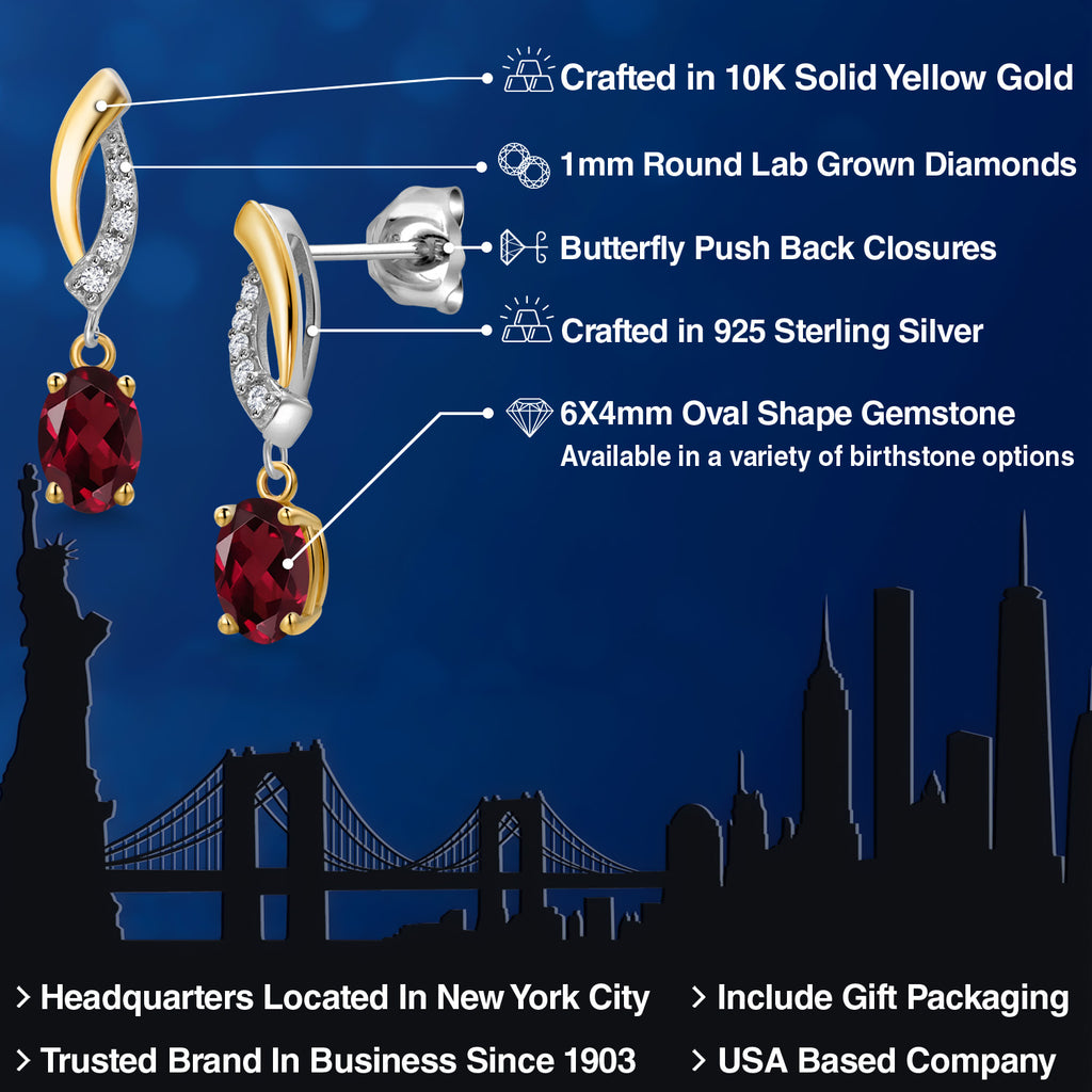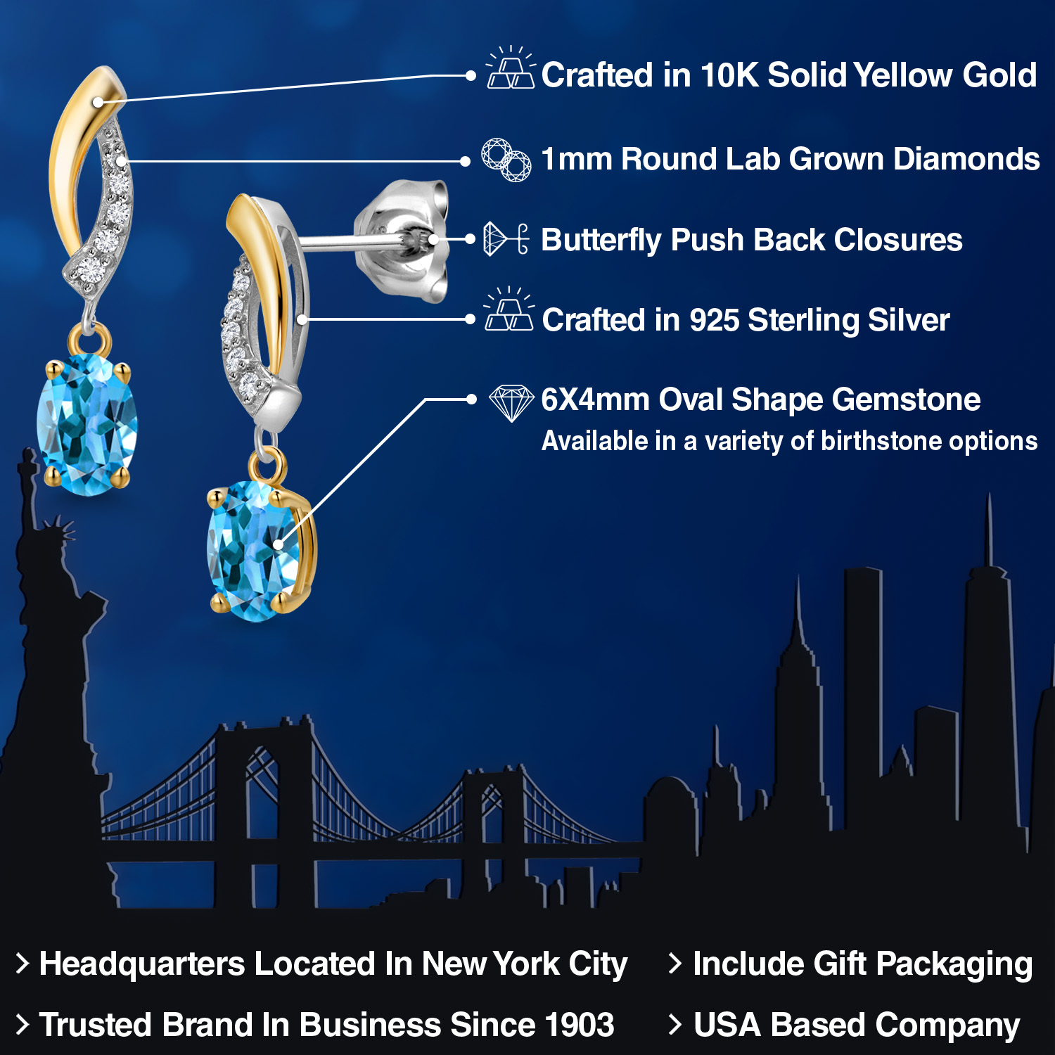 CUSTOMIZABLE GEMSTONE BIRTHSTONE OPTIONS: Choose from a collection of 6X4MM oval-shaped birthstones to personalize these drop earrings with a meaningful touch. The vibrant gemstone is cradled in a masterful combination of cool 925 sterling silver and warm 10K yellow gold, enhancing its allure and making this pair a standout addition to any jewelry collection.
