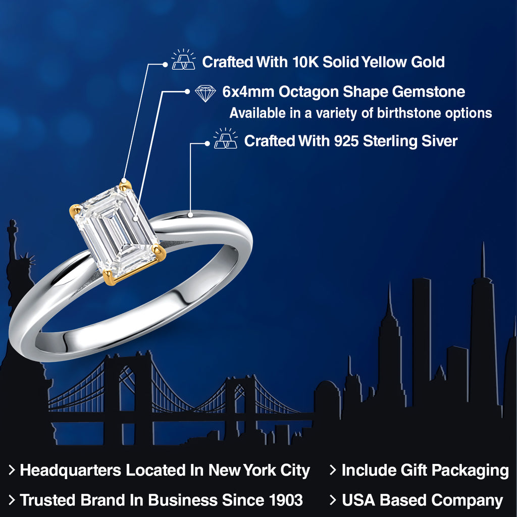 2-Tone Engagement Ring For Women | 925 Silver and 10K Yellow Gold | Gemstone Birthstone | 6MM Cushion Cut | Wedding Anniversary Promise Ring | Available In Size 5, 6, 7, 8, 9