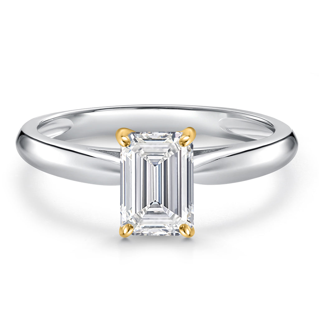 CLASSIC 4-PRONG SETTING WITH SLEEK PROFILE: The emerald-cut center stone is securely held in a polished 4-prong setting, allowing maximum light exposure for brilliant sparkle. The smooth band and balanced proportions create a graceful, modern silhouette that blends minimalist style with enduring symbolism.