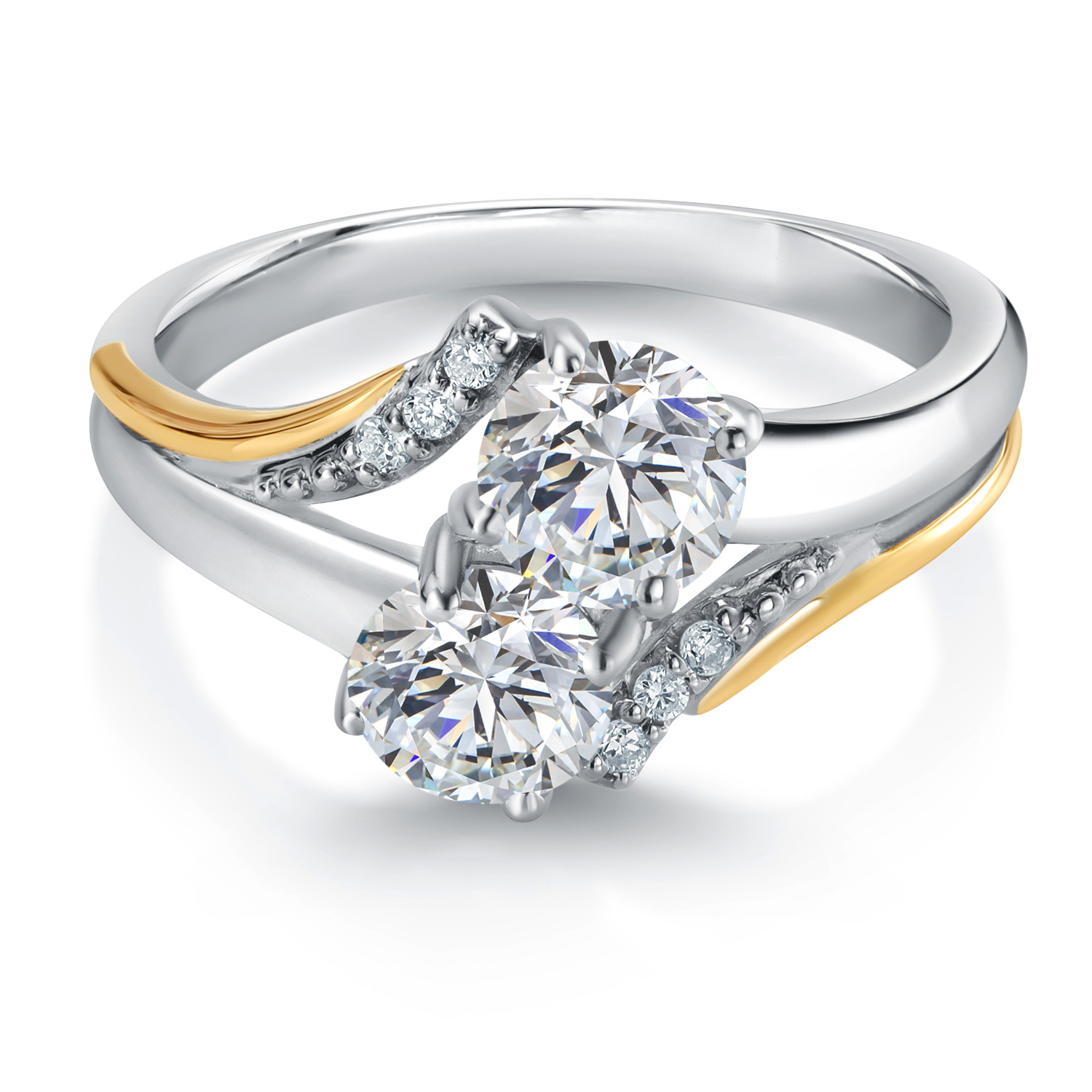 1.04 Cttw Lab Grown Diamond Engagement Ring For Women | 925 Silver and 10K Yellow Gold | Round 5MM | Gemstone April Birthstone | DEF Color | VVS-VS Clarity