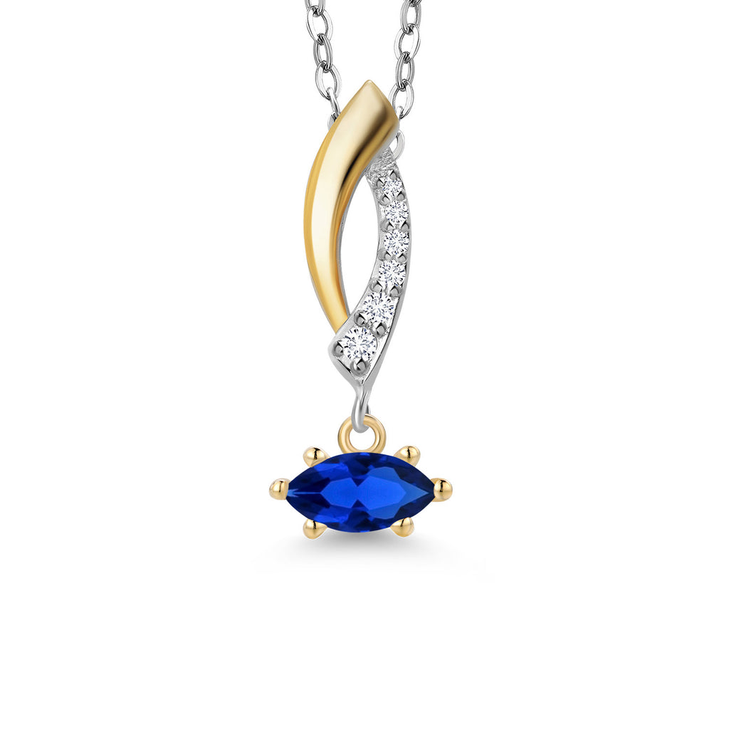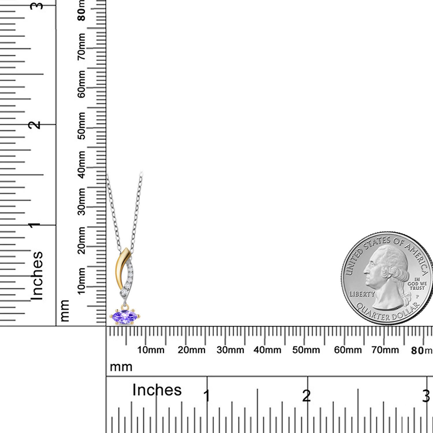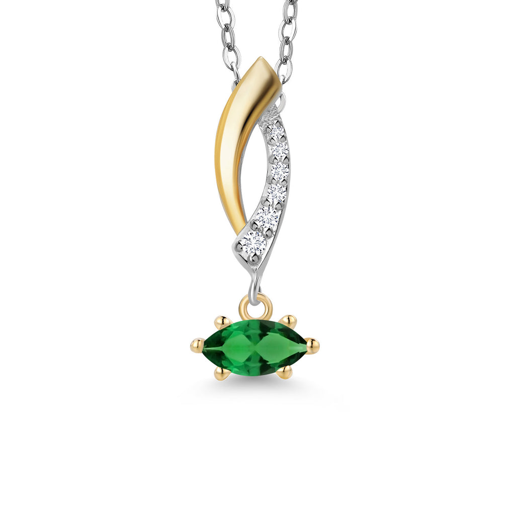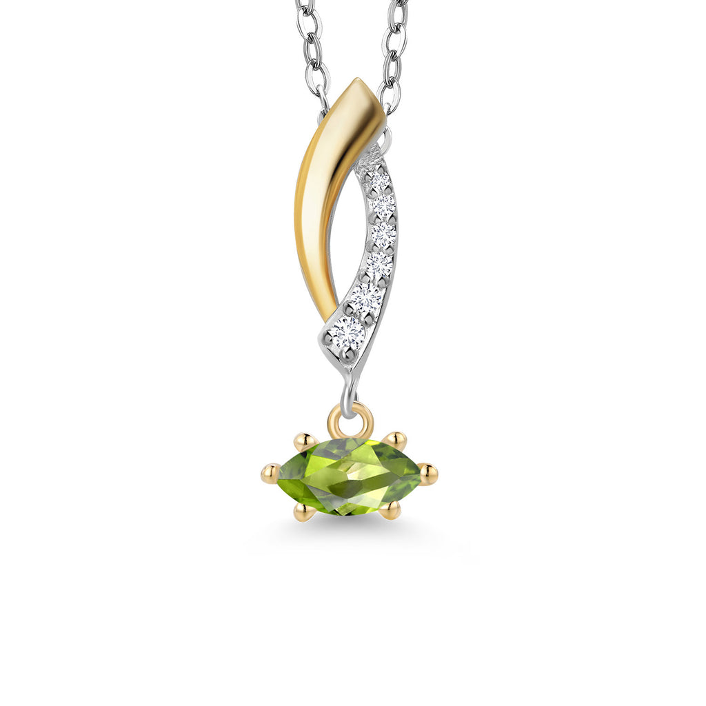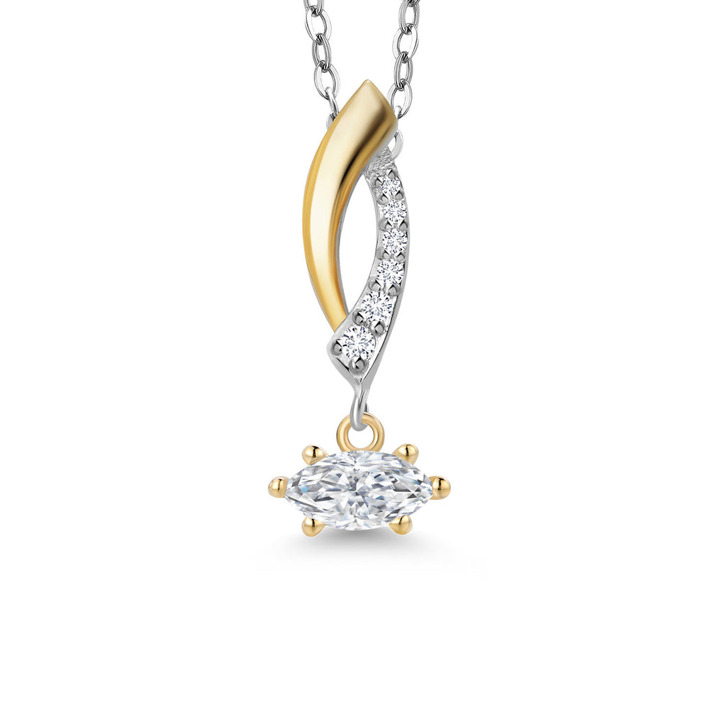 925 Silver and 10K Yellow Gold 6X3MM Marquise Gemstone Birthstone and White Lab Grown Diamond Pendant Necklace | Two-Tone Necklace For Women | 18 Inch Silver Chain