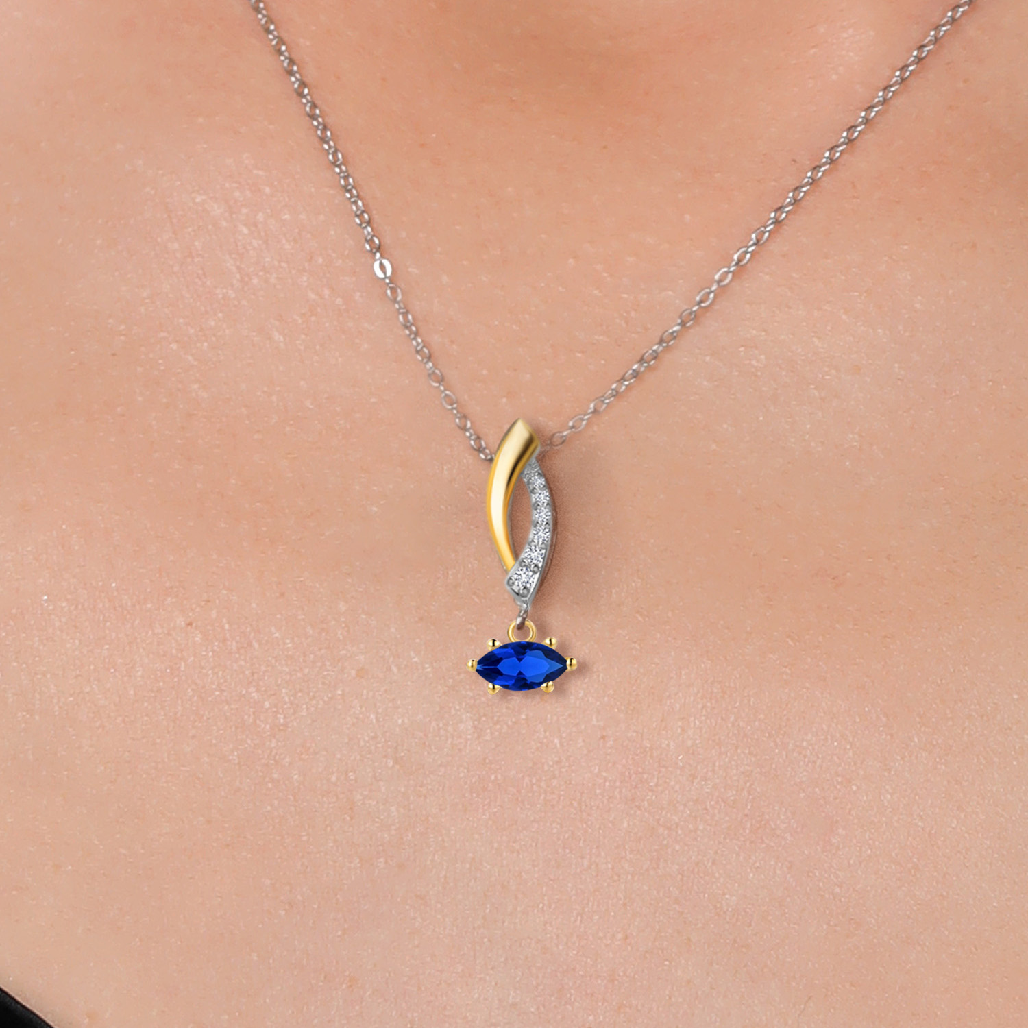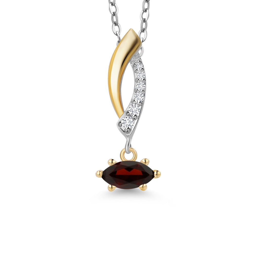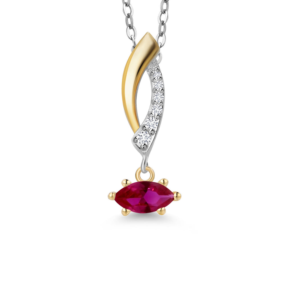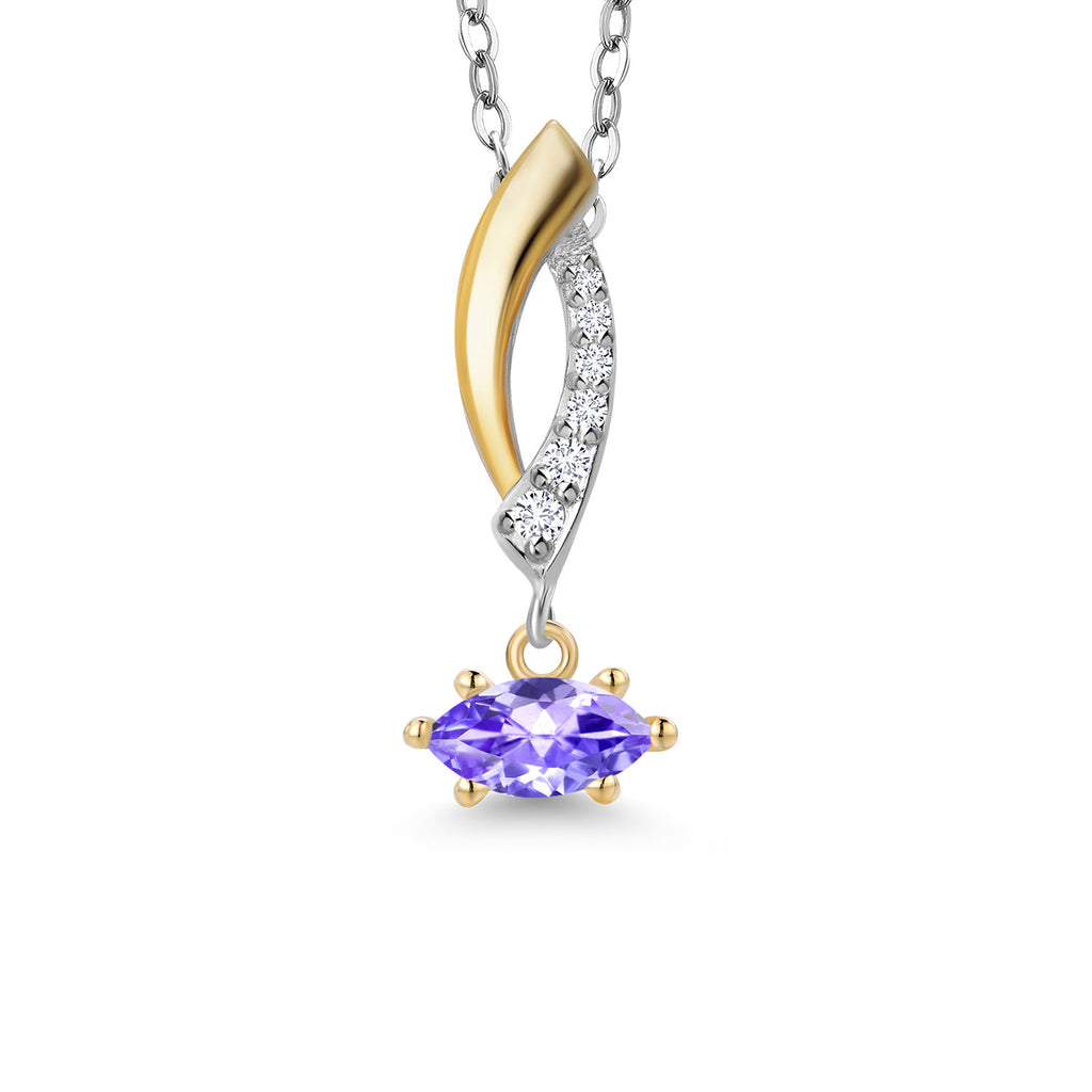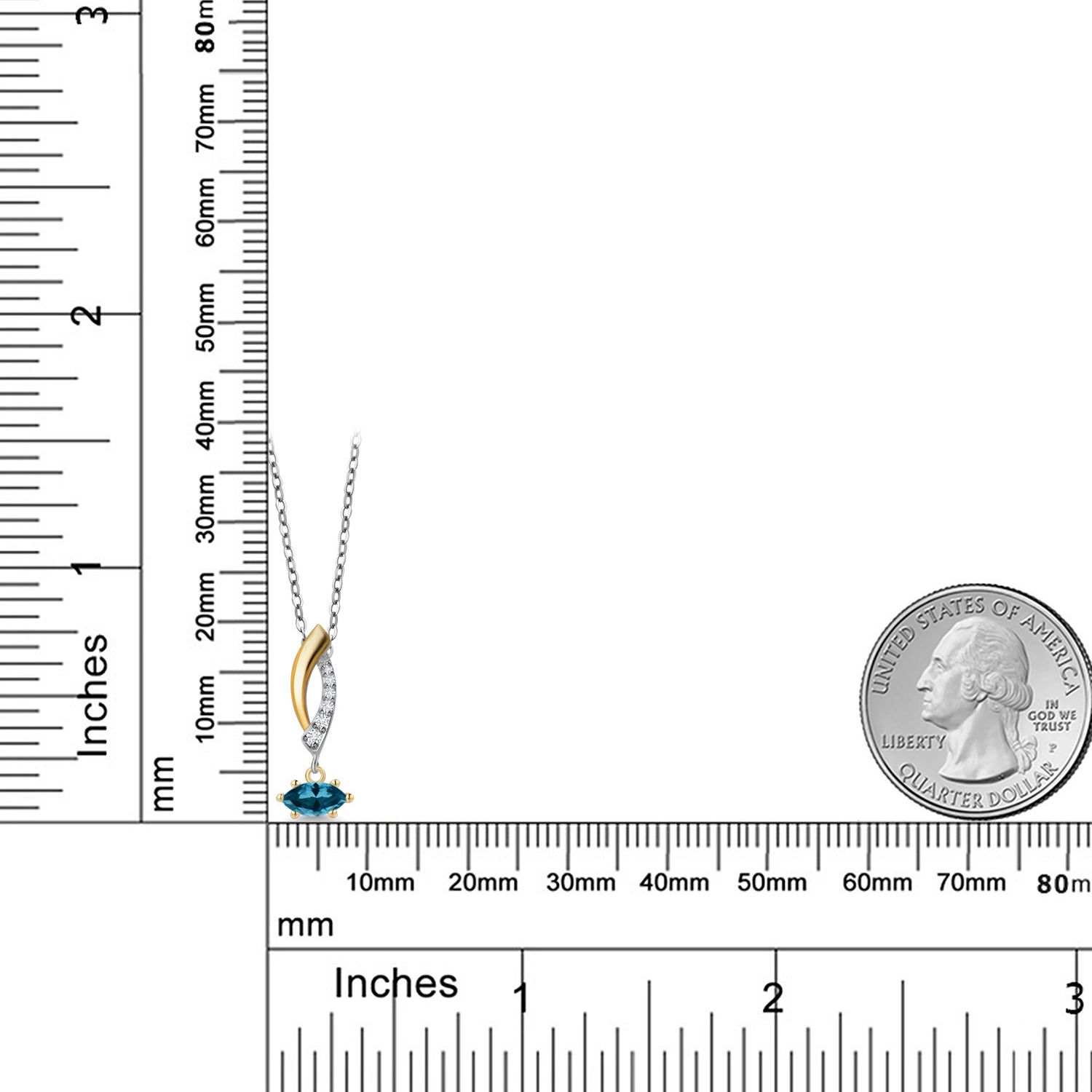 925 Silver and 10K Yellow Gold 6X3MM Marquise Gemstone Birthstone and White Lab Grown Diamond Pendant Necklace | Two-Tone Necklace For Women | 18 Inch Silver Chain