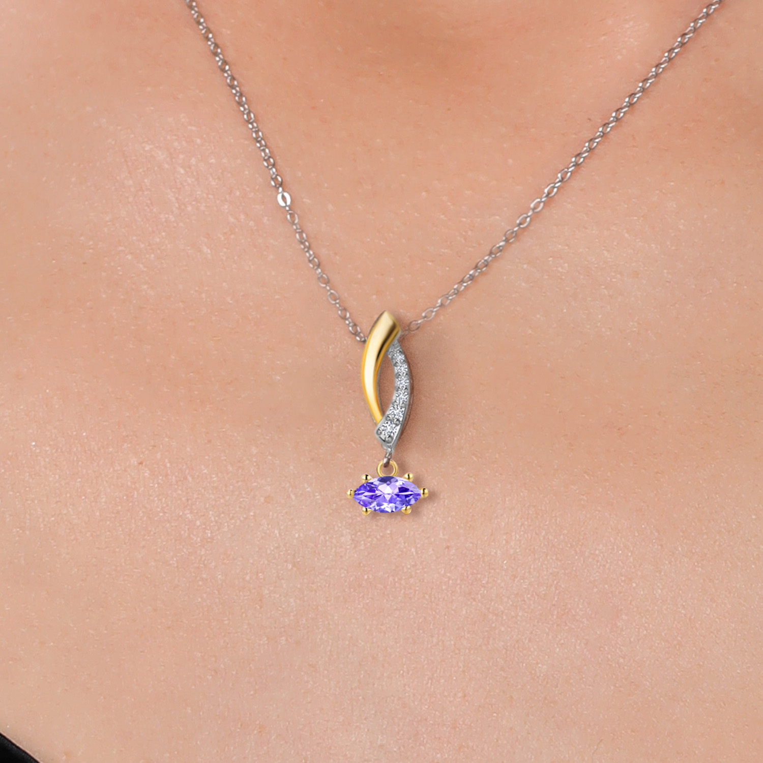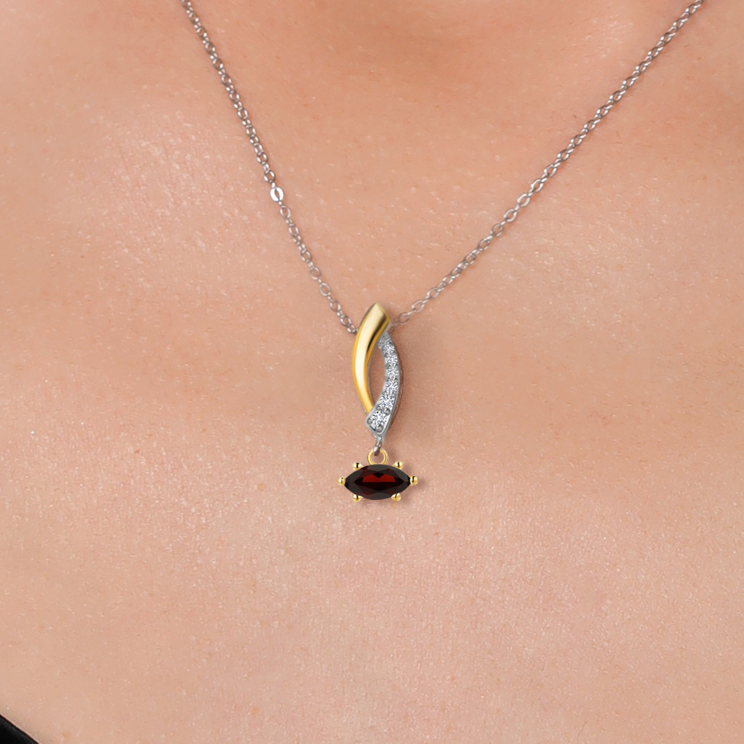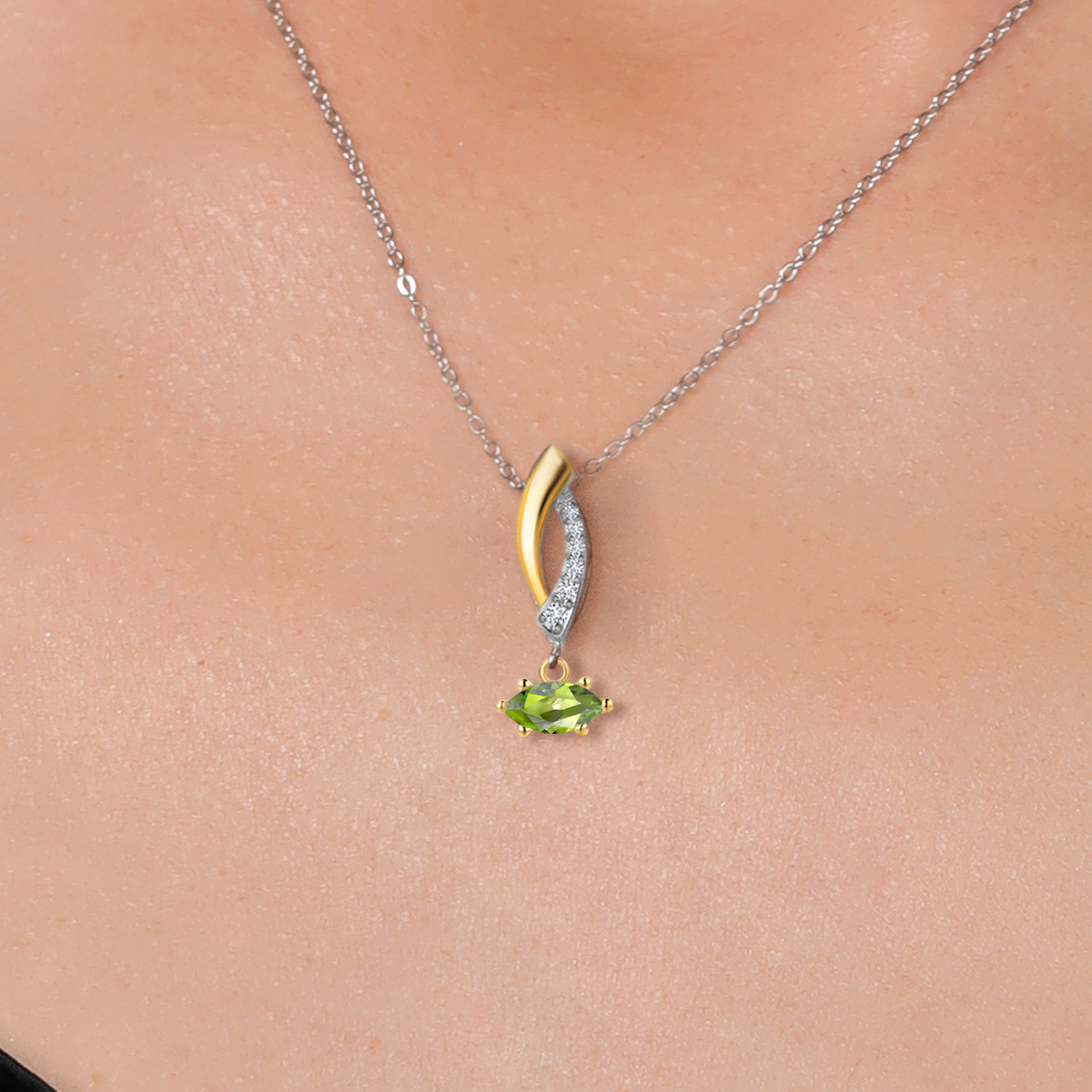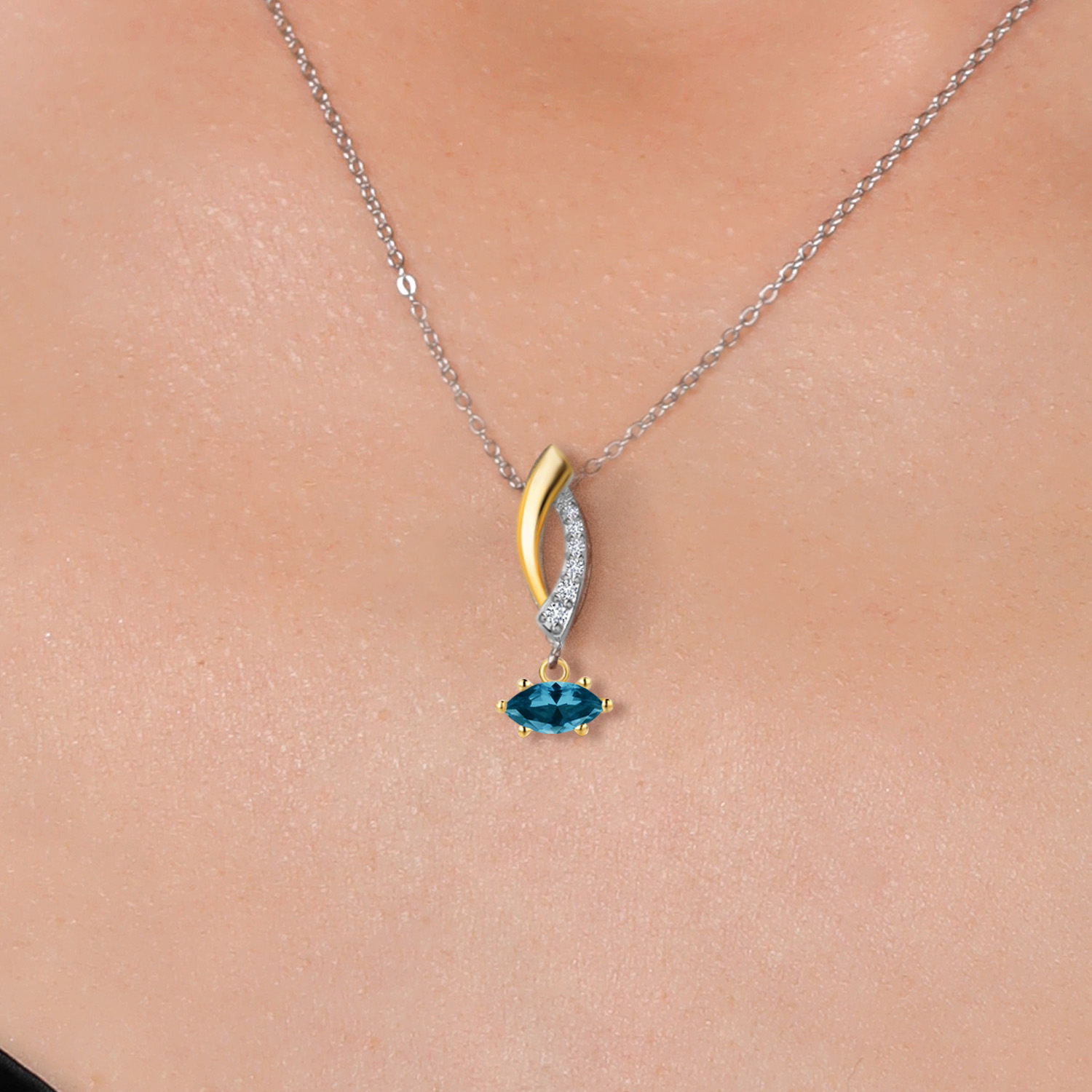 925 Silver and 10K Yellow Gold 6X3MM Marquise Gemstone Birthstone and White Lab Grown Diamond Pendant Necklace | Two-Tone Necklace For Women | 18 Inch Silver Chain