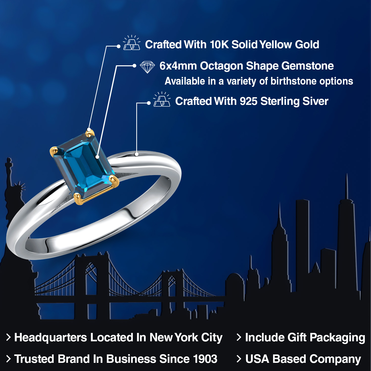 Metal Type: 925 Sterling Silver and 10K Yellow Gold