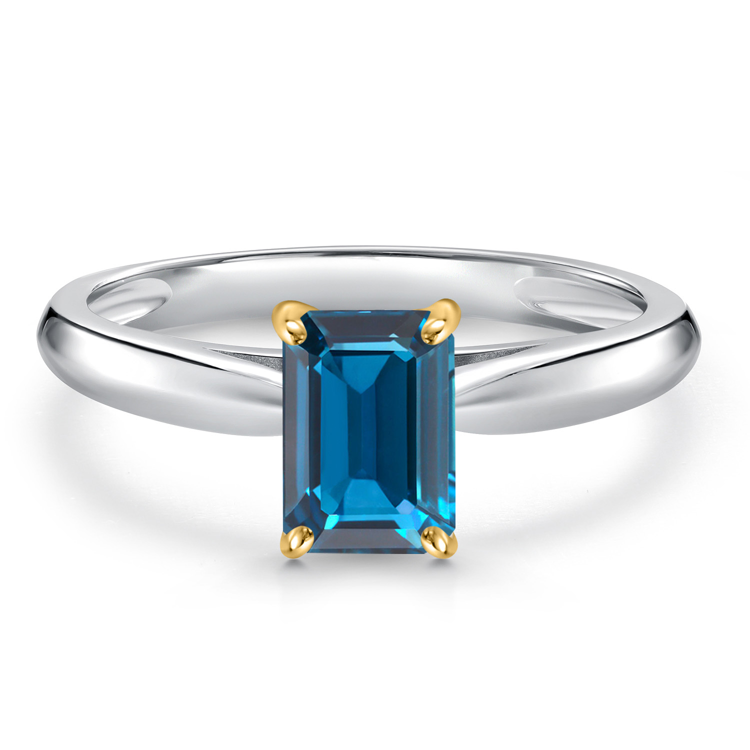 Gem Stone King 925 Silver and 10K Yellow Gold London Blue Topaz Engagement Ring For Women | 0.66 Cttw | Emerald Cut 6X4MM | Gemstone November Birthstone | Size 8
