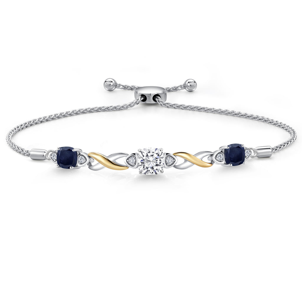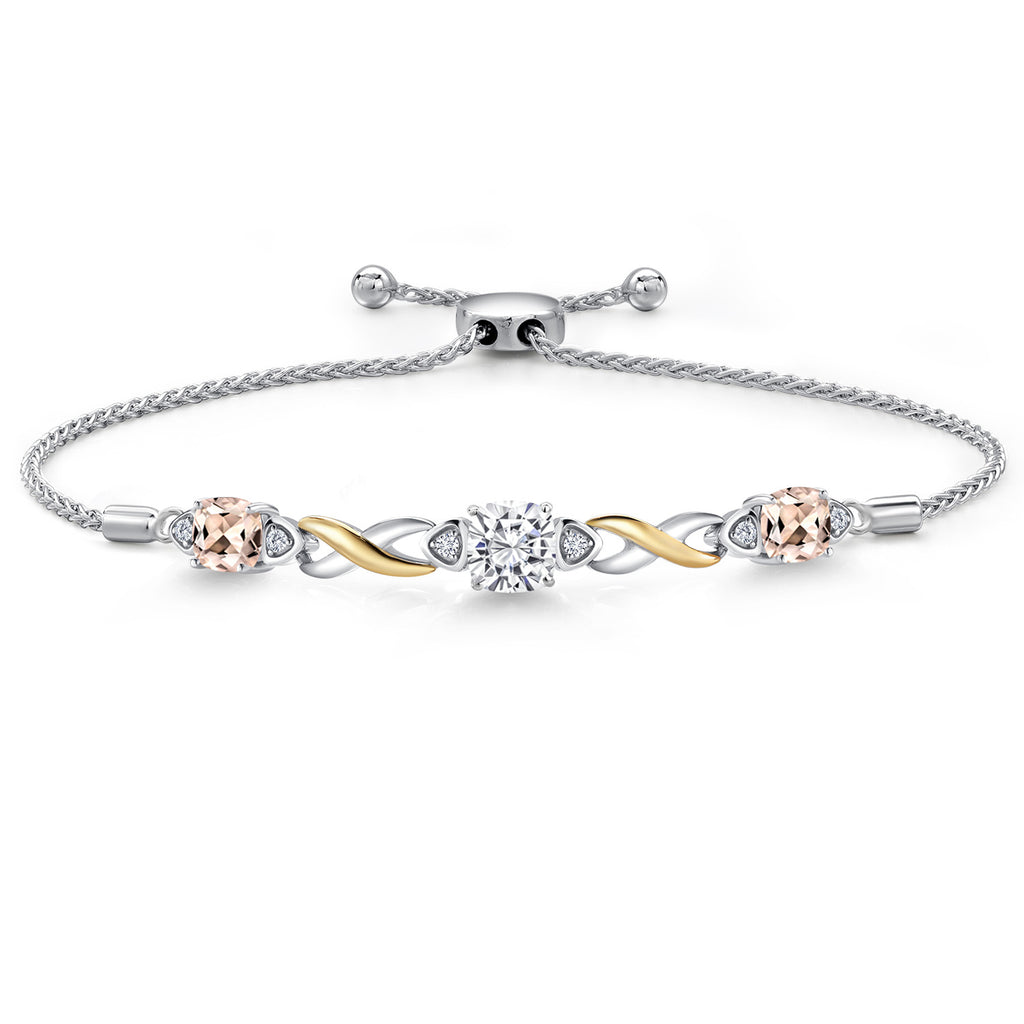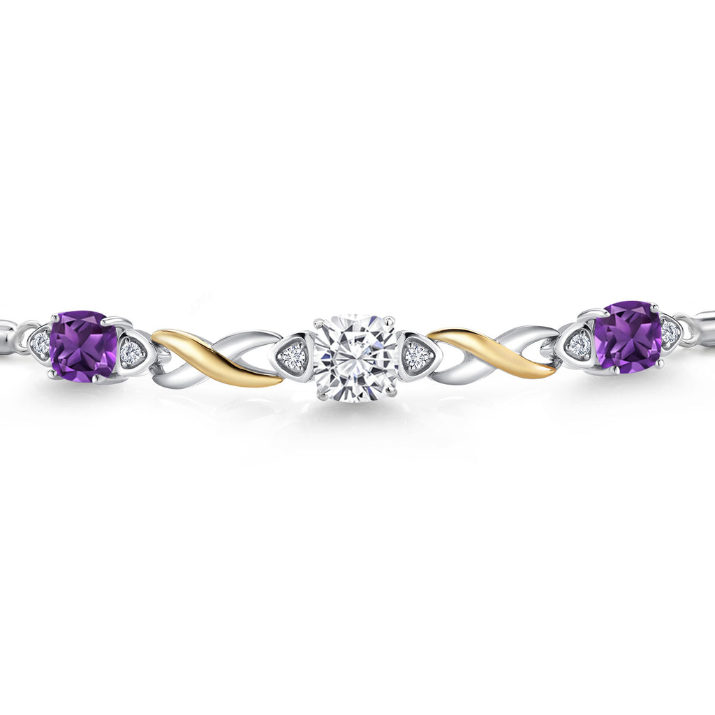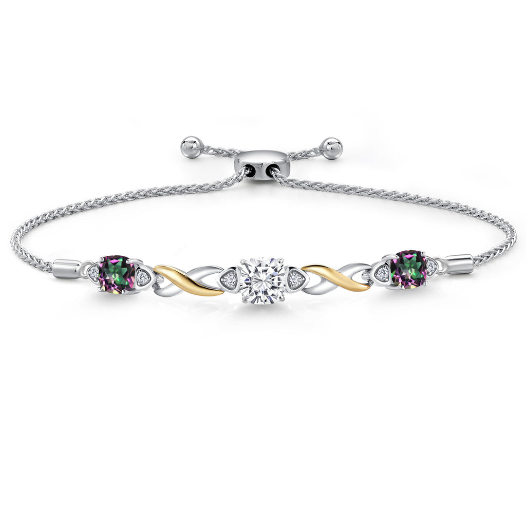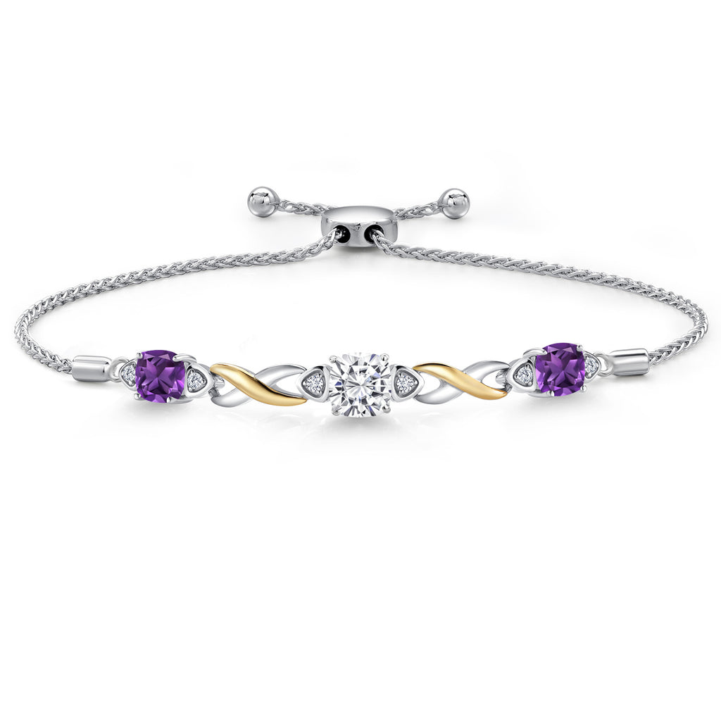 925 Silver and 10K Yellow Gold Moissanite and Gemstone Birthstone Infinity Bracelet for Women with Lab Grown Diamond Accents | Cushion 6MM and 5MM | Adjustable Bolo Bracelet | Easy-On Easy-Off