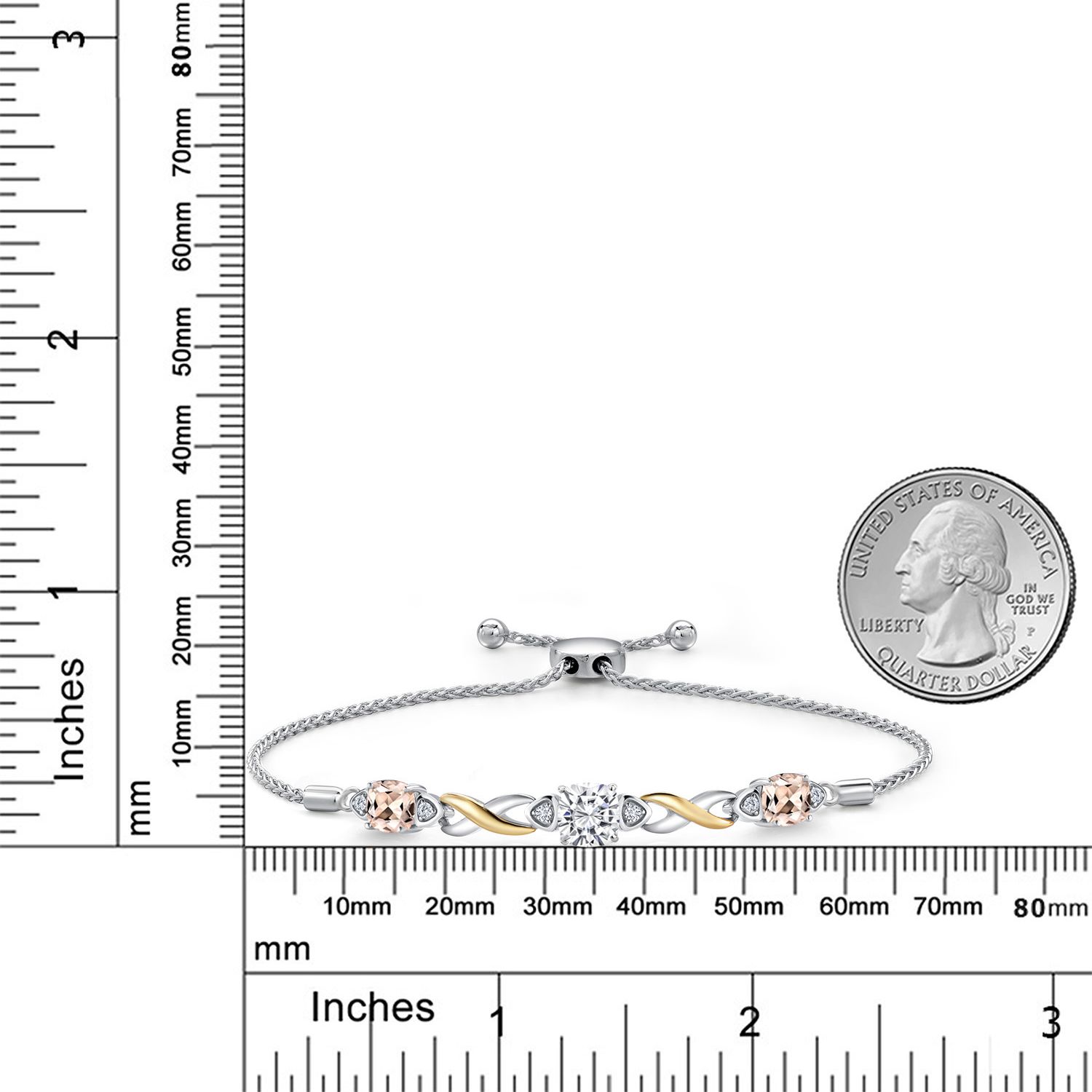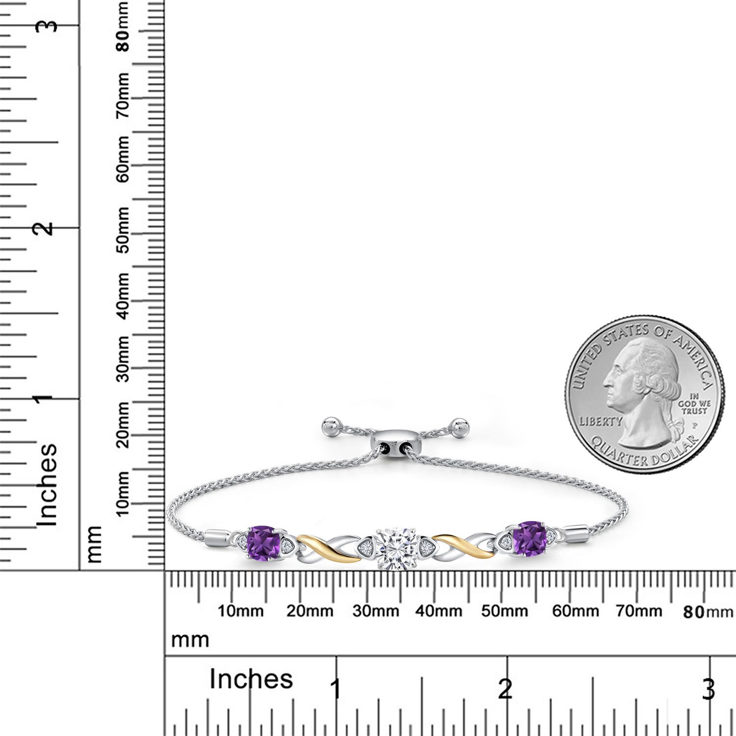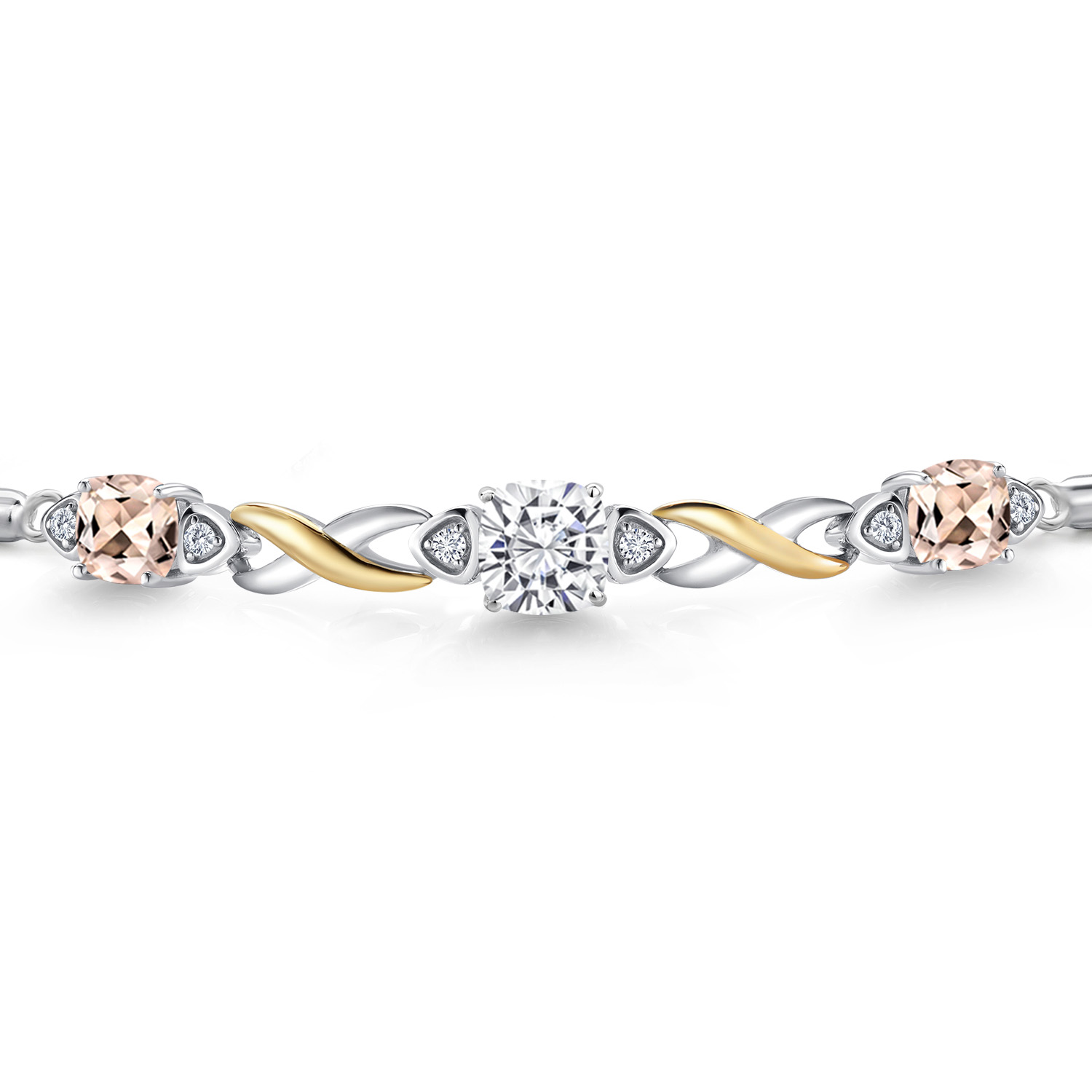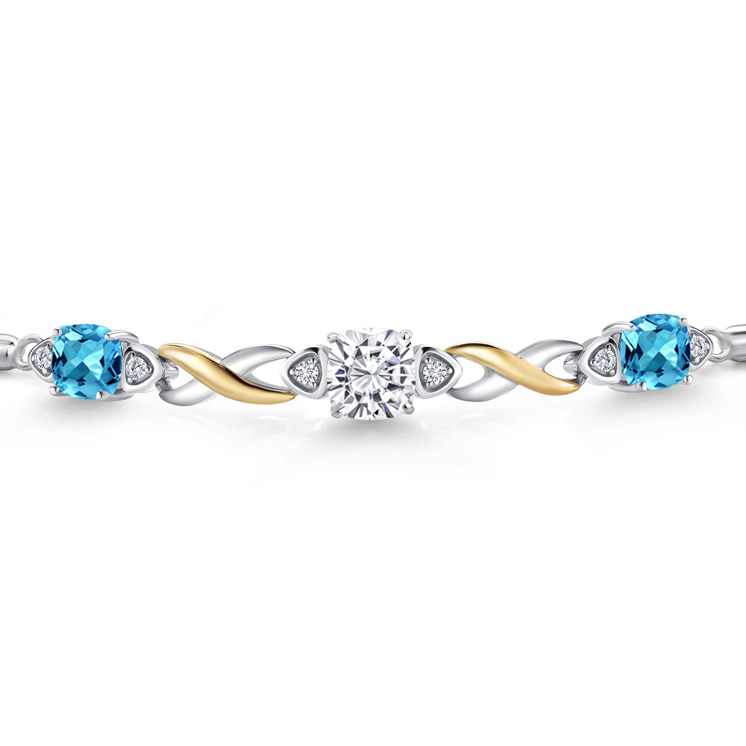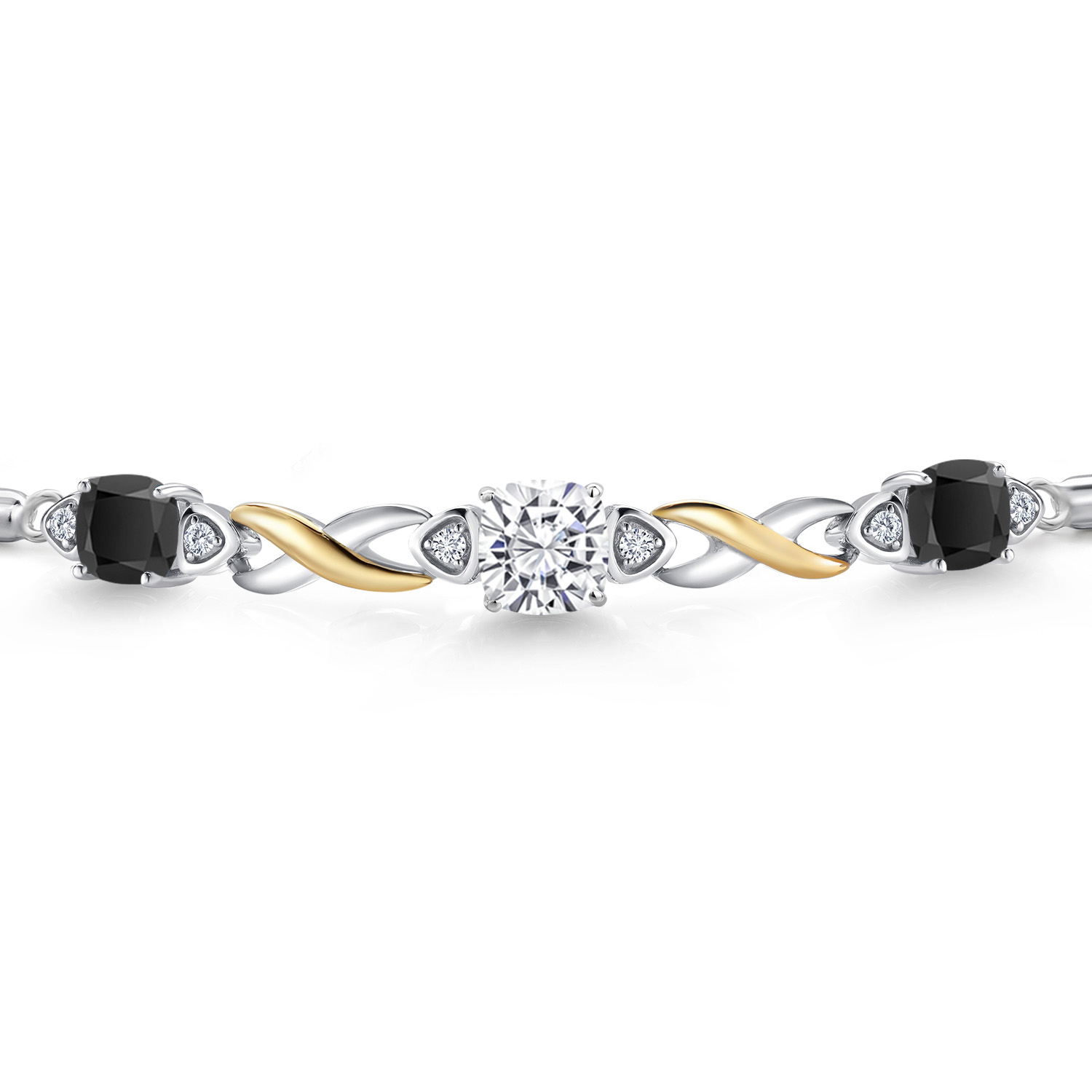 925 Silver and 10K Yellow Gold Moissanite and Gemstone Birthstone Infinity Bracelet for Women with Lab Grown Diamond Accents | Cushion 6MM and 5MM | Adjustable Bolo Bracelet | Easy-On Easy-Off