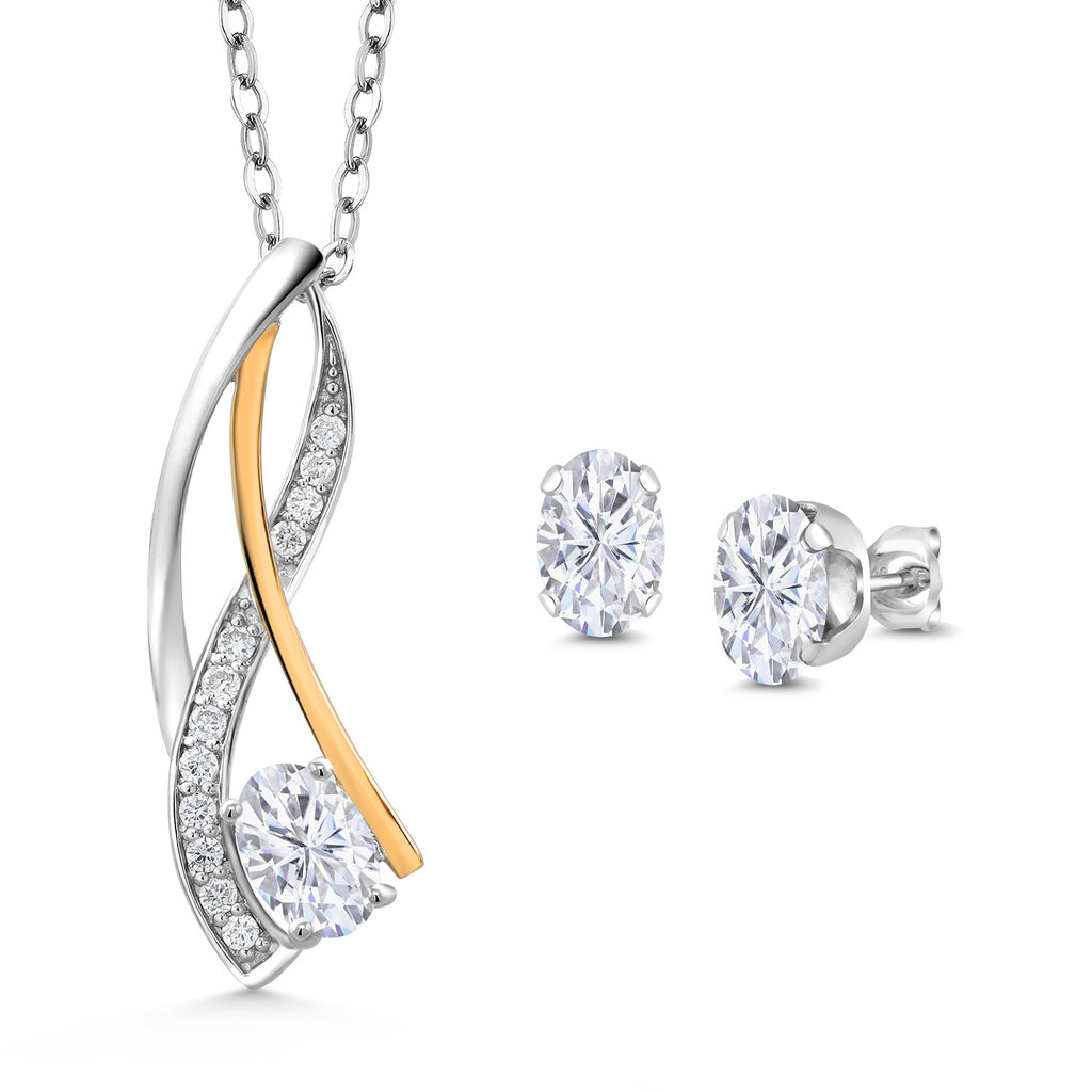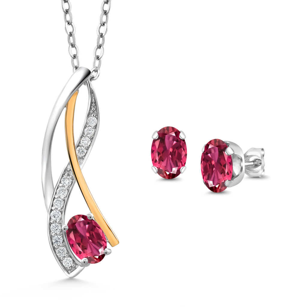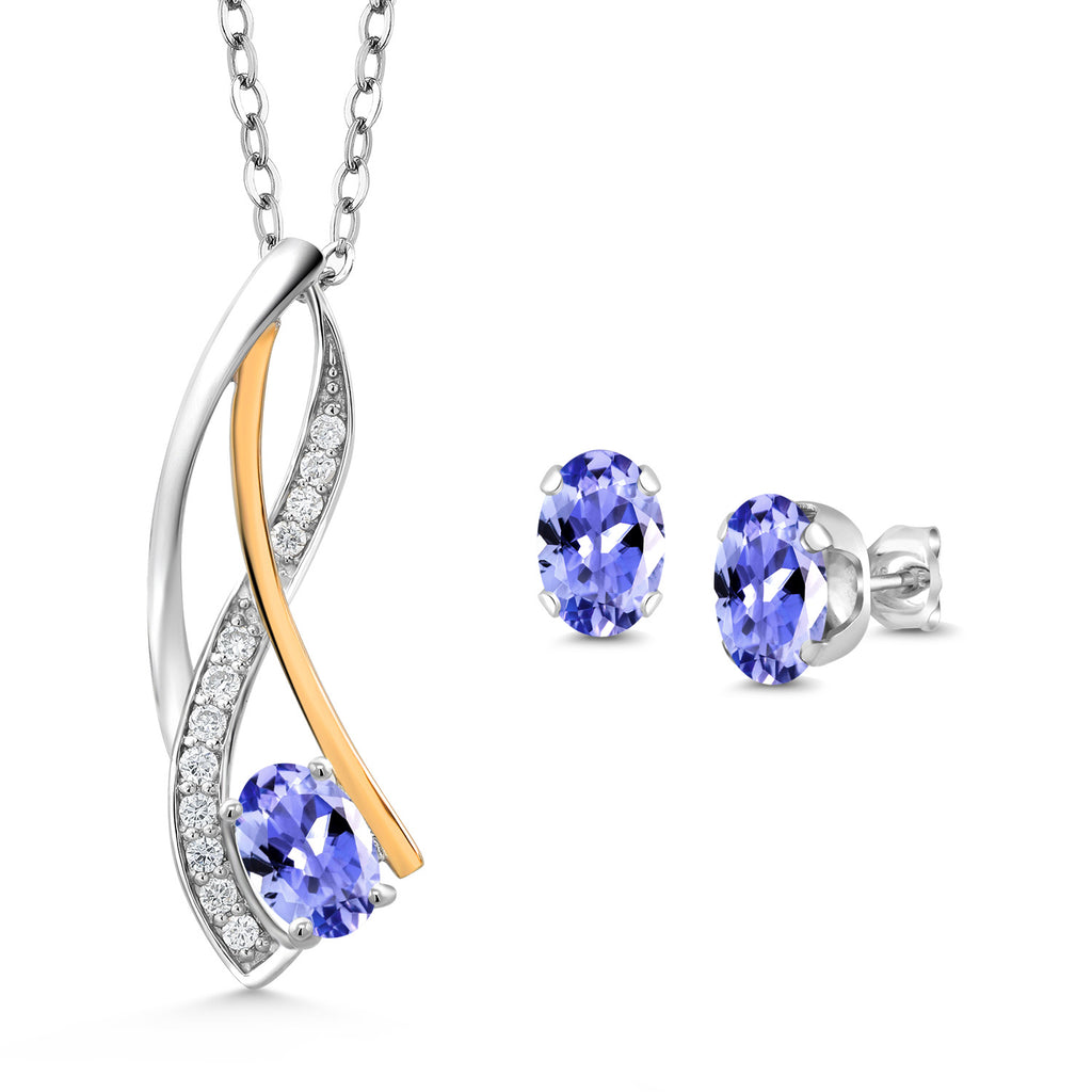 Oval Gemstone Birthstone and Lab Grown Diamond Pendant Necklace Earrings Set for Women | 925 Silver and 10K Yellow Gold | Oval 6X4MM | With 18 Inch Chain