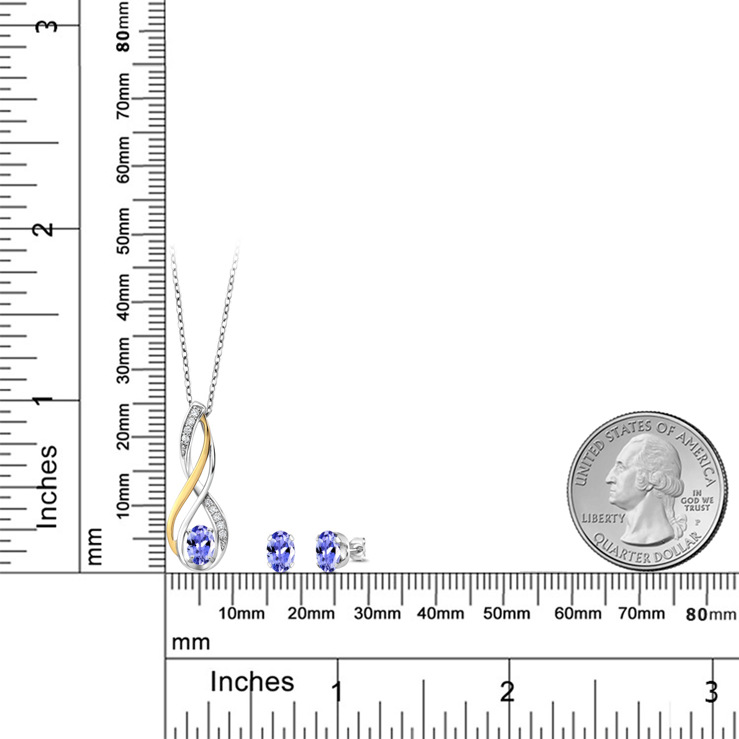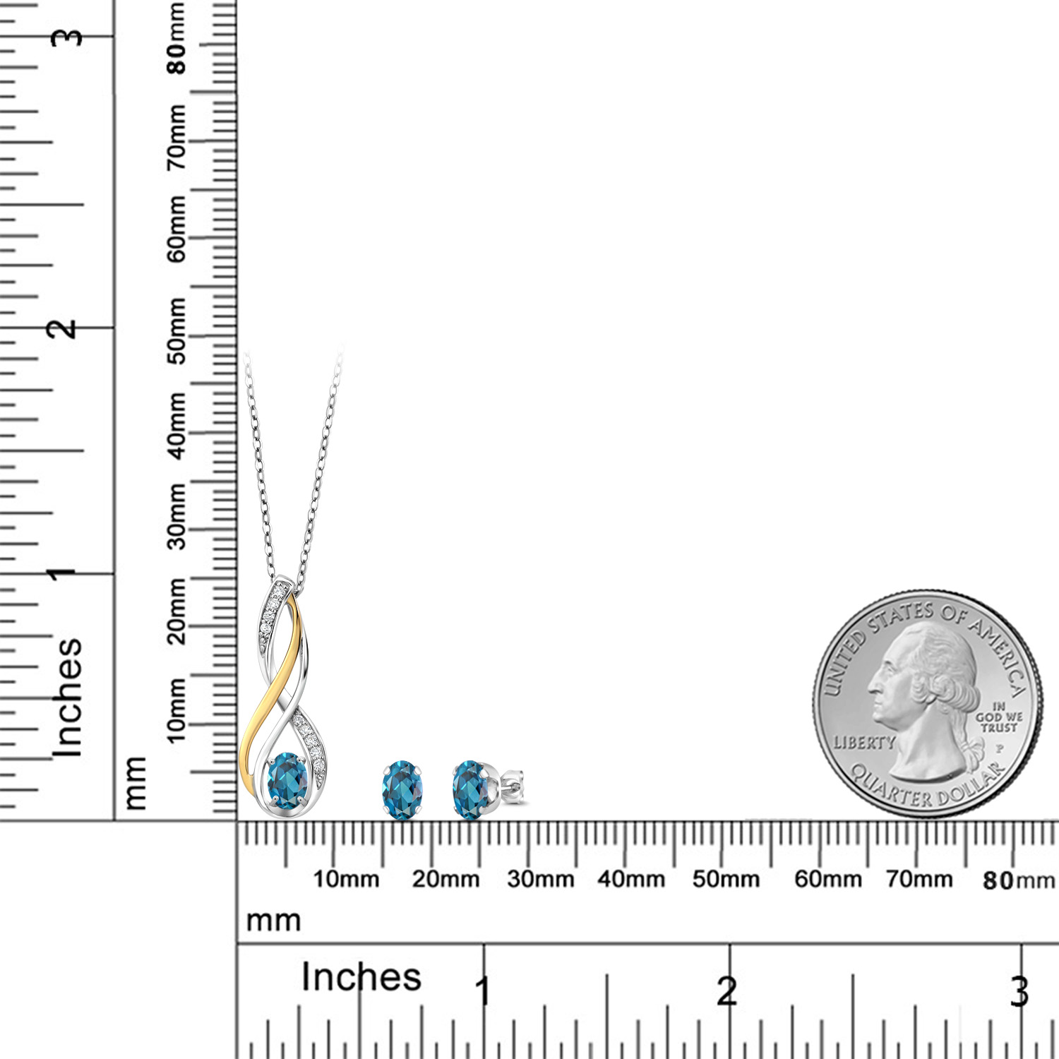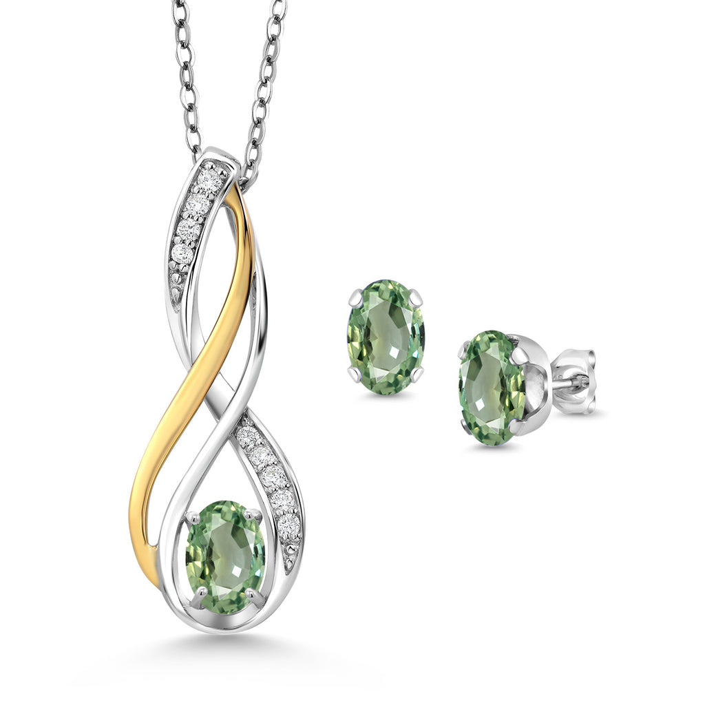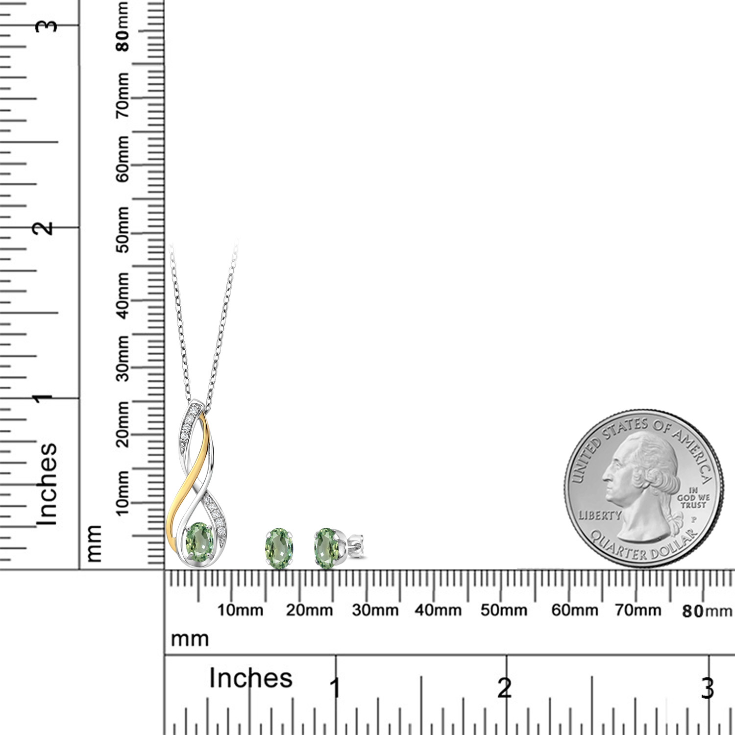 925 Silver and 10K Yellow Gold Oval 6X4MM Gemstone Birthstone and White Lab Grown Diamond Pendant and Earrings Jewelry Set For Women | With 18 Inch Chain