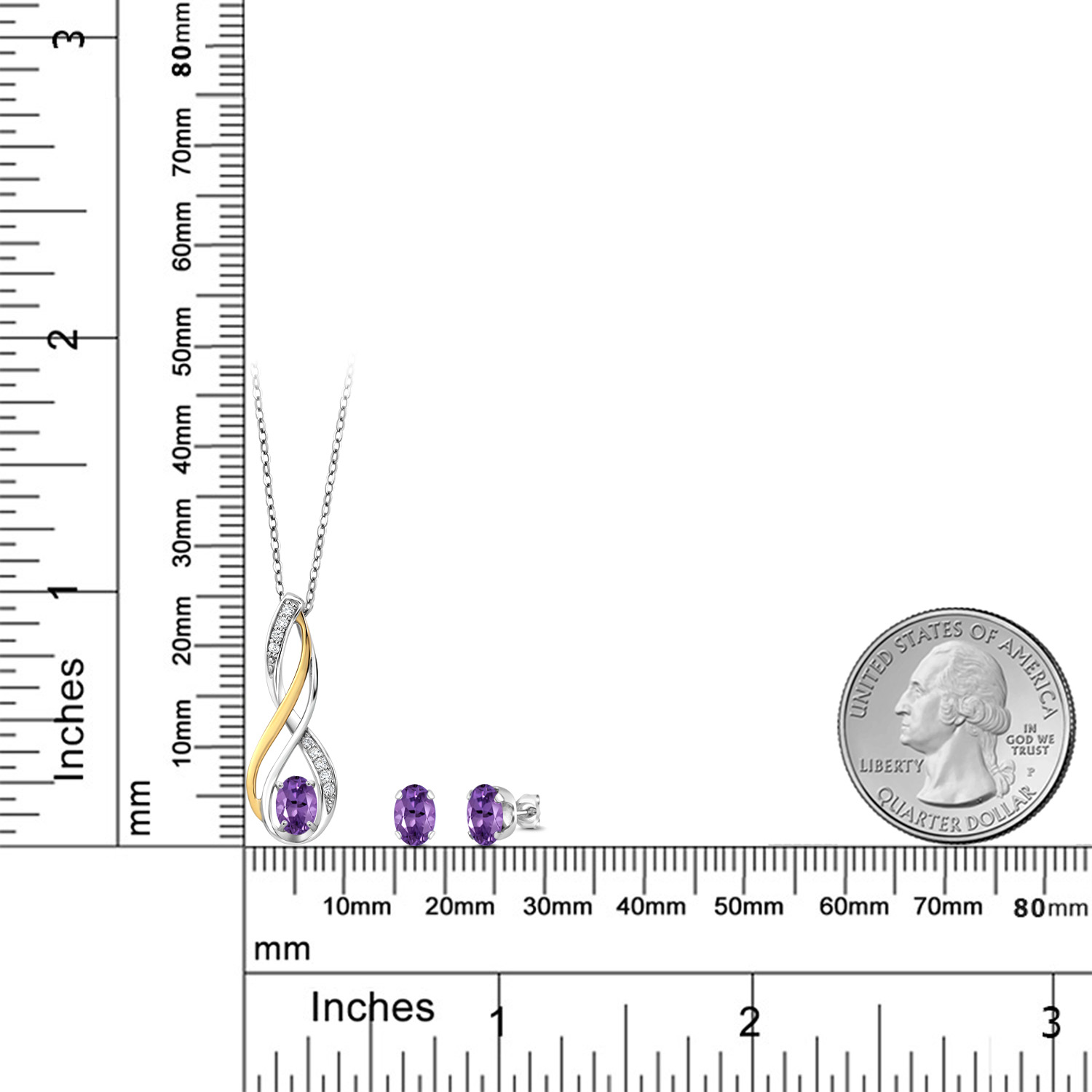 EXQUISITE TWO-TONE DESIGN: This stunning jewelry set features a harmonious combination of 925 Silver and 10K Yellow Gold, showcasing elegant 6x4MM oval gemstone birthstones and sparkling white lab-grown diamonds. The set includes a pendant necklace with an 18-inch chain and matching earrings, offering a sophisticated and luxurious look.