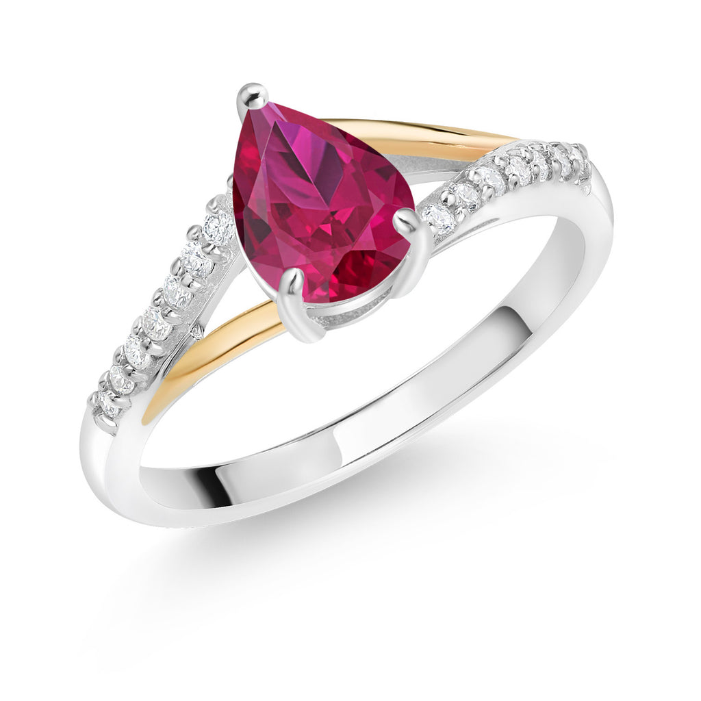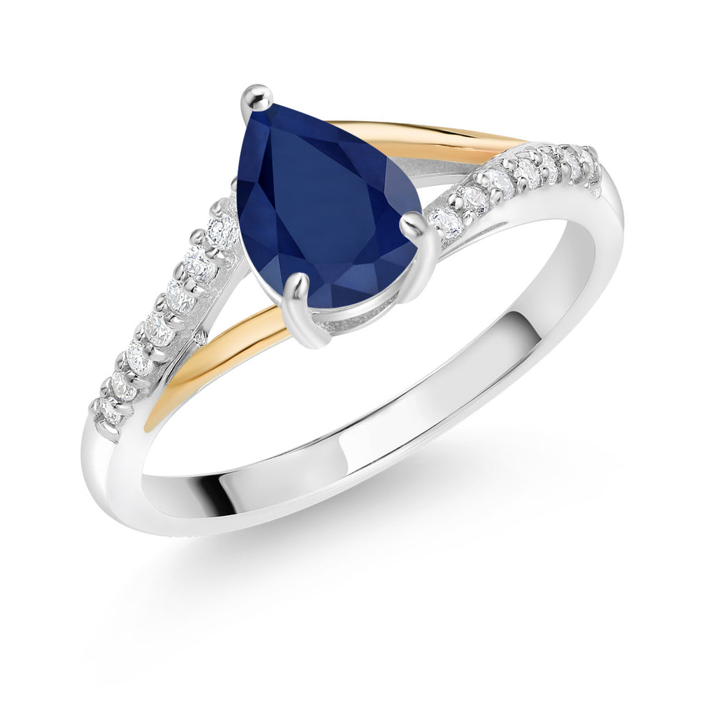 925 Silver and 10K Yellow Gold 8X6MM Pear Shape Gemstone Birthstone and White Lab Grown Diamond Engagement Ring For Women | Available In Size 5, 6, 7, 8, 9