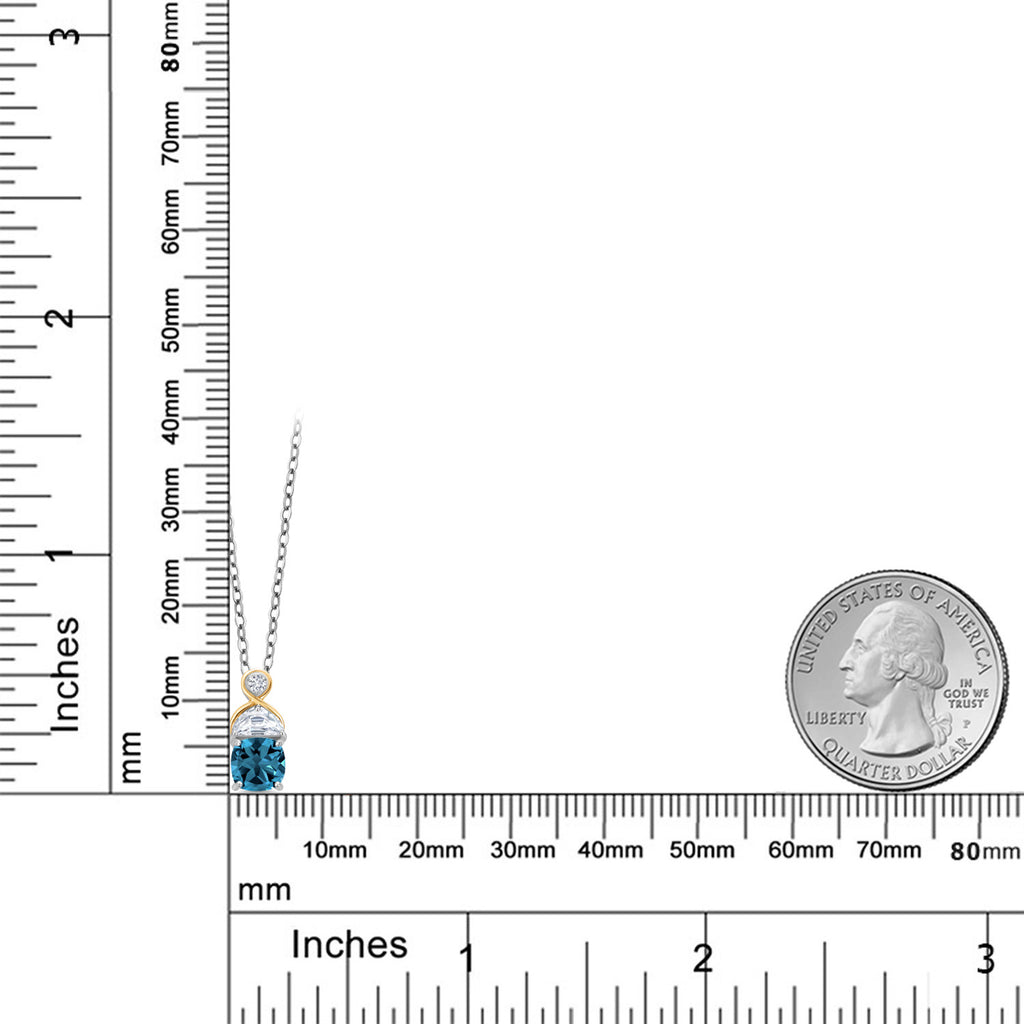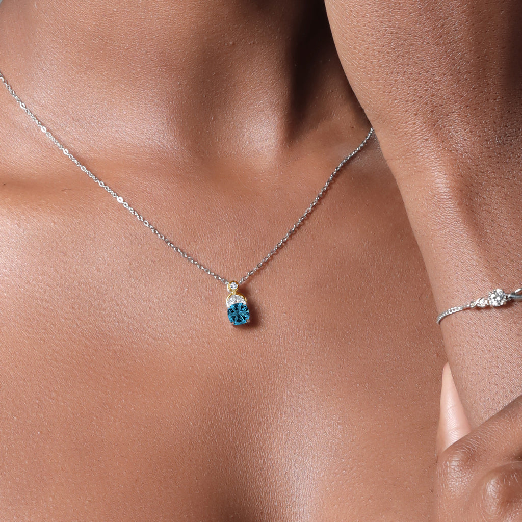 1.51 CARAT TOTAL WEIGHT WITH ELEGANT GEMSTONE TRIO: This pendant features a rich 6MM cushion-cut London blue topaz at its center, accented by sparkling half-moon moissanite stones and lab grown diamond. The deep ocean-blue hue of the topaz contrasts beautifully with the bright white brilliance of the accent stones.