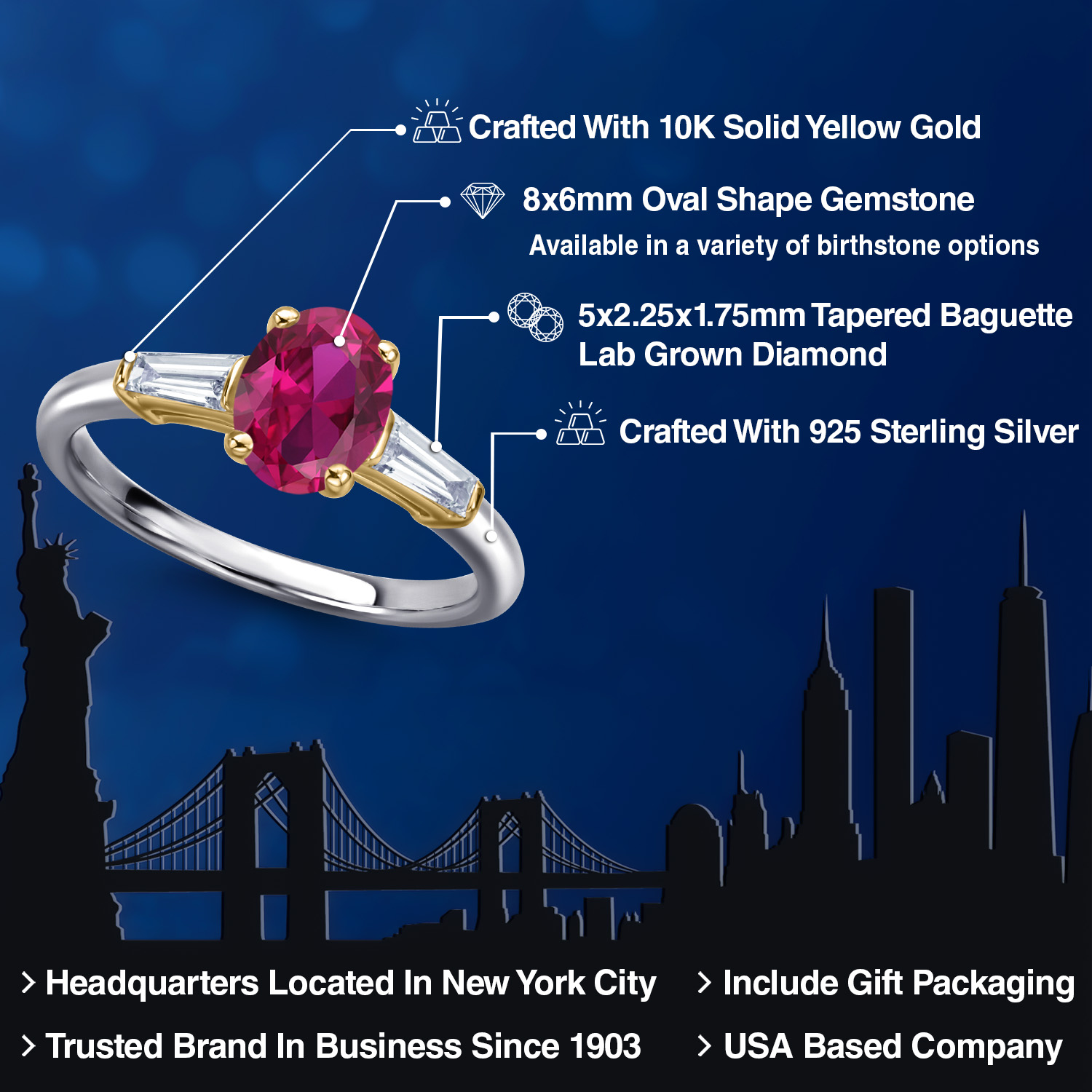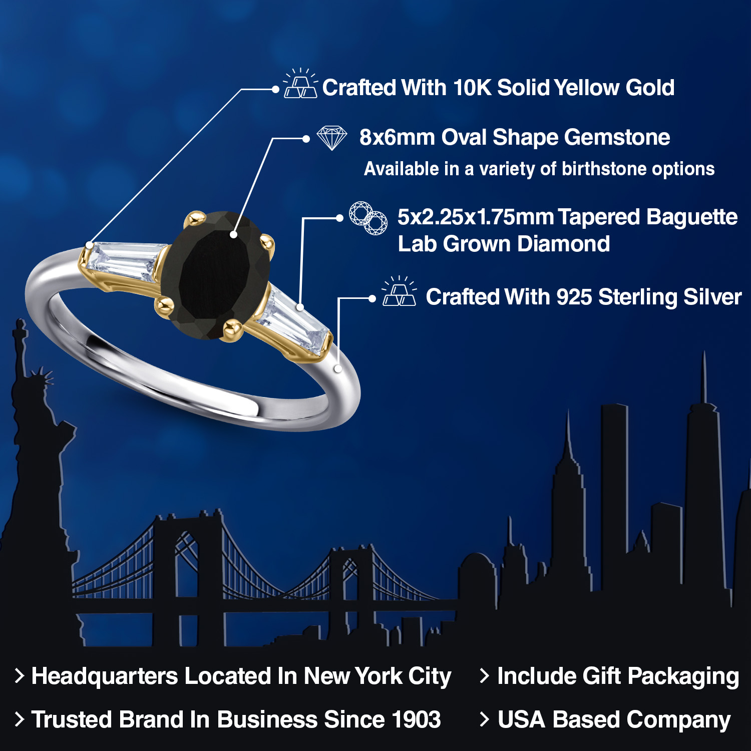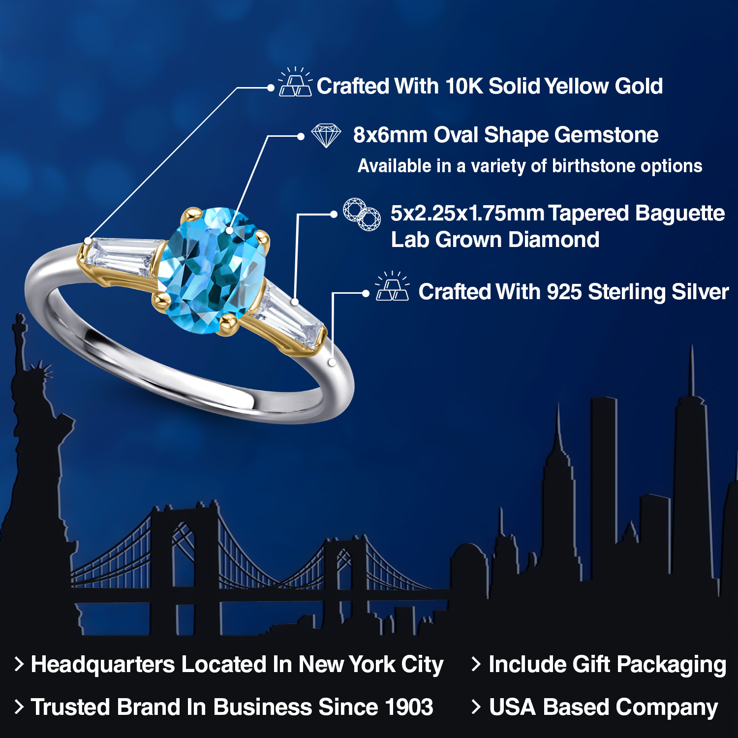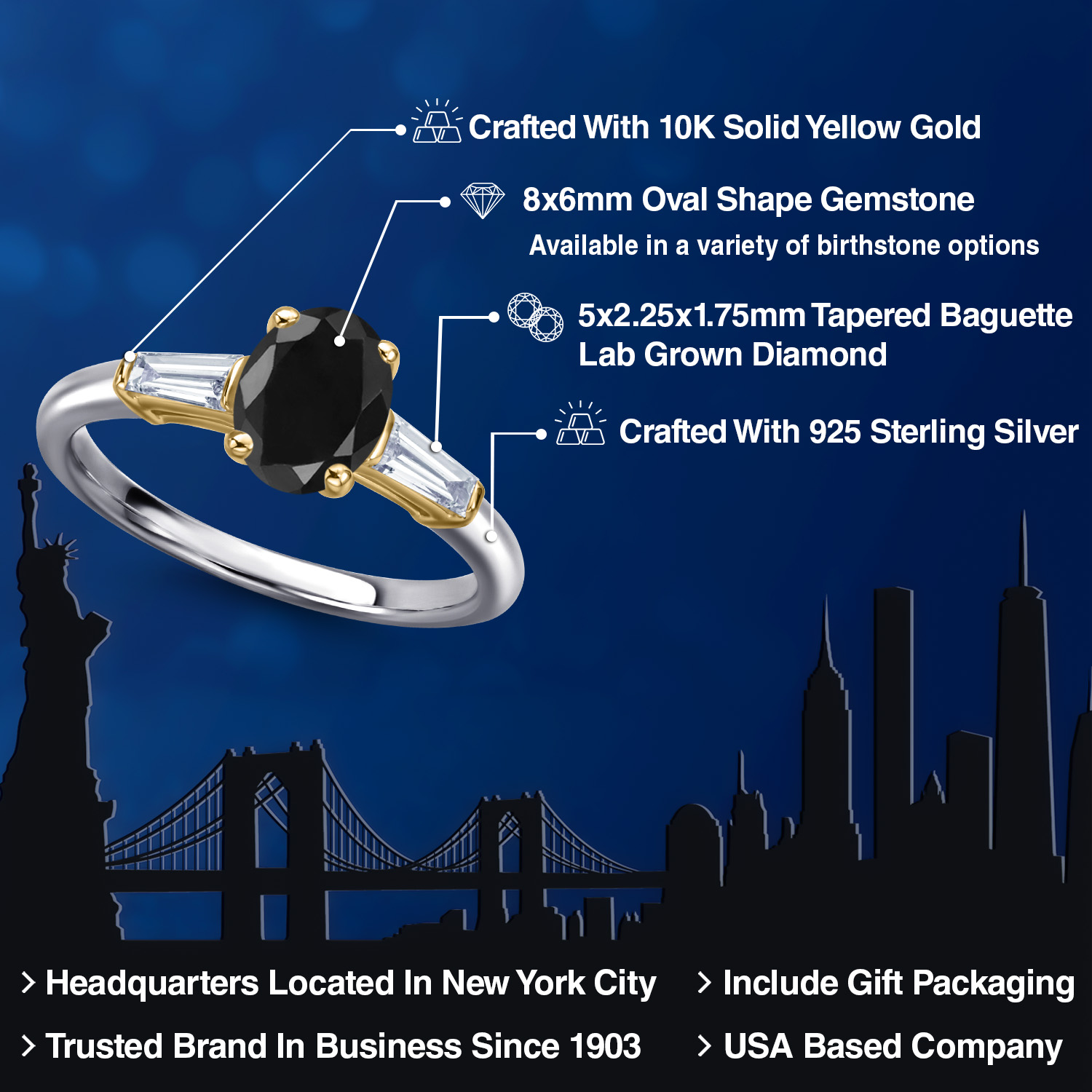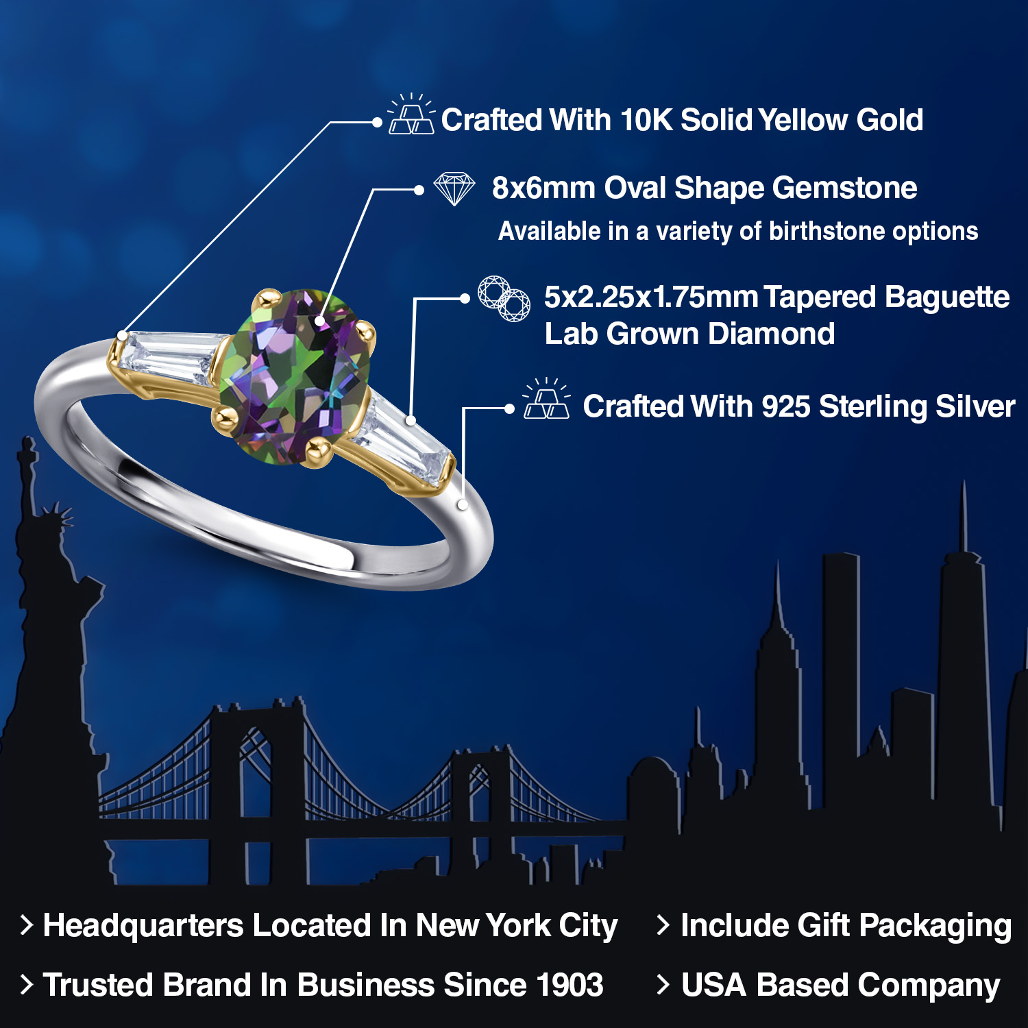 925 Silver and 10K Yellow Gold Gemstone Birthstone and Tapered Baguette Lab Grown Diamond Engagement Ring For Women | Oval 8X6MM | Available in Size 5,6,7,8,9