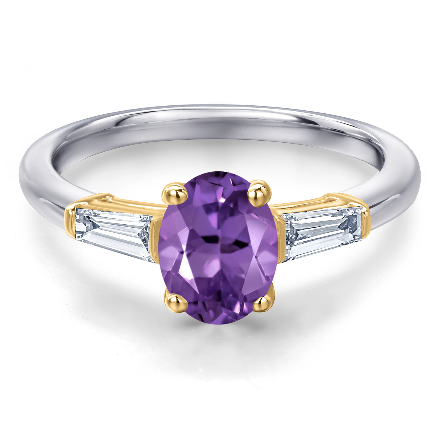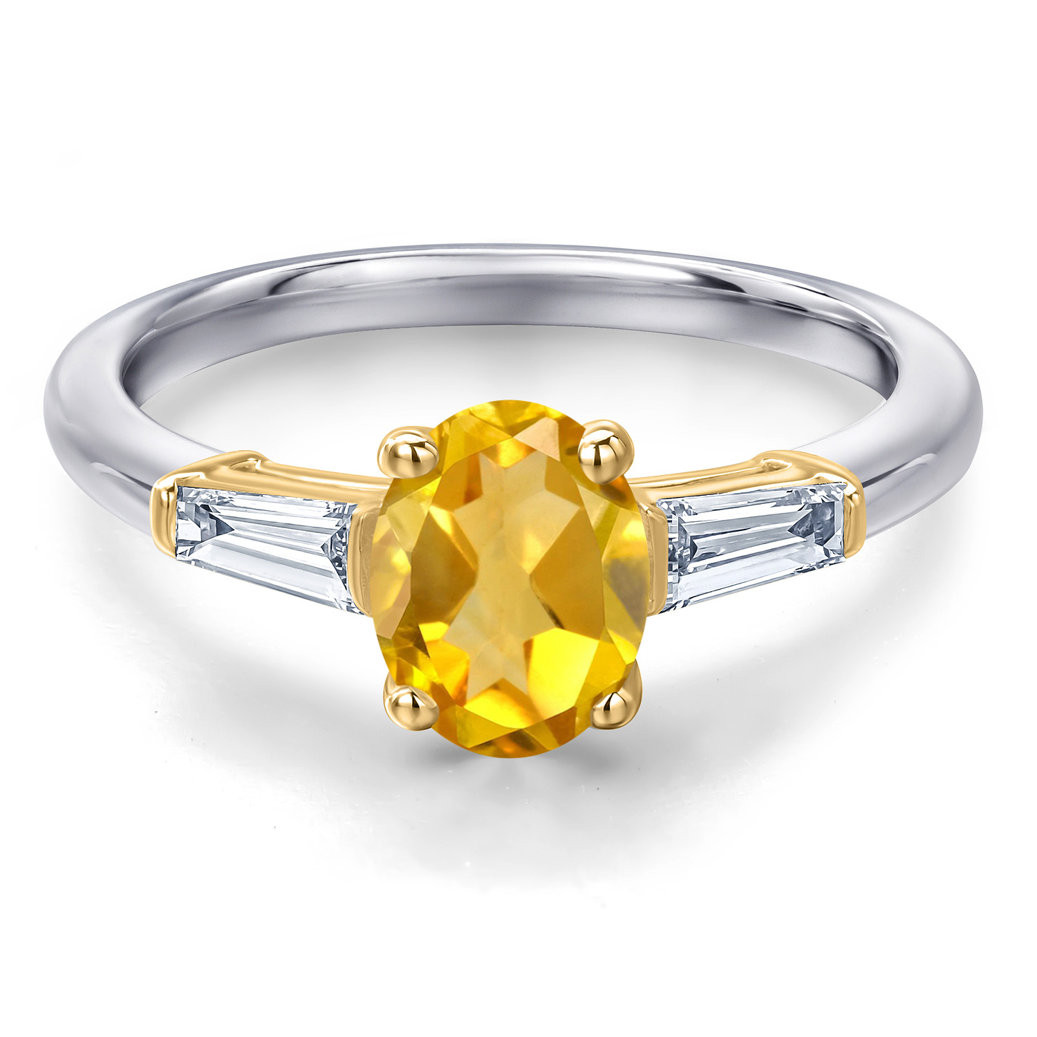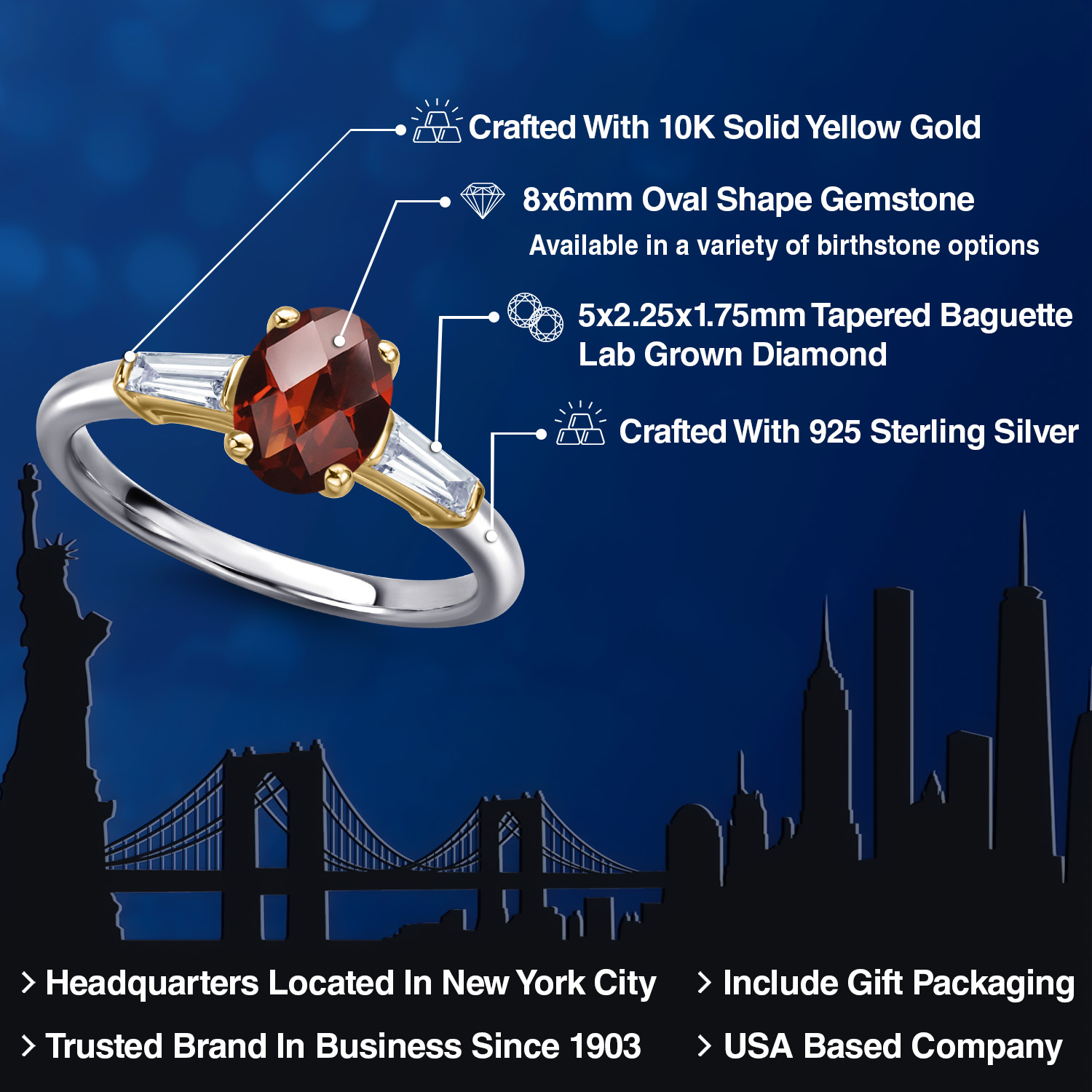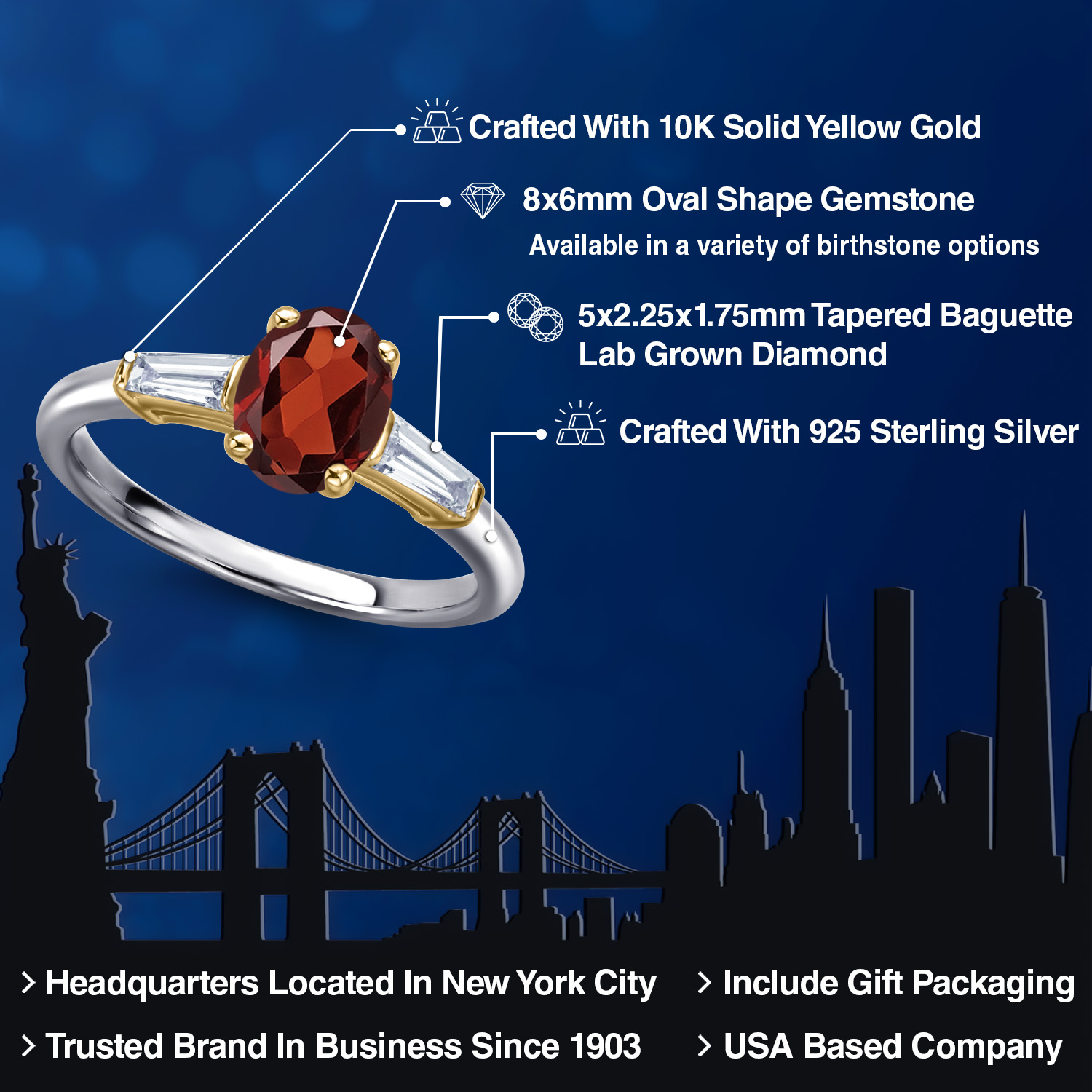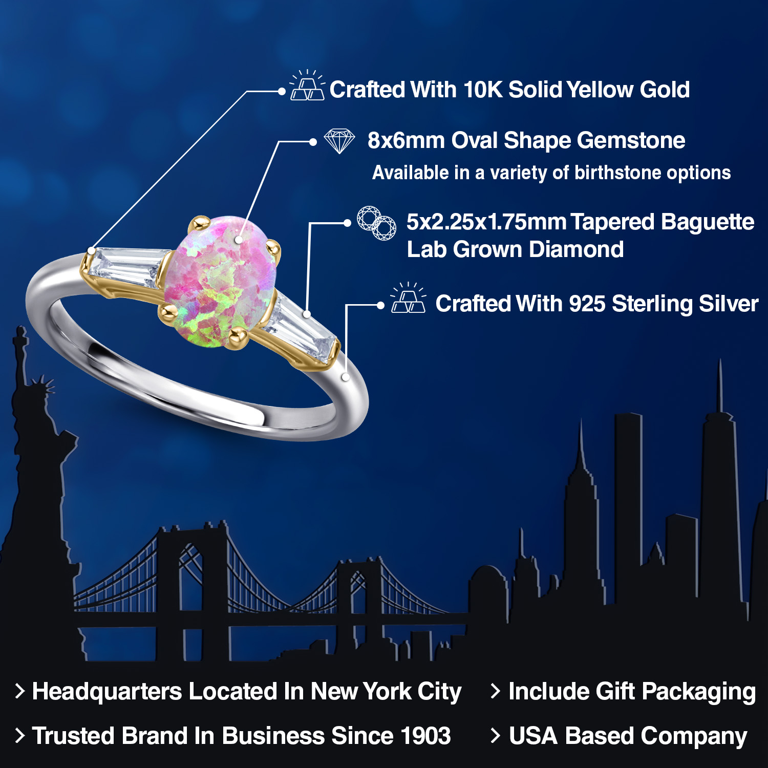 925 Silver and 10K Yellow Gold Gemstone Birthstone and Tapered Baguette Lab Grown Diamond Engagement Ring For Women | Oval 8X6MM | Available in Size 5,6,7,8,9