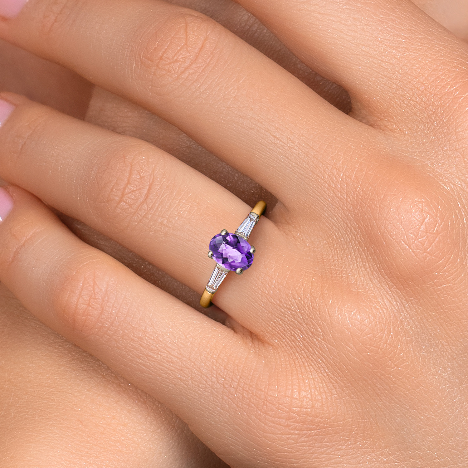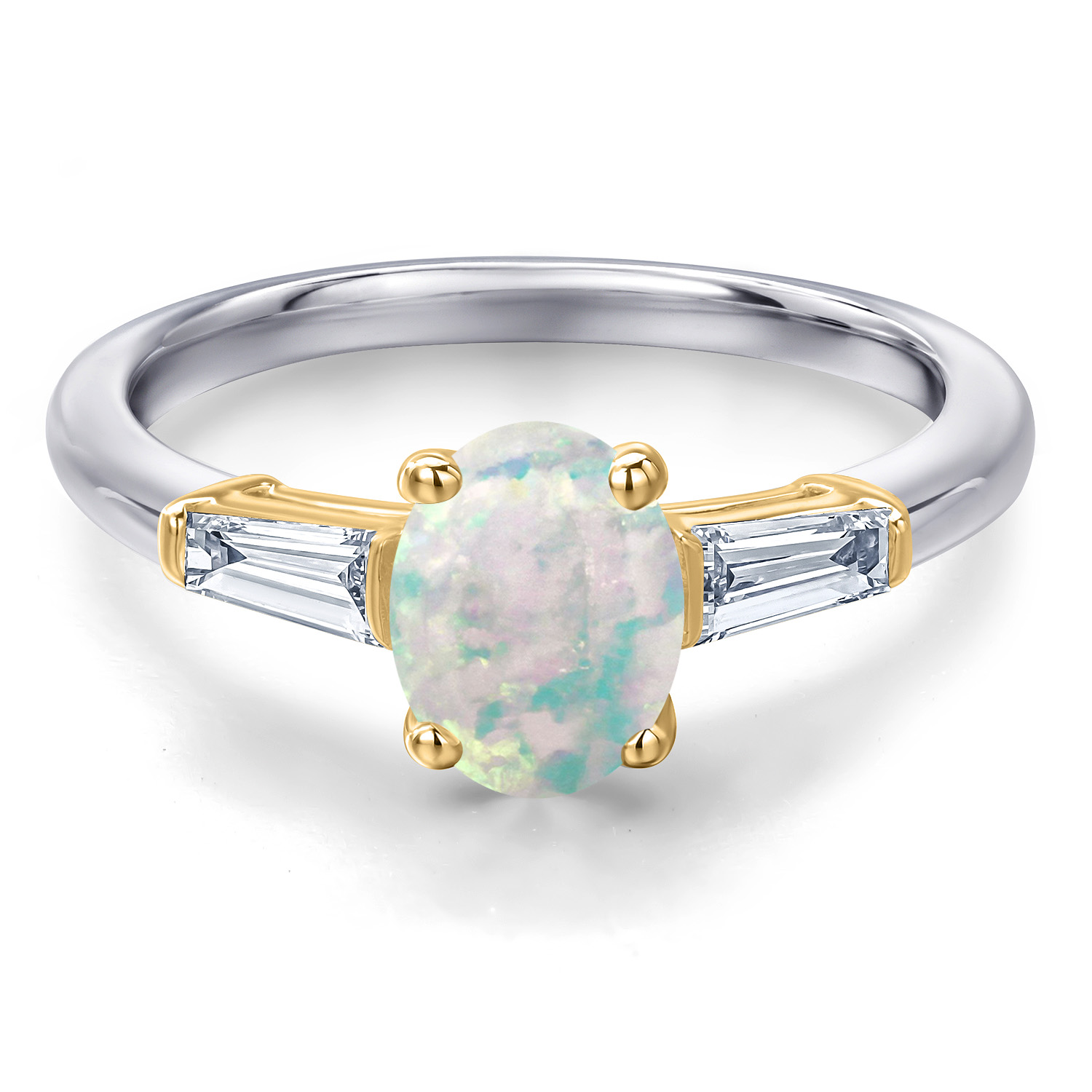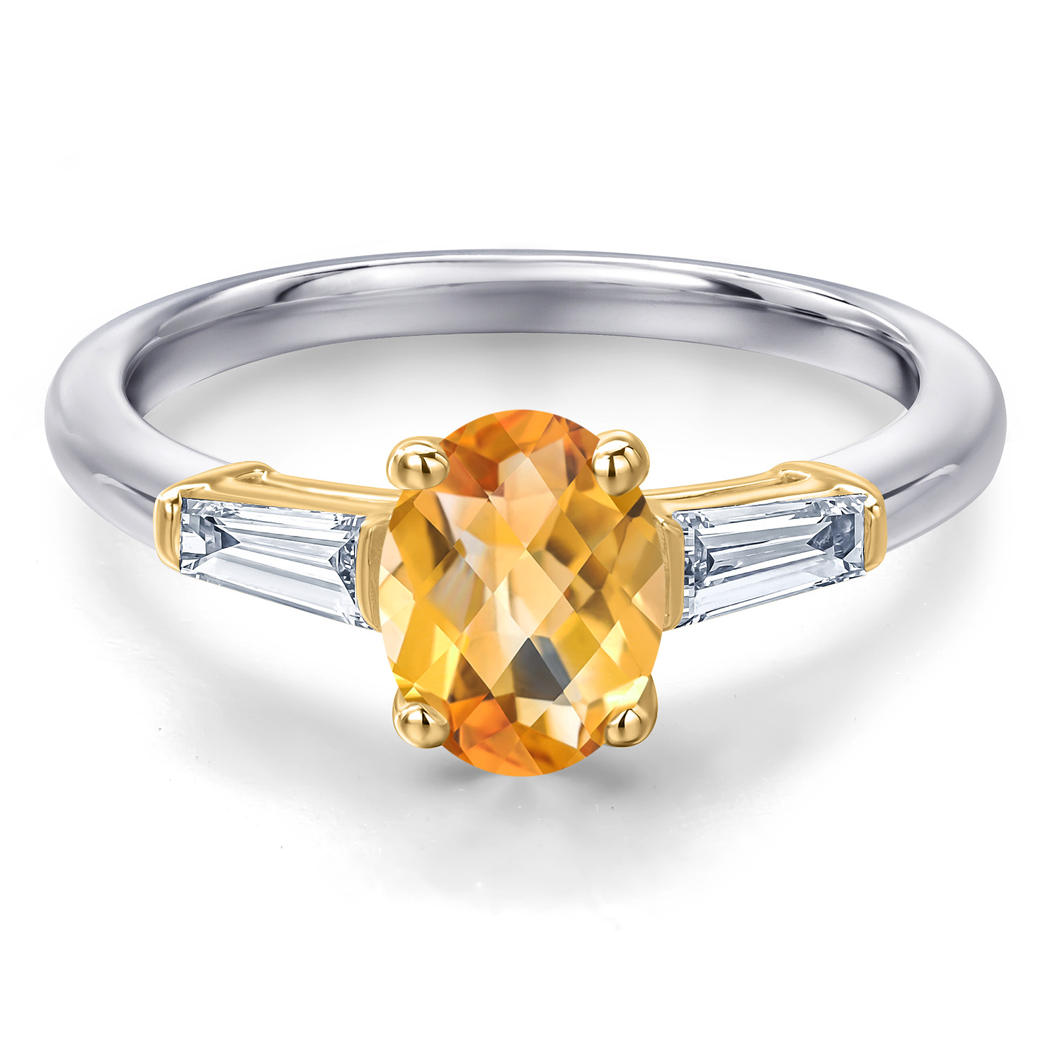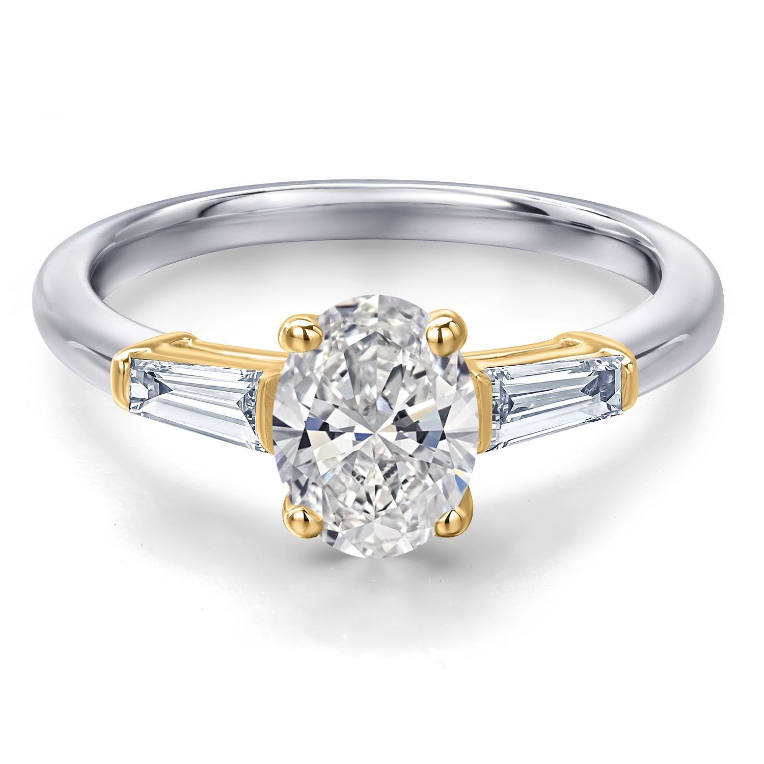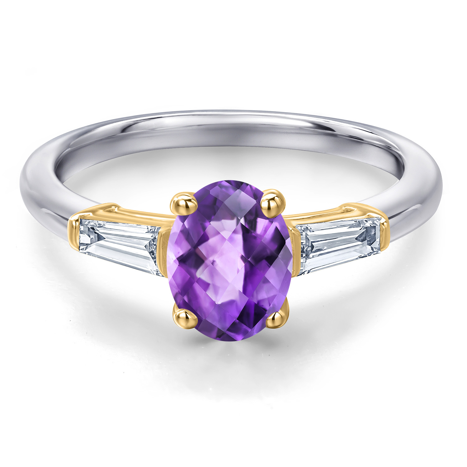 925 Silver and 10K Yellow Gold Gemstone Birthstone and Tapered Baguette Lab Grown Diamond Engagement Ring For Women | Oval 8X6MM | Available in Size 5,6,7,8,9
