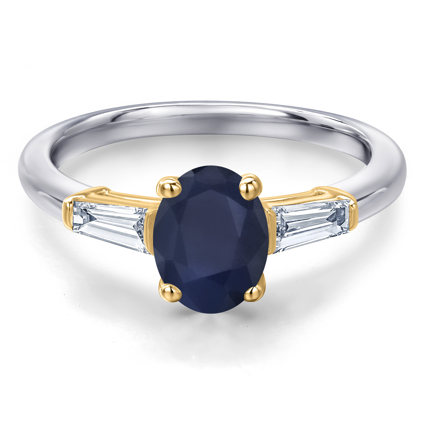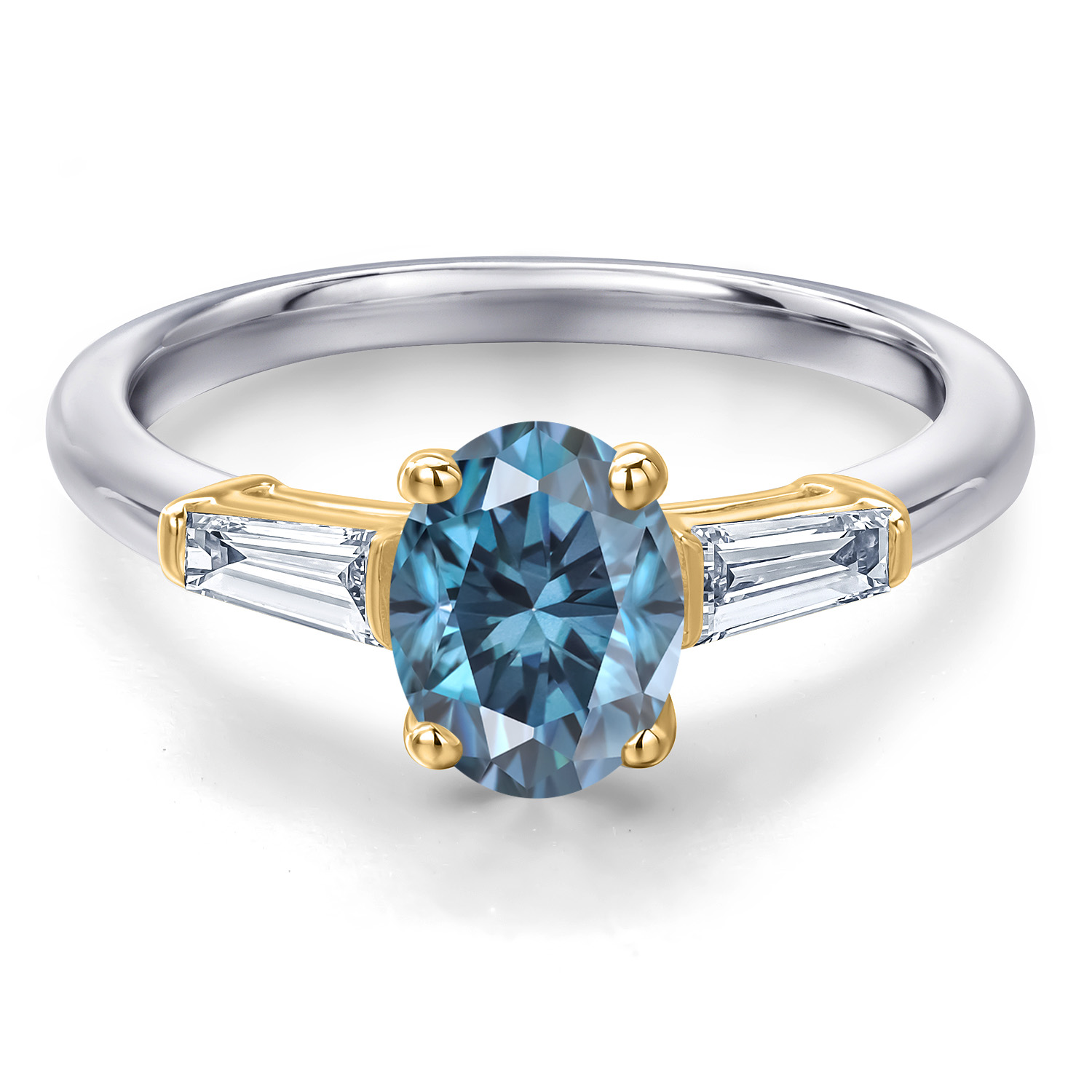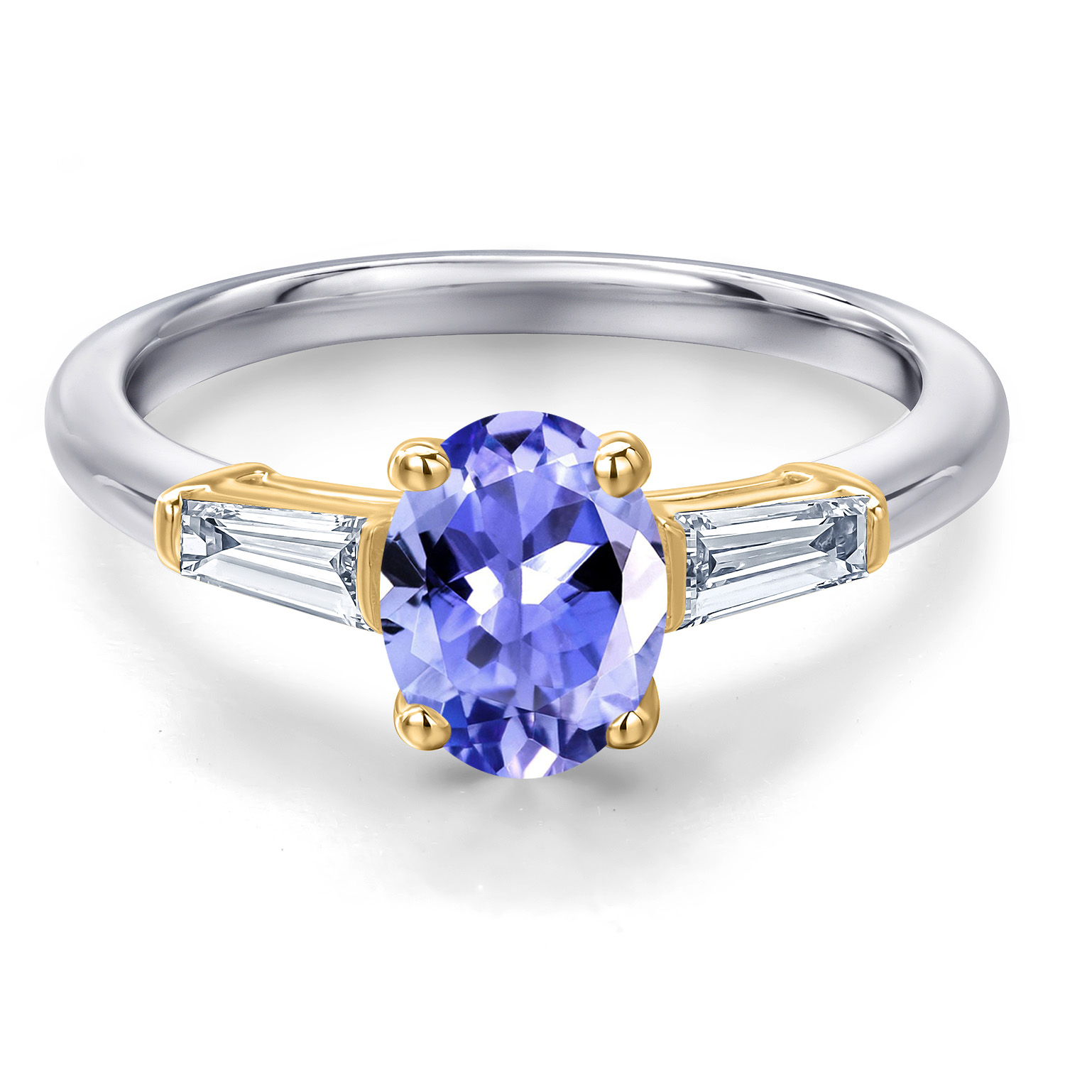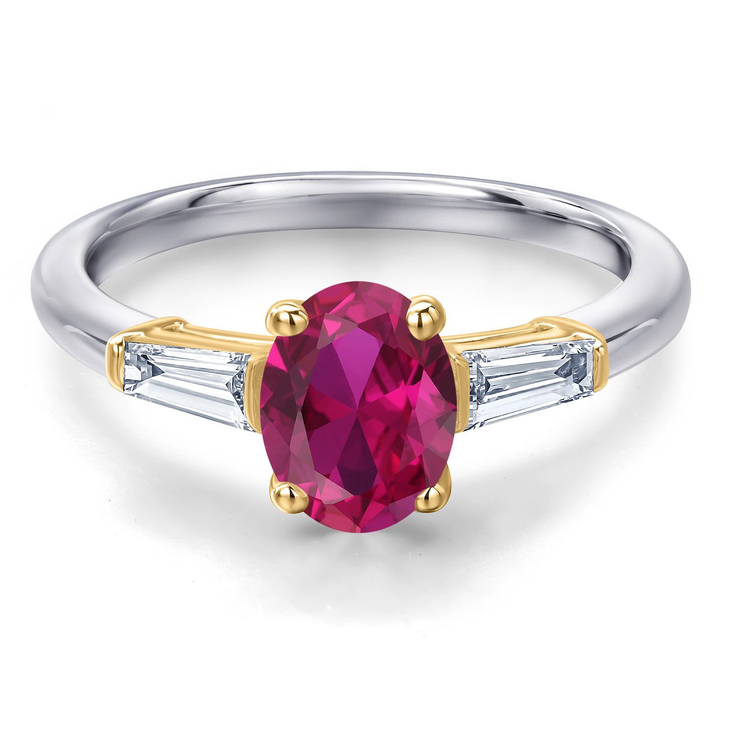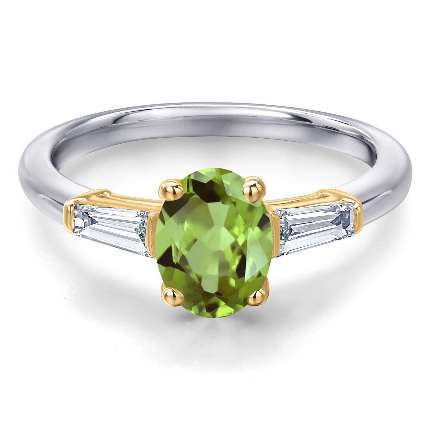 925 Silver and 10K Yellow Gold Gemstone Birthstone and Tapered Baguette Lab Grown Diamond Engagement Ring For Women | Oval 8X6MM | Available in Size 5,6,7,8,9