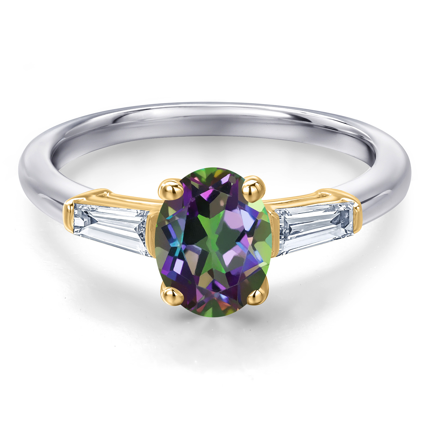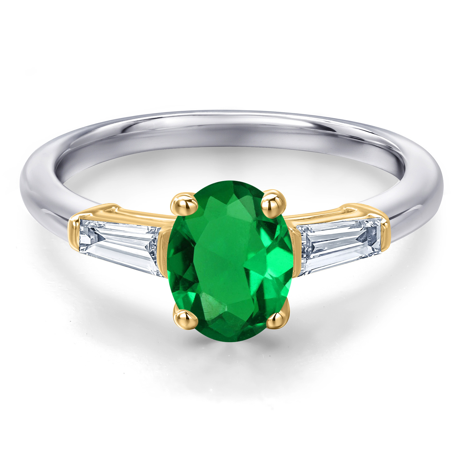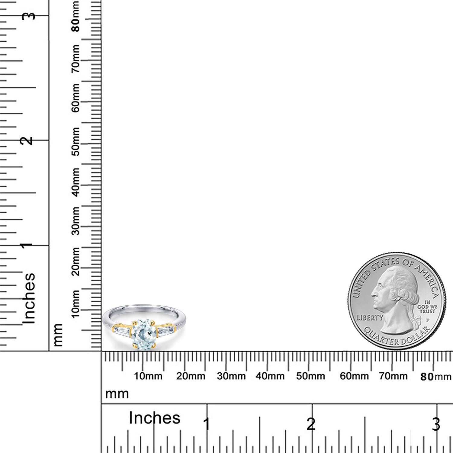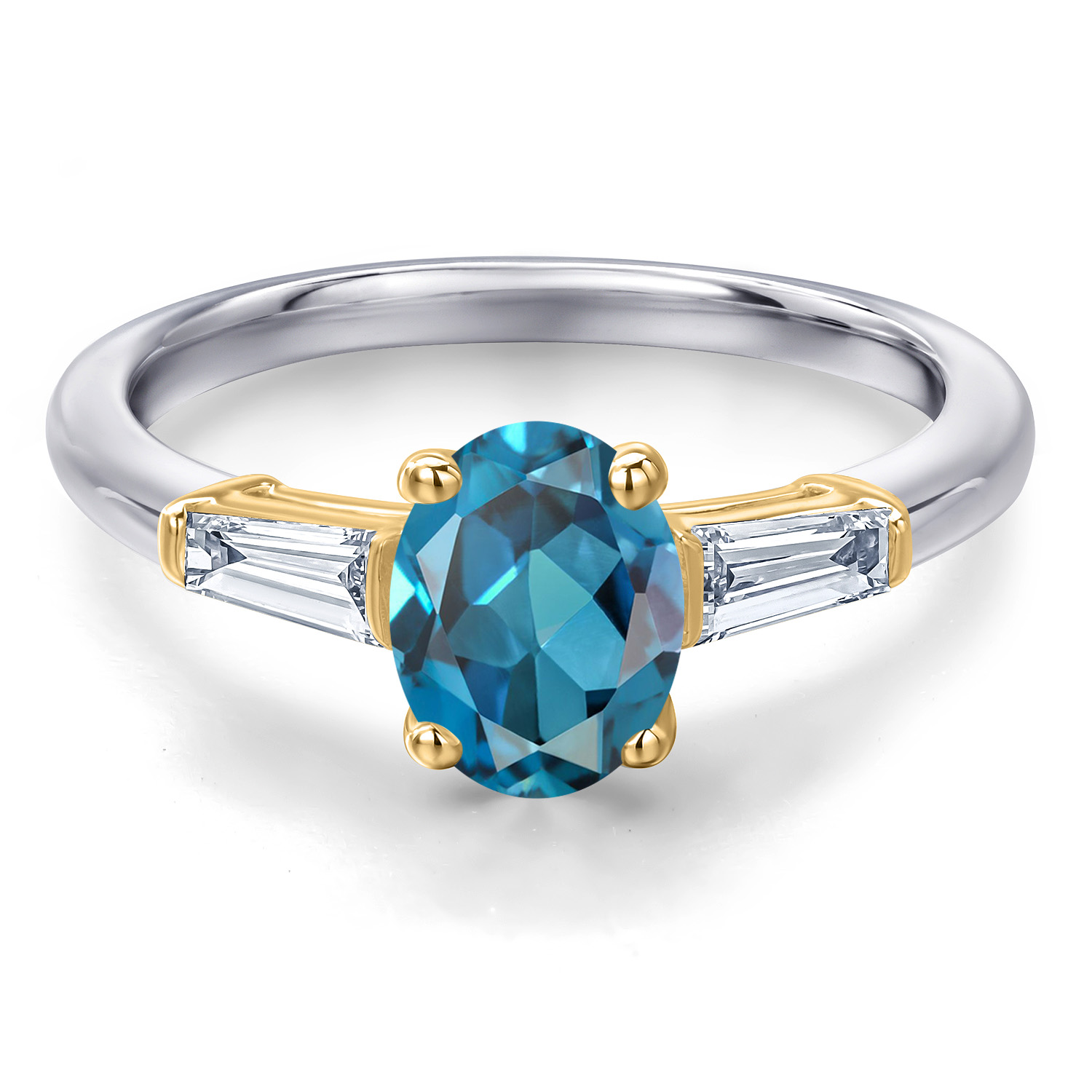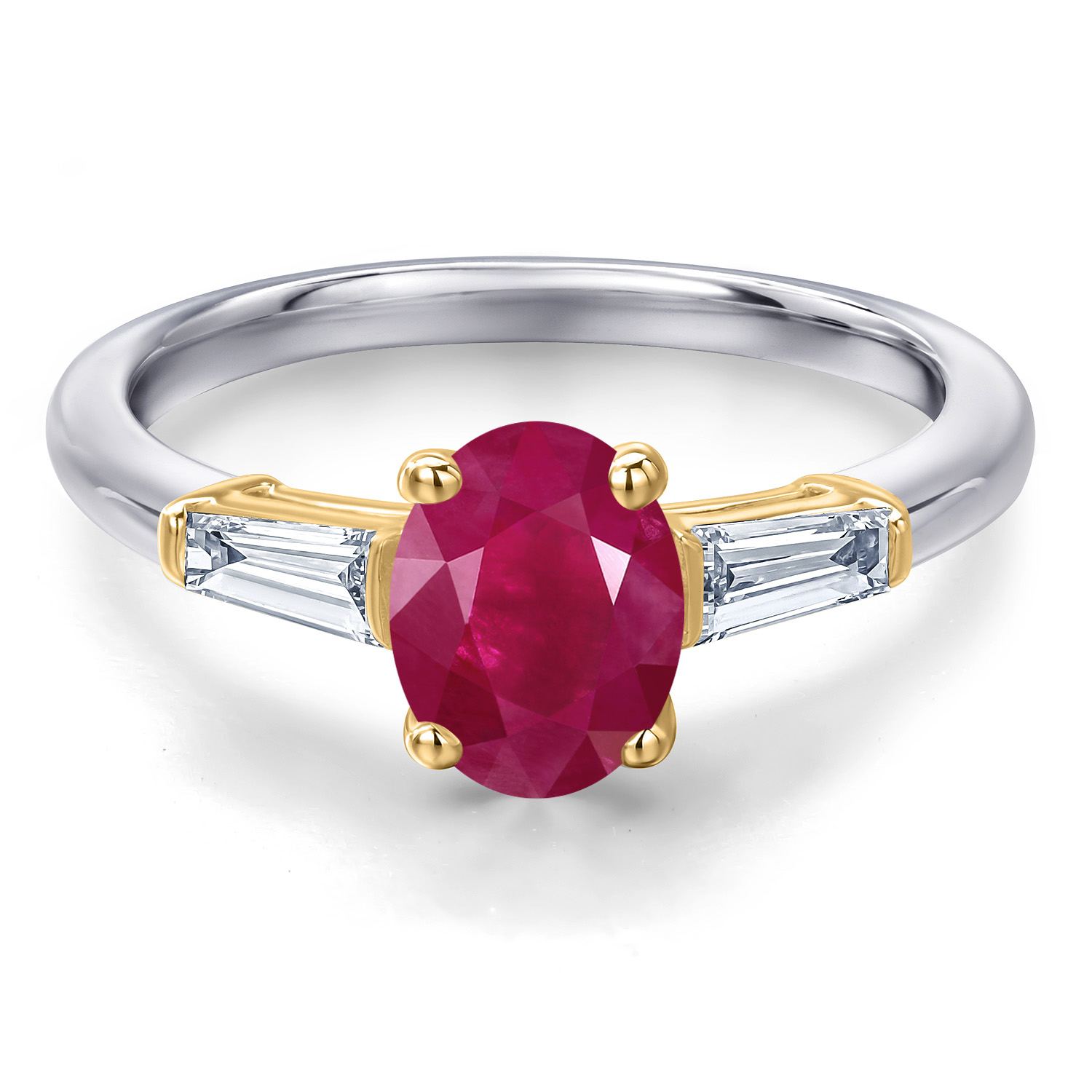 925 Silver and 10K Yellow Gold Gemstone Birthstone and Tapered Baguette Lab Grown Diamond Engagement Ring For Women | Oval 8X6MM | Available in Size 5,6,7,8,9