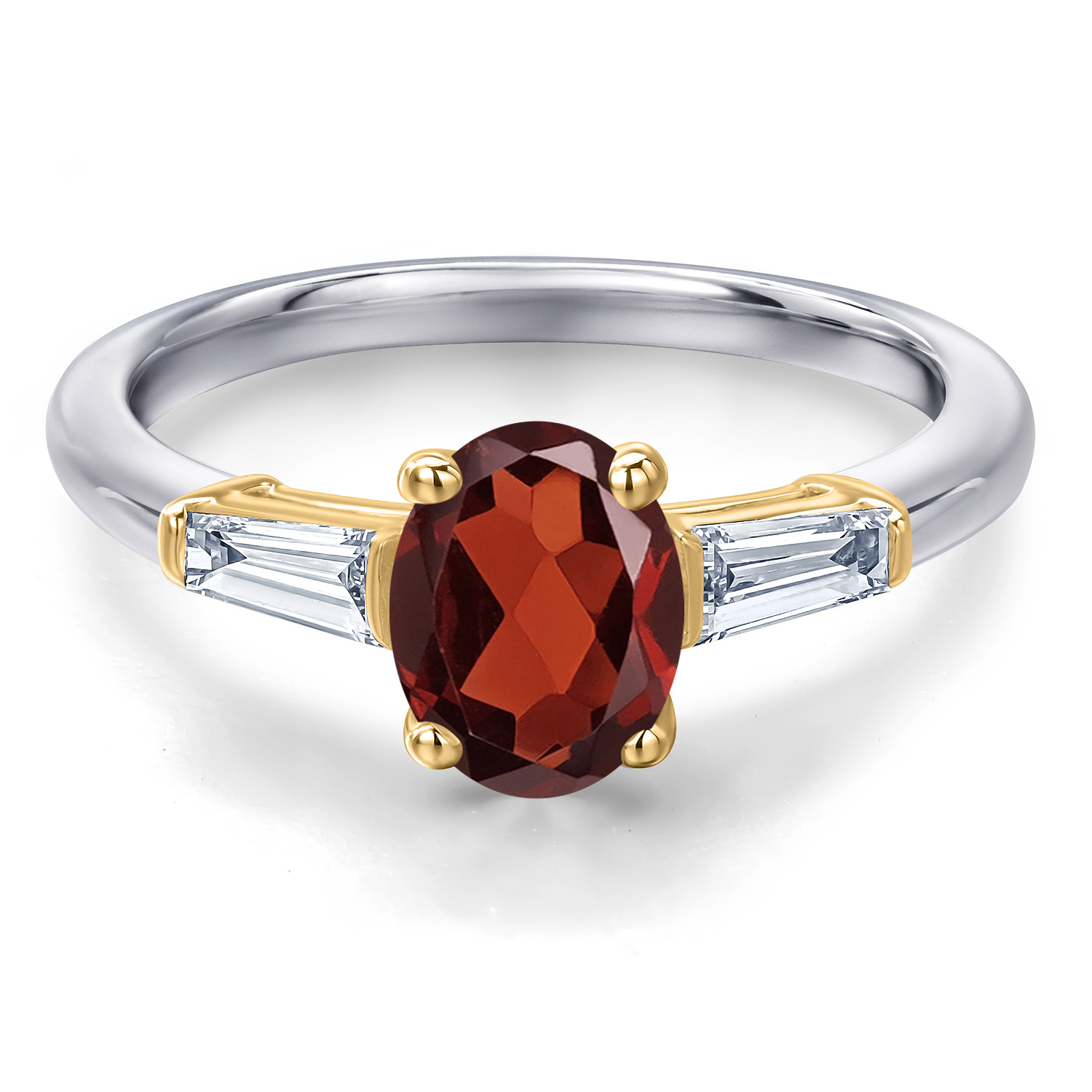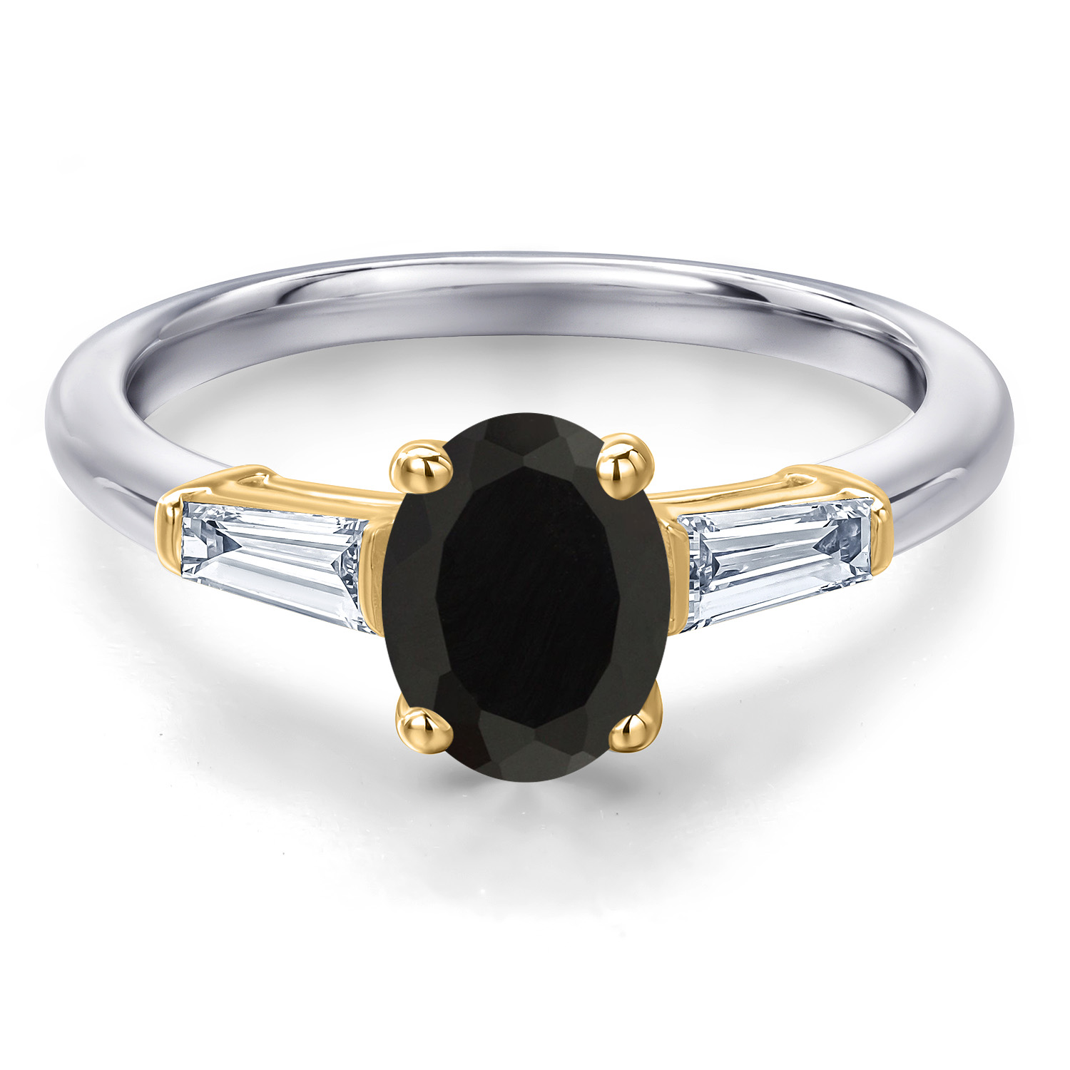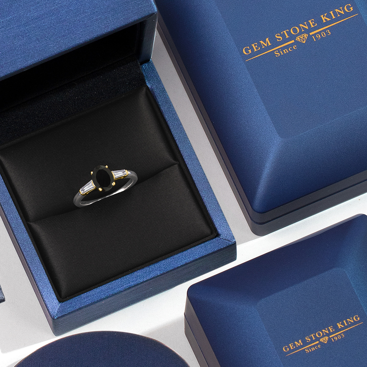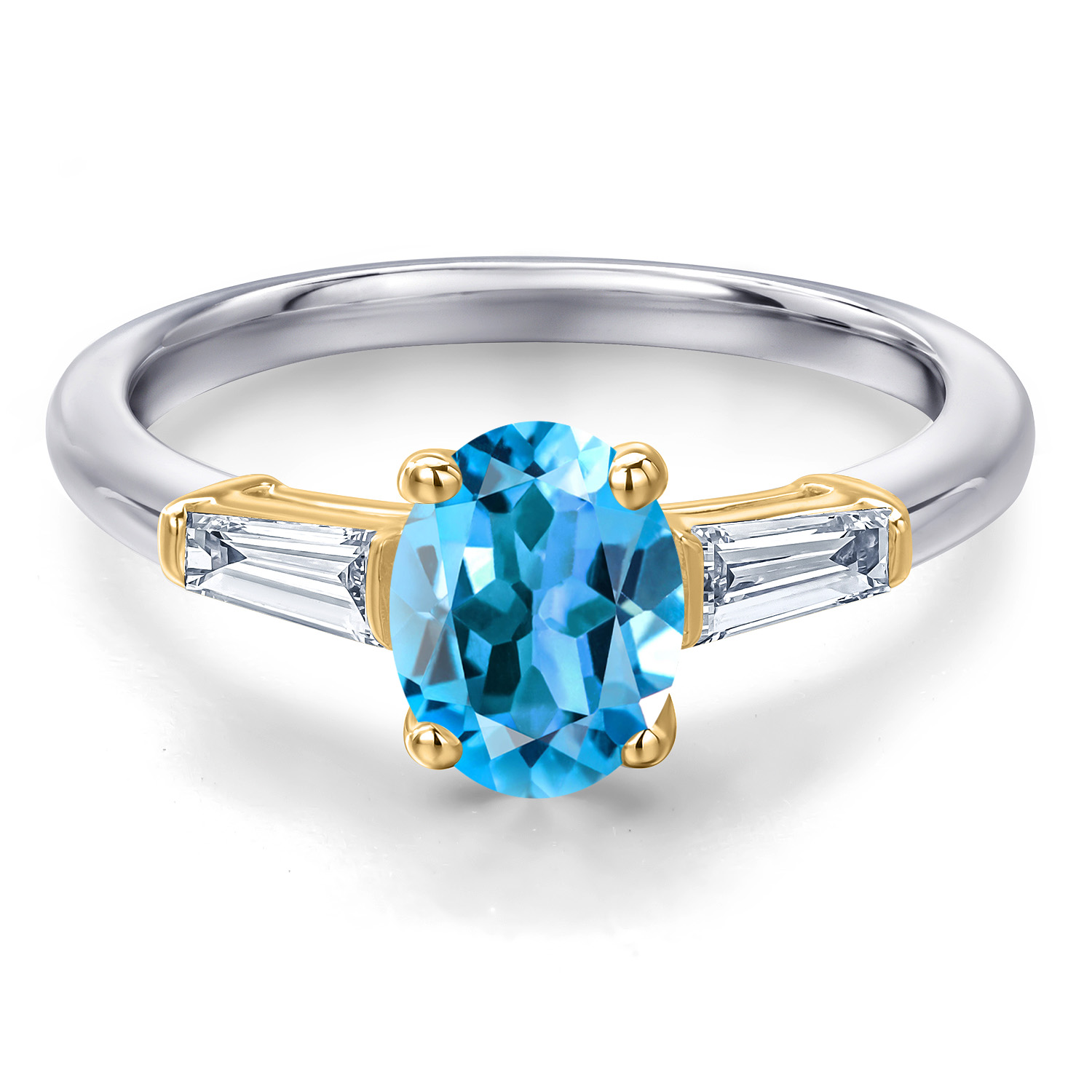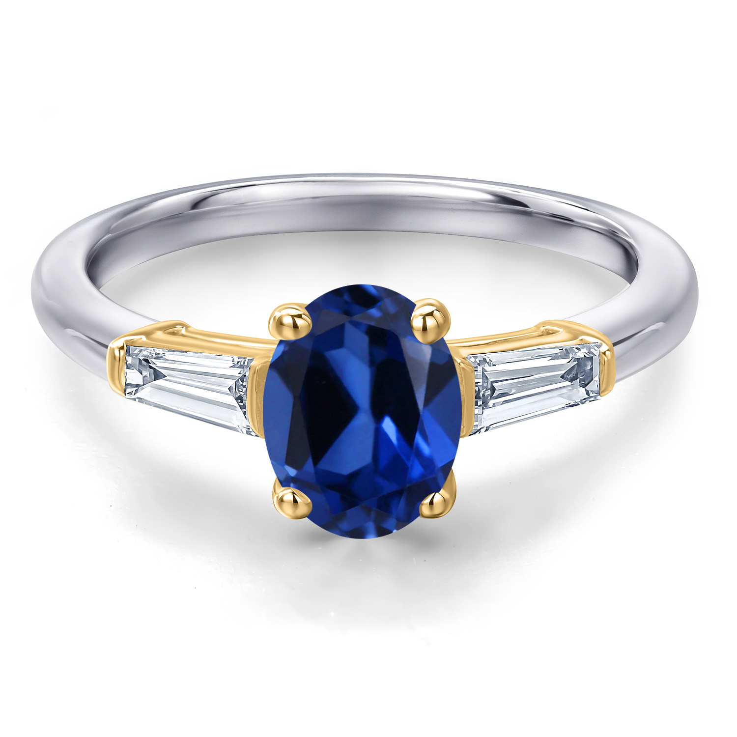 925 Silver and 10K Yellow Gold Gemstone Birthstone and Tapered Baguette Lab Grown Diamond Engagement Ring For Women | Oval 8X6MM | Available in Size 5,6,7,8,9