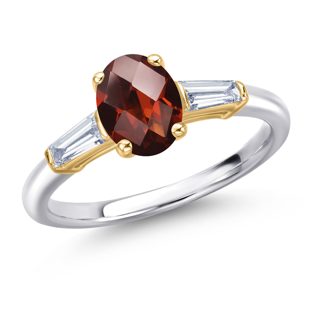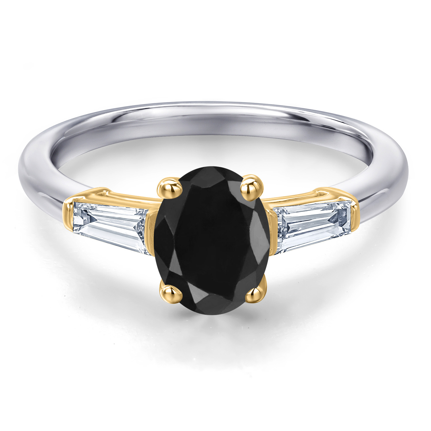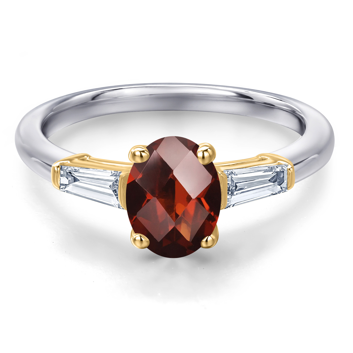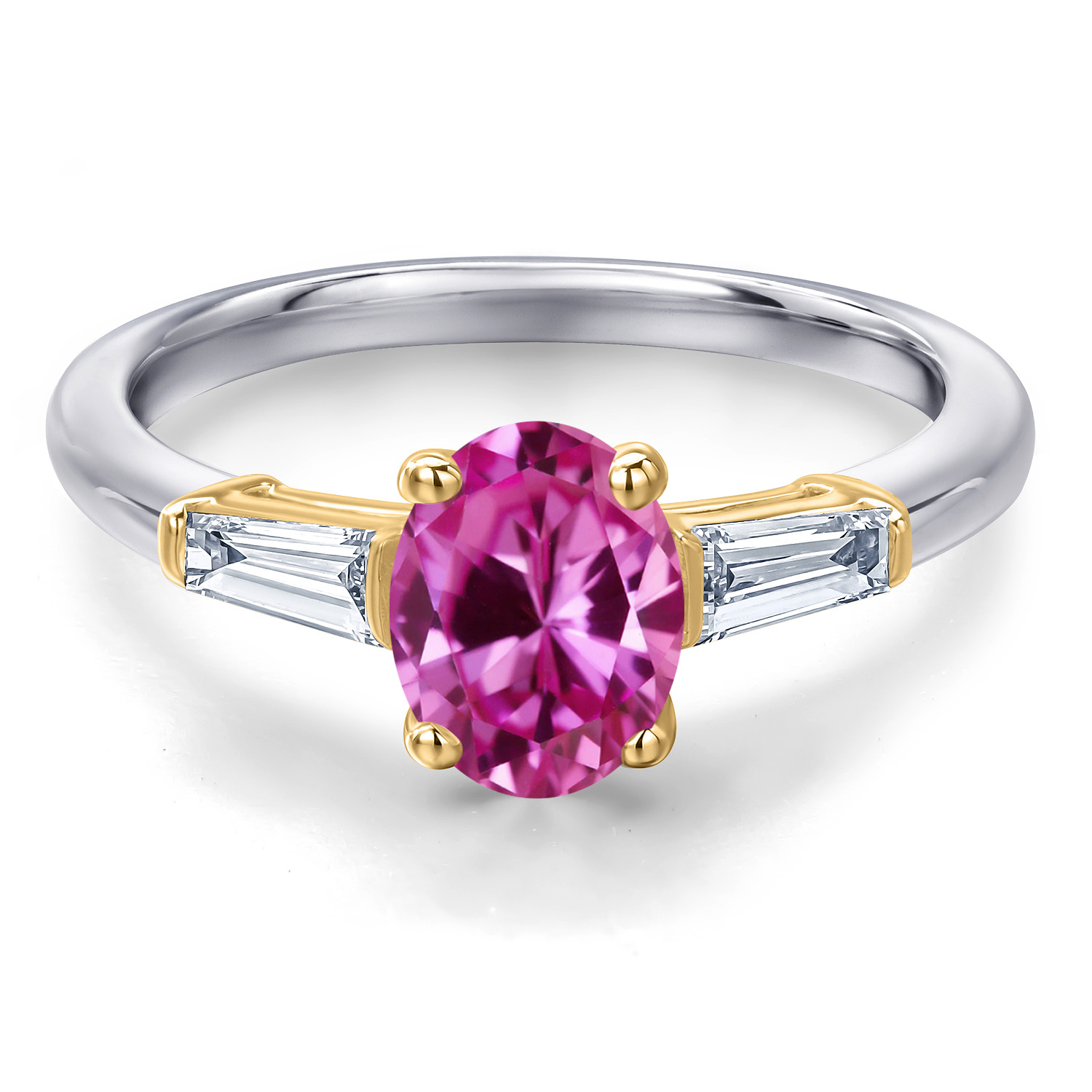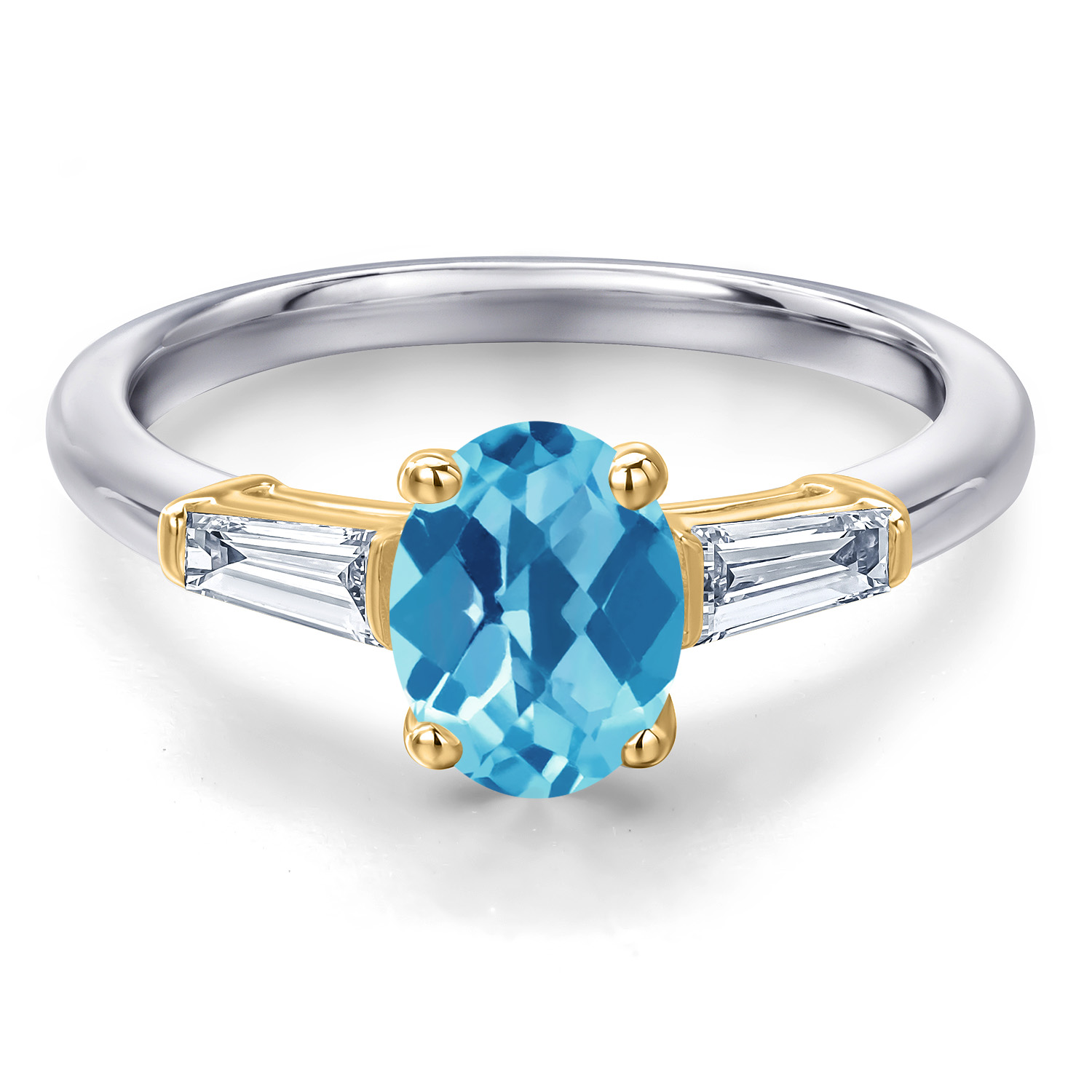 925 Silver and 10K Yellow Gold Gemstone Birthstone and Tapered Baguette Lab Grown Diamond Engagement Ring For Women | Oval 8X6MM | Available in Size 5,6,7,8,9