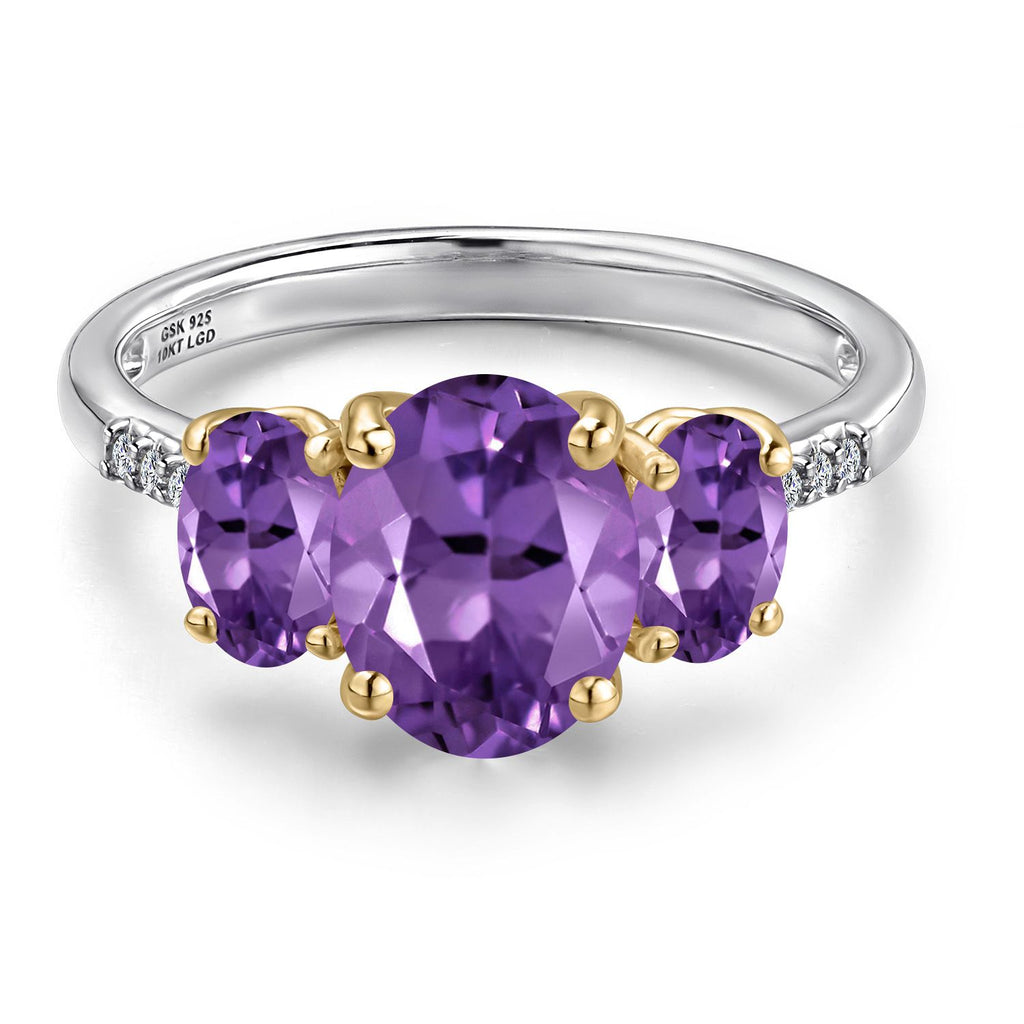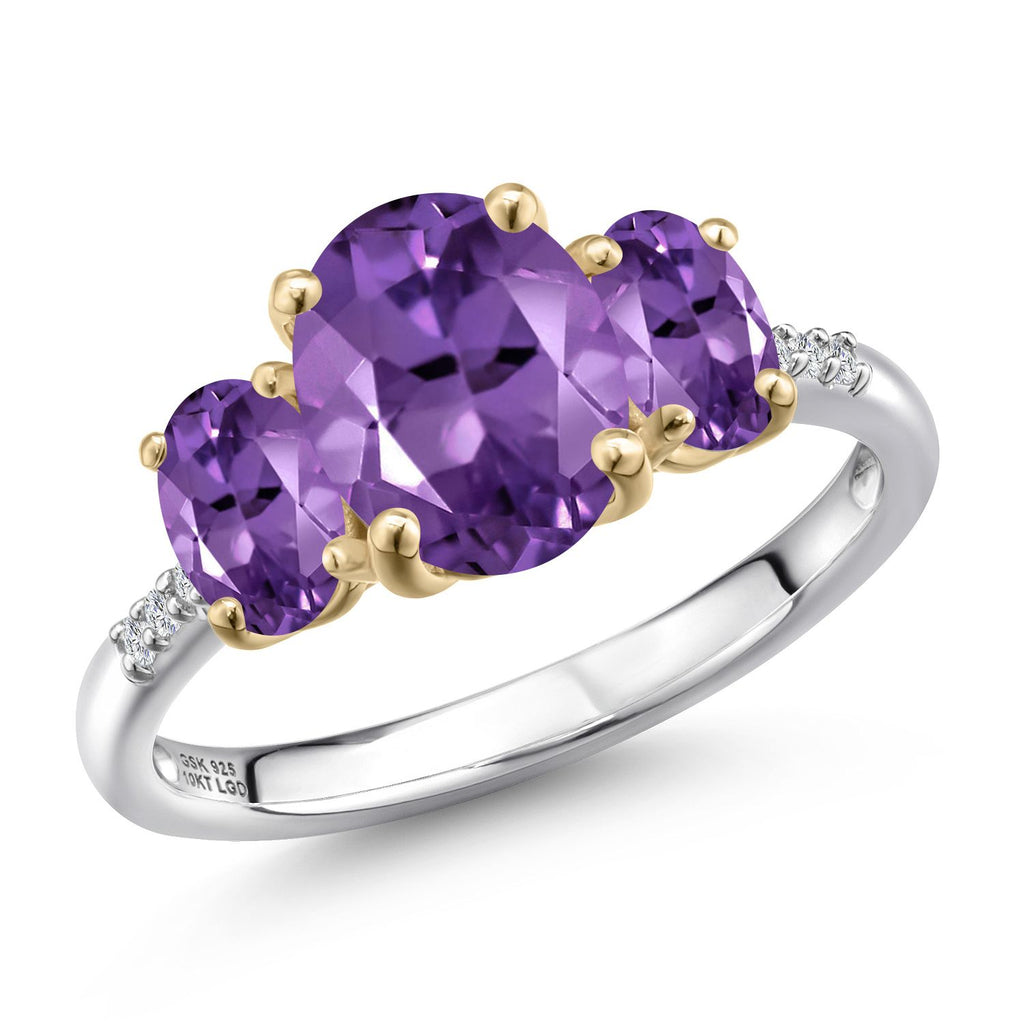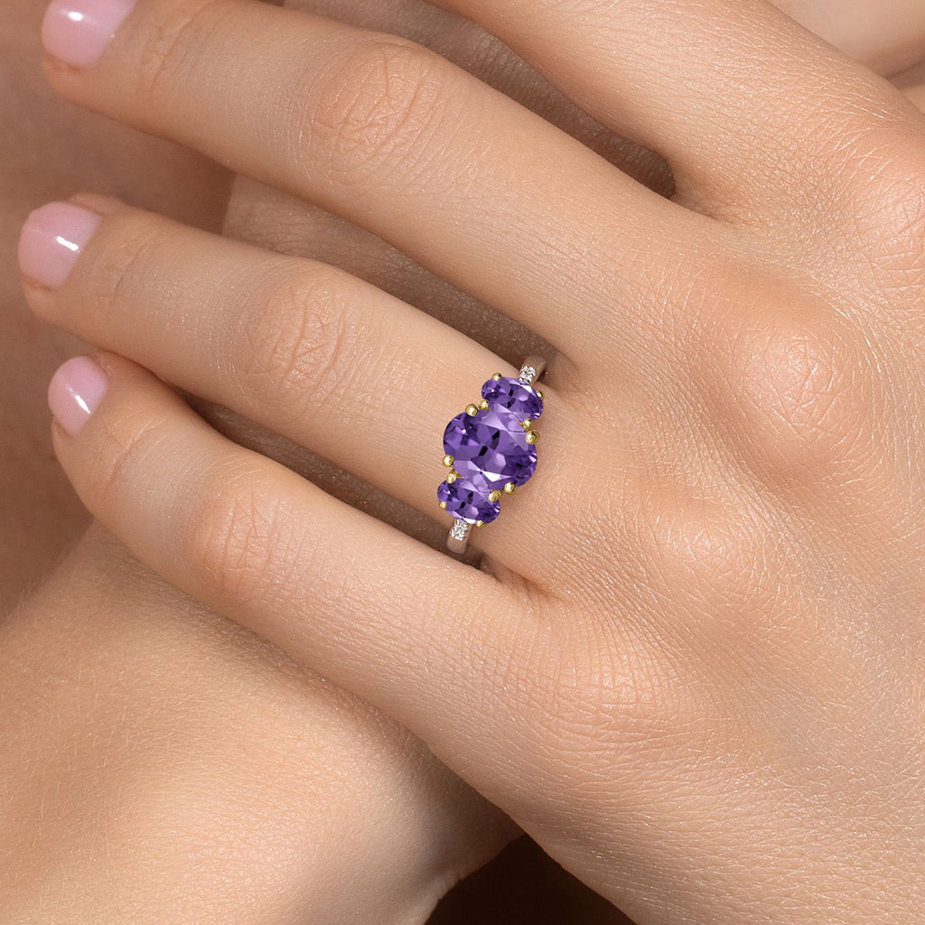MEASUREMENTS: 9x7mm Oval Heat-Treated Purple Amethyst, 6x4mm Oval Heat-Treated Purple Amethyst1, x, 1, mm Round E - F Lab Grown Diamond. Total Carat Weight is 2.56 cttw