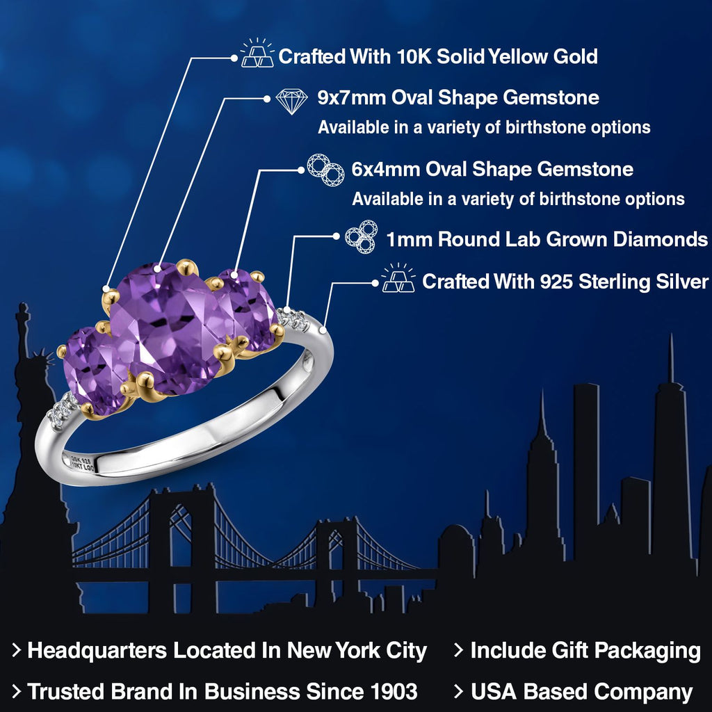 2-Tone Engagement Ring For Women | 925 Silver and 10K Yellow Gold | Gemstone Birthstone | 6MM Cushion Cut | Wedding Anniversary Promise Ring | Available In Size 5, 6, 7, 8, 9