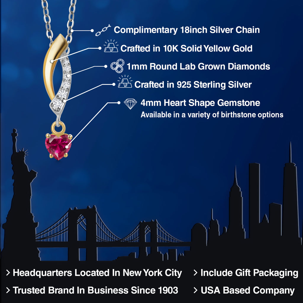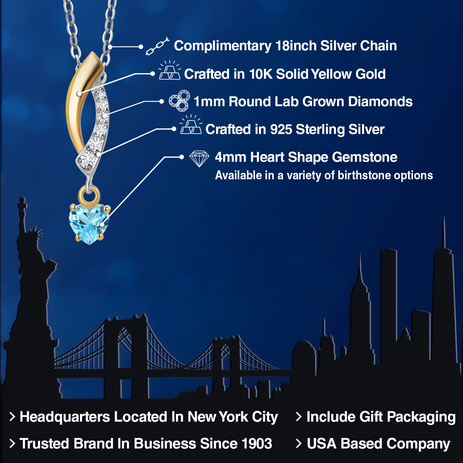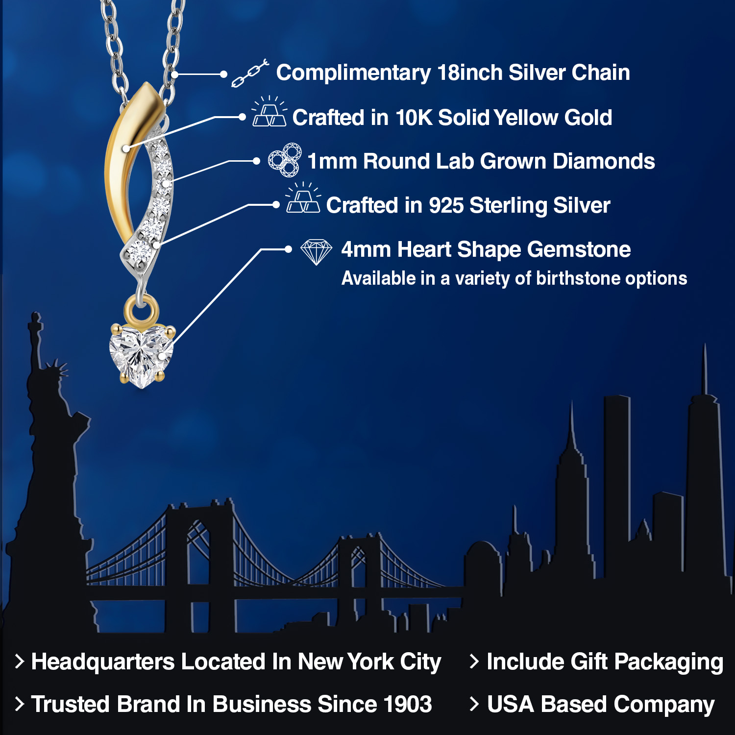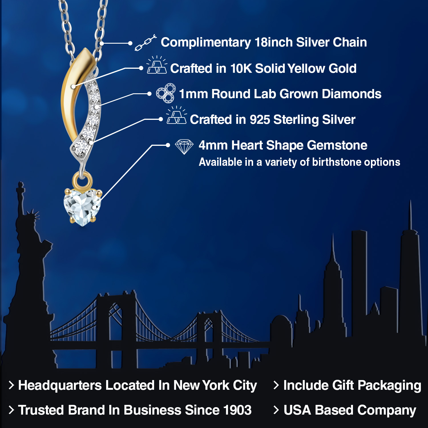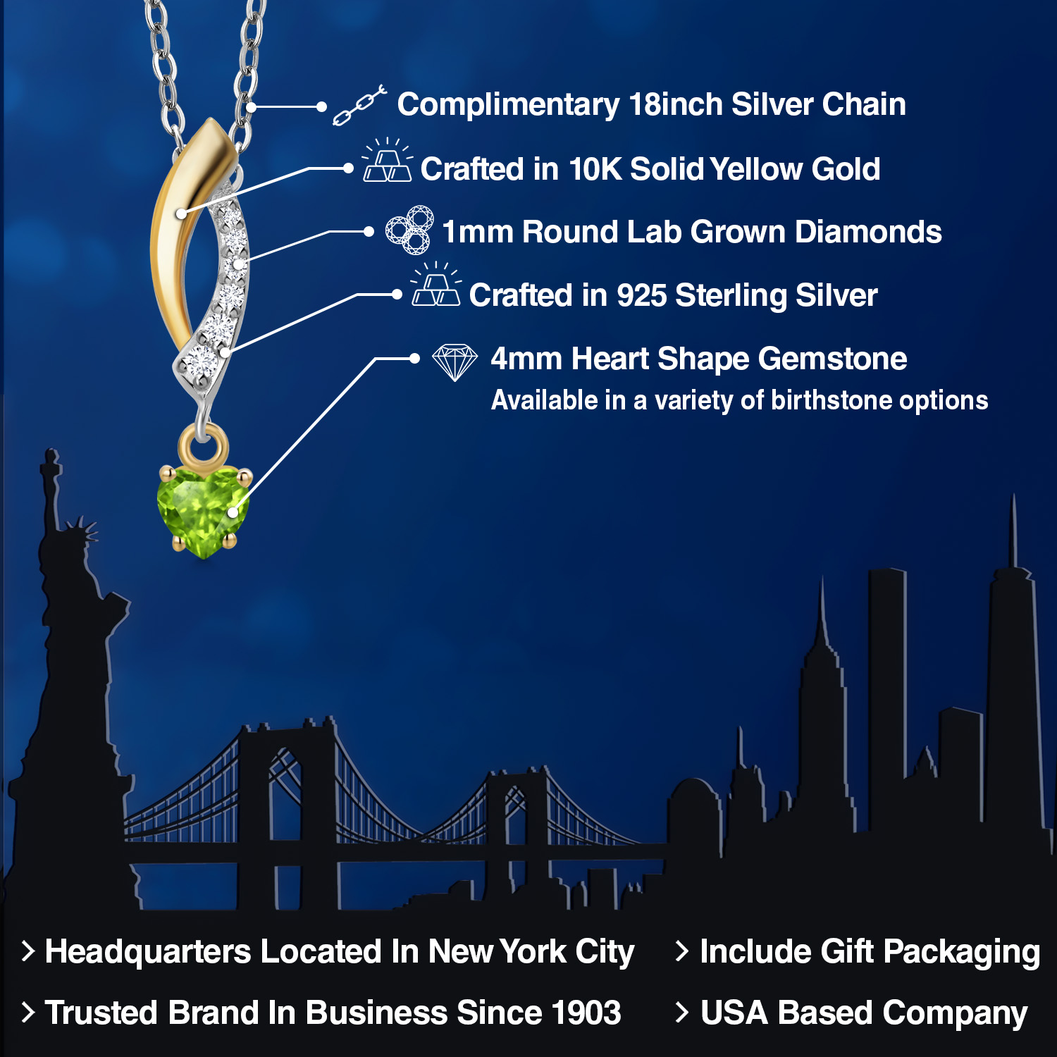 925 Silver and 10K Yellow Gold Gemstone Birthstone and Lab Grown Diamond Infinity Pendant Necklace for Women | Heart Shape 4MM and Round 1MM | With 18 Inch Chain