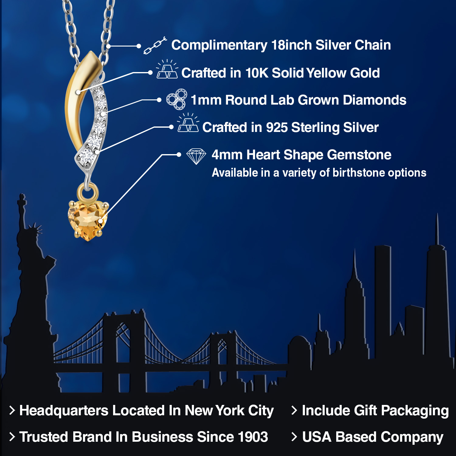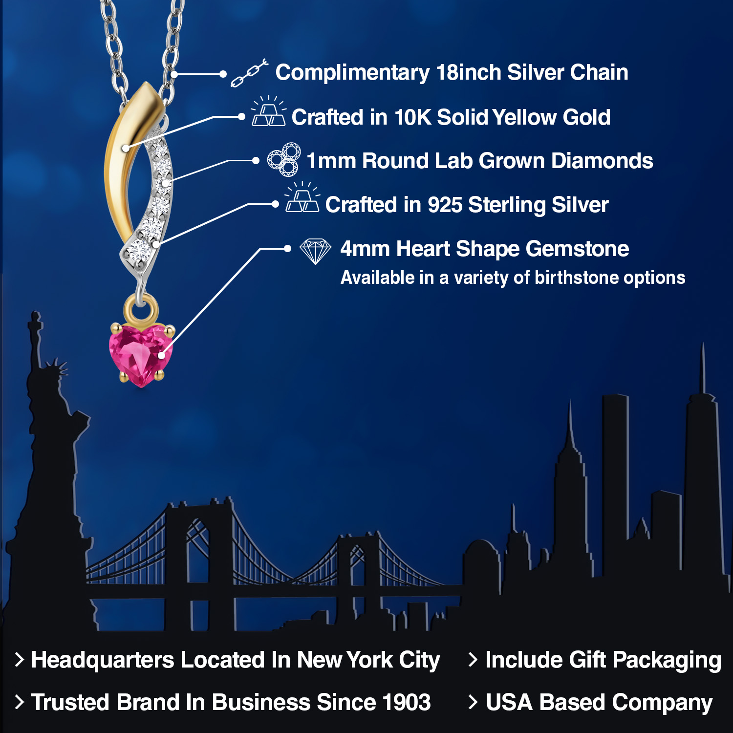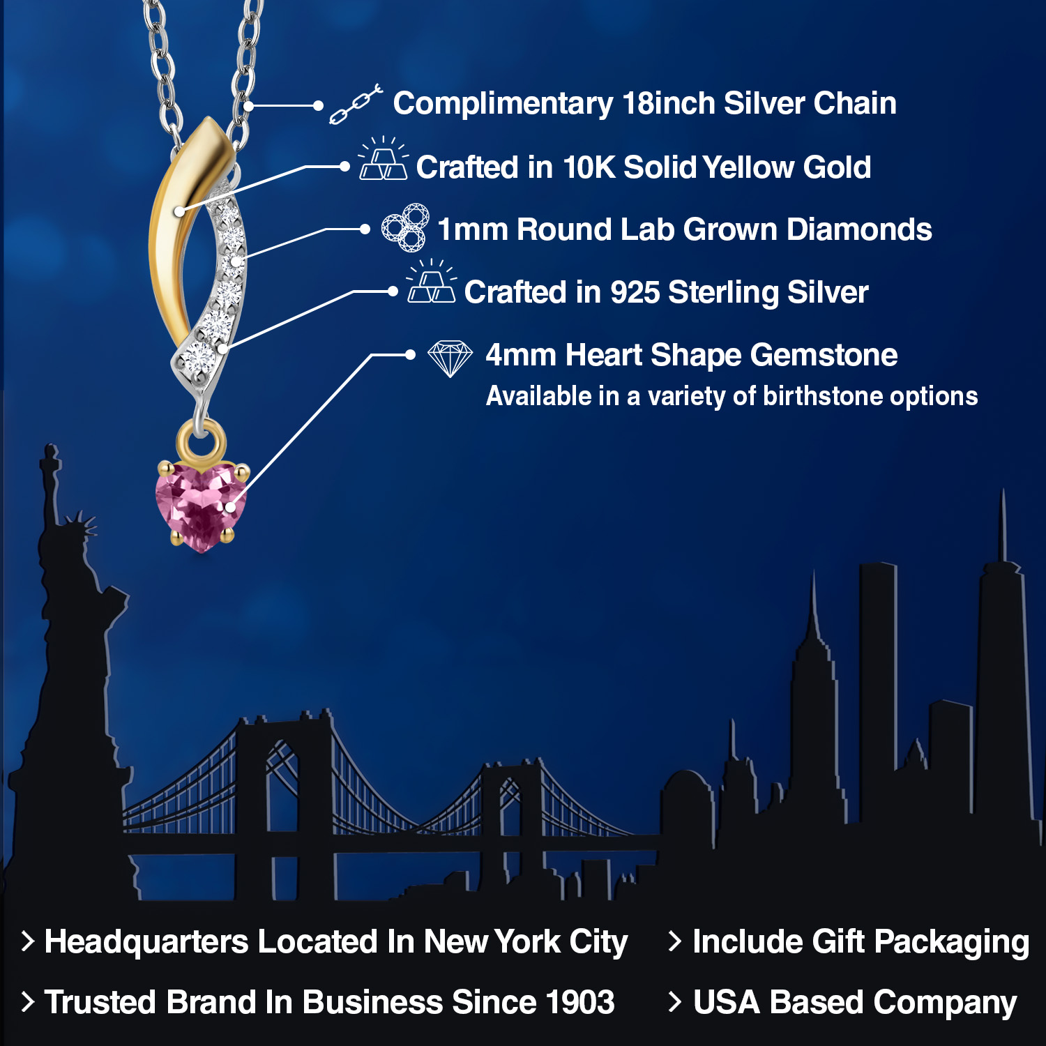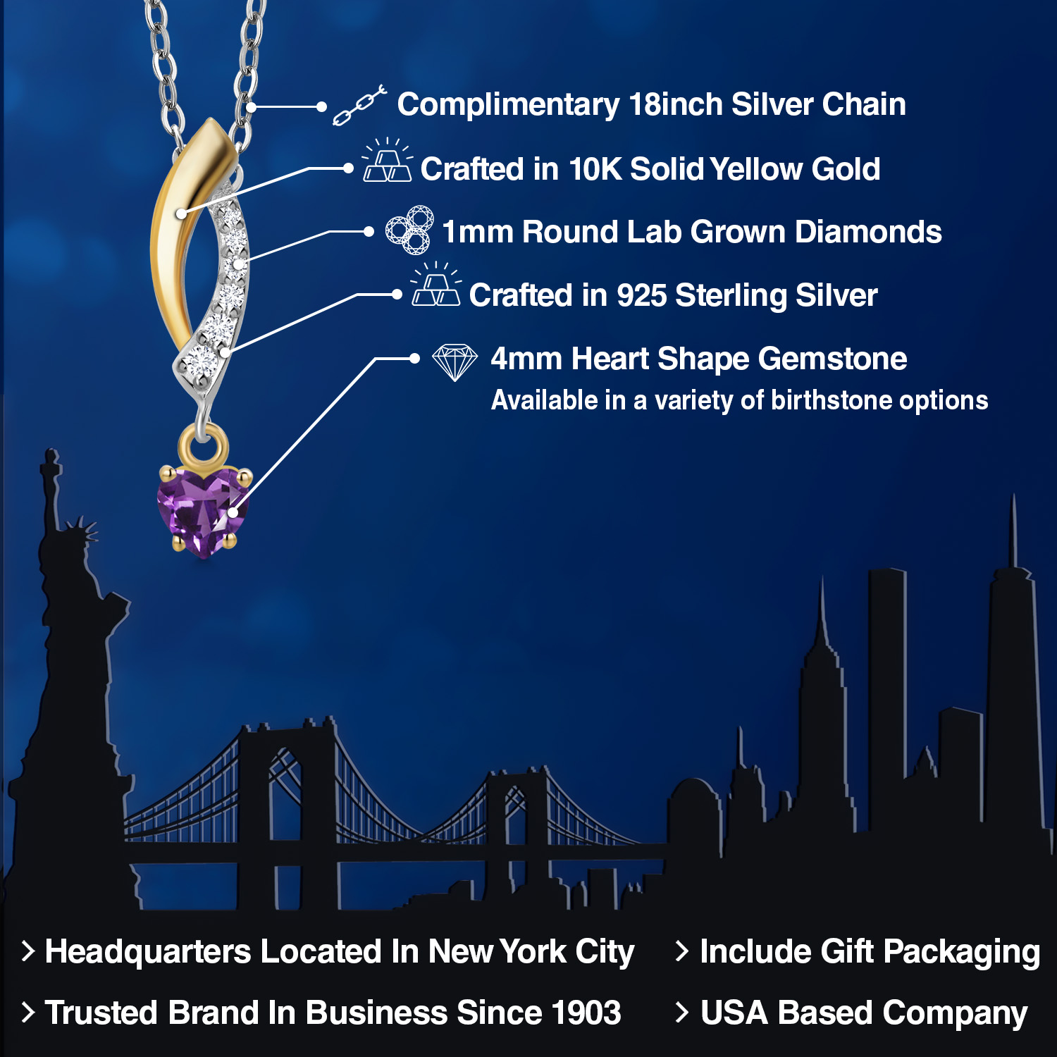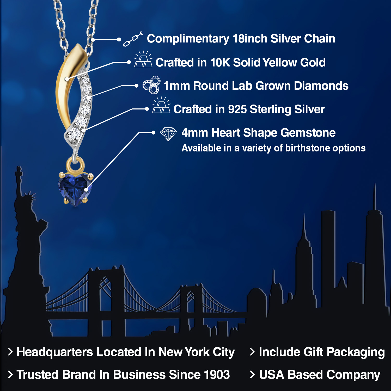 925 Silver and 10K Yellow Gold Gemstone Birthstone and Lab Grown Diamond Infinity Pendant Necklace for Women | Heart Shape 4MM and Round 1MM | With 18 Inch Chain