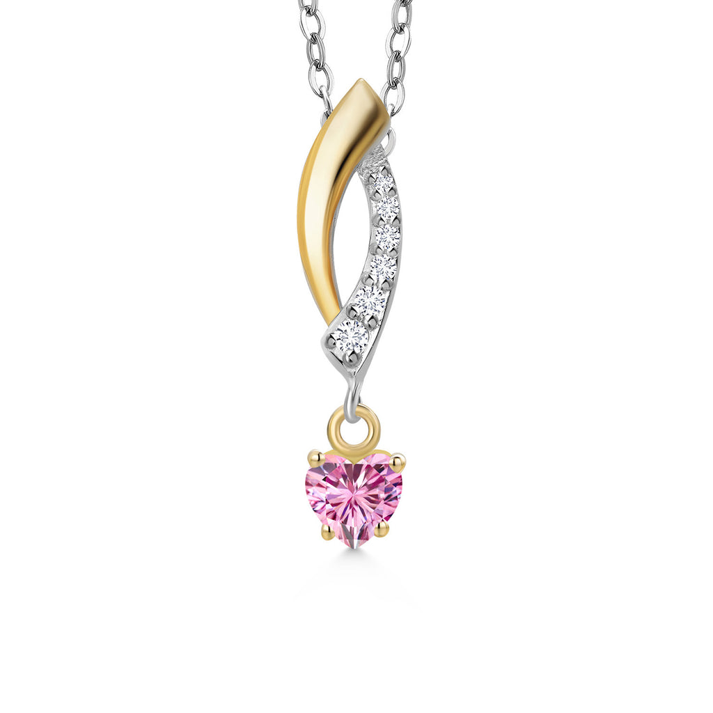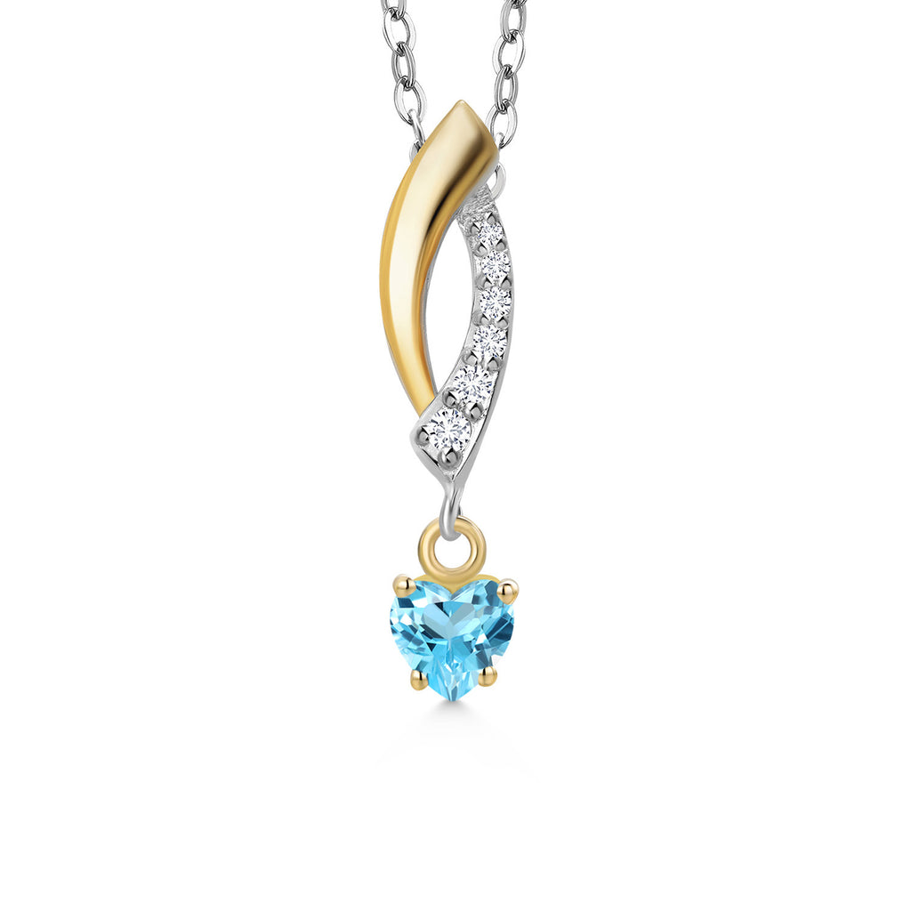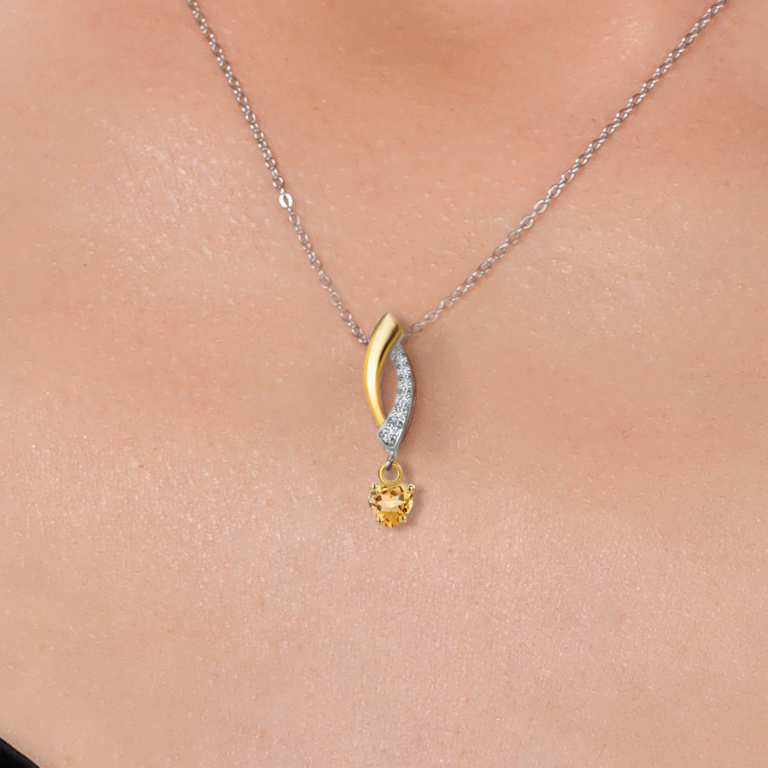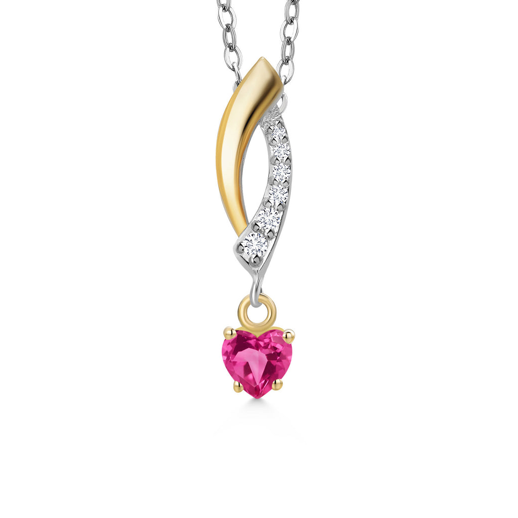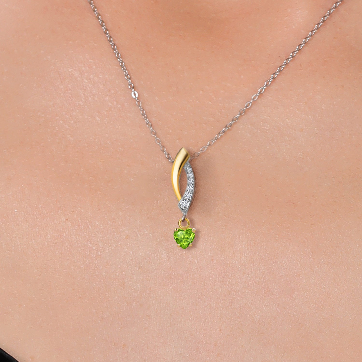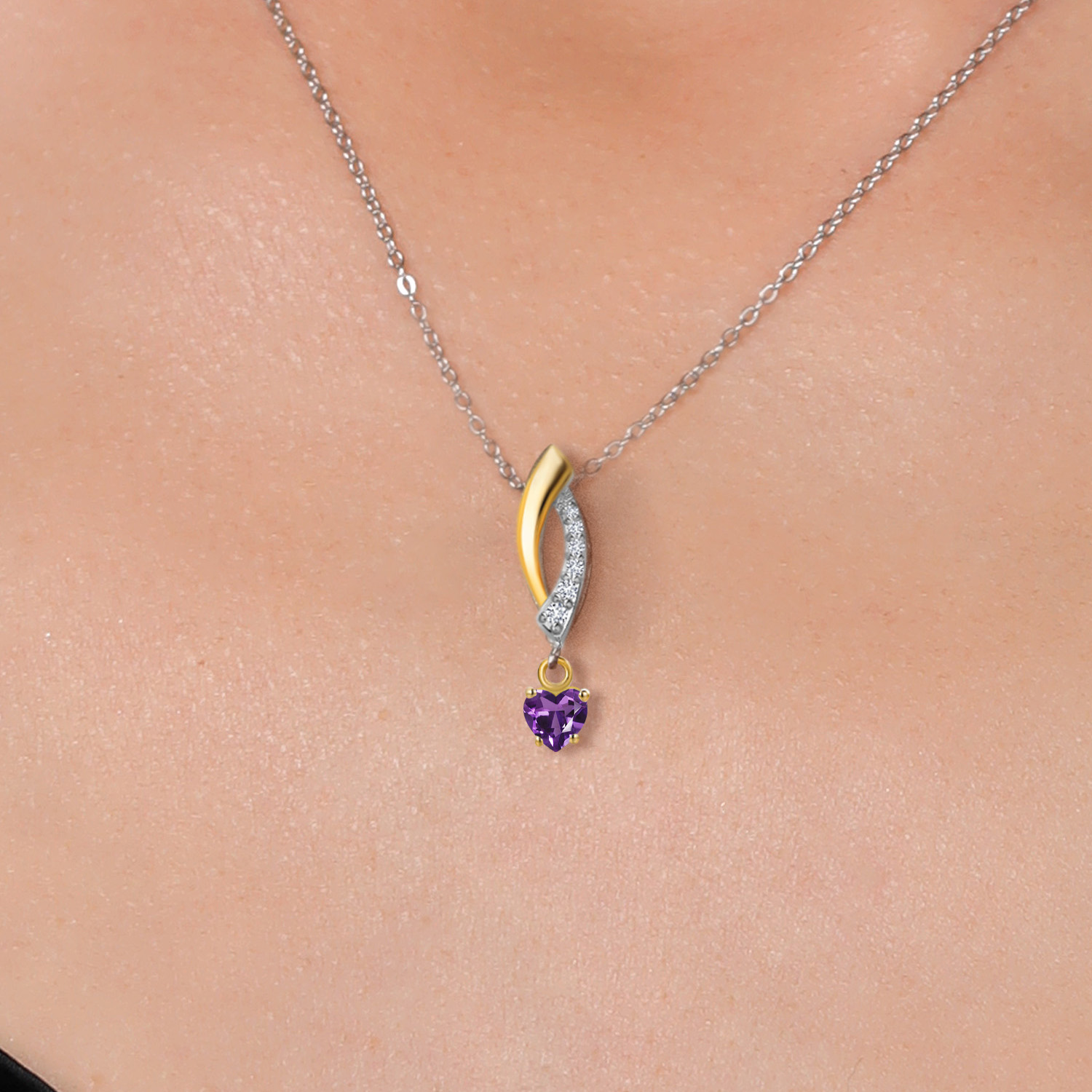 925 Silver and 10K Yellow Gold Gemstone Birthstone and Lab Grown Diamond Infinity Pendant Necklace for Women | Heart Shape 4MM and Round 1MM | With 18 Inch Chain
