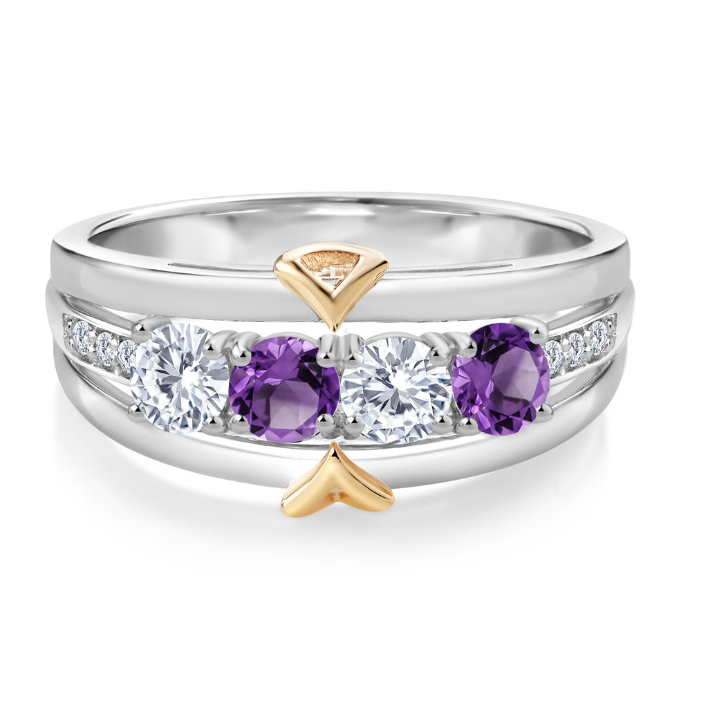 EXQUISITE GEMSTONE COMBINATION: Revel in the beauty of this unique band ring that features a stunning combination of purple amethyst, white moissanite, and lab-grown diamonds. The arrangement creates a mesmerizing and elegant look.