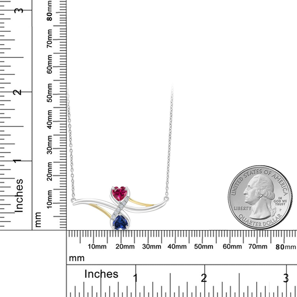 925 Silver and 10K Yellow Gold Red Created Ruby and Blue Created Sapphire with White Lab Grown Diamond Pendant Necklace For Women (1.16 Cttw, with 18 Inch Chain)