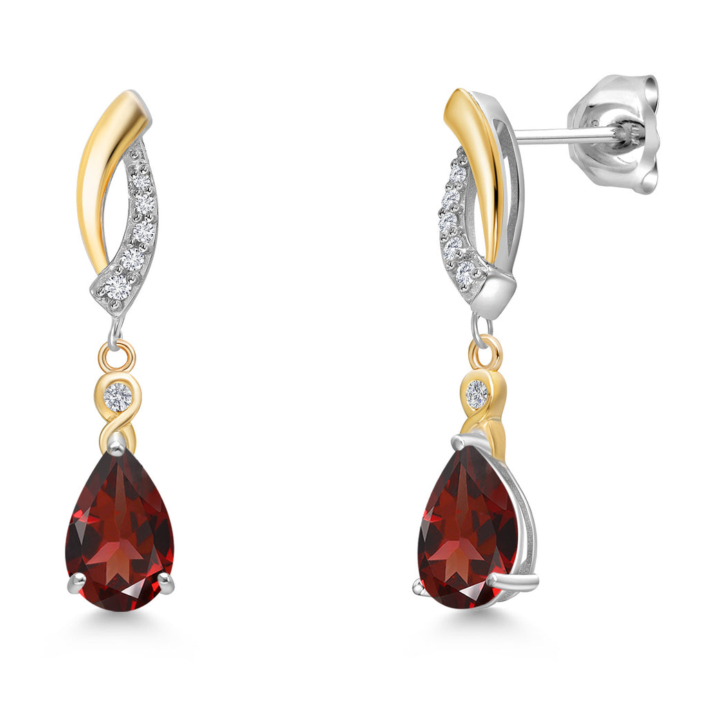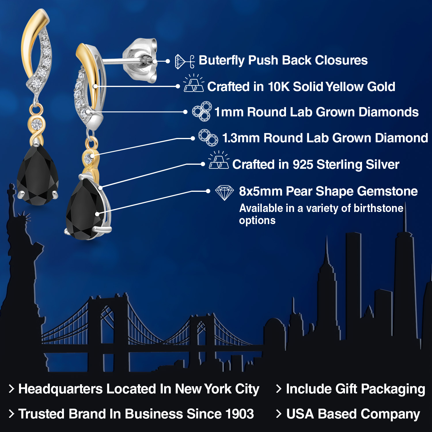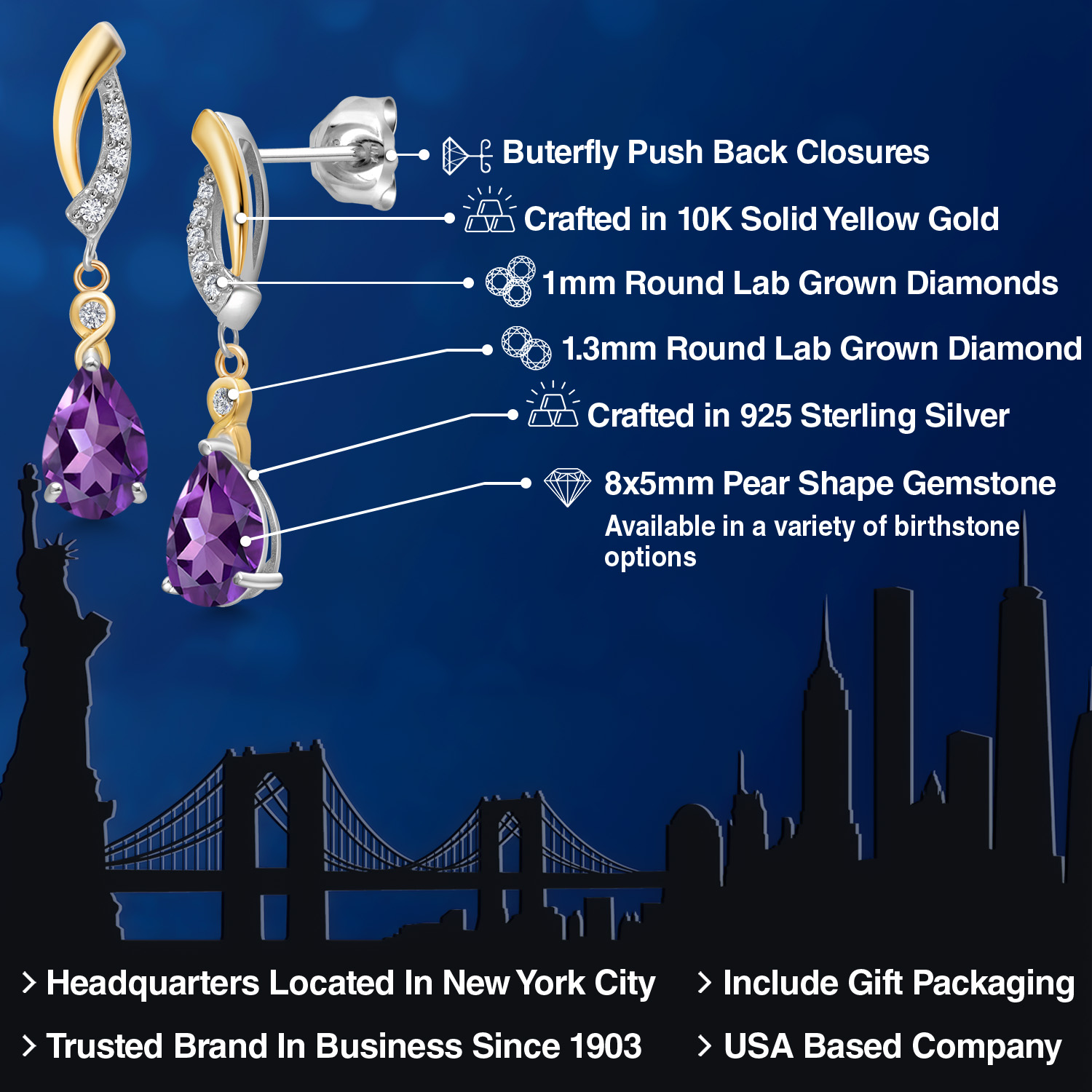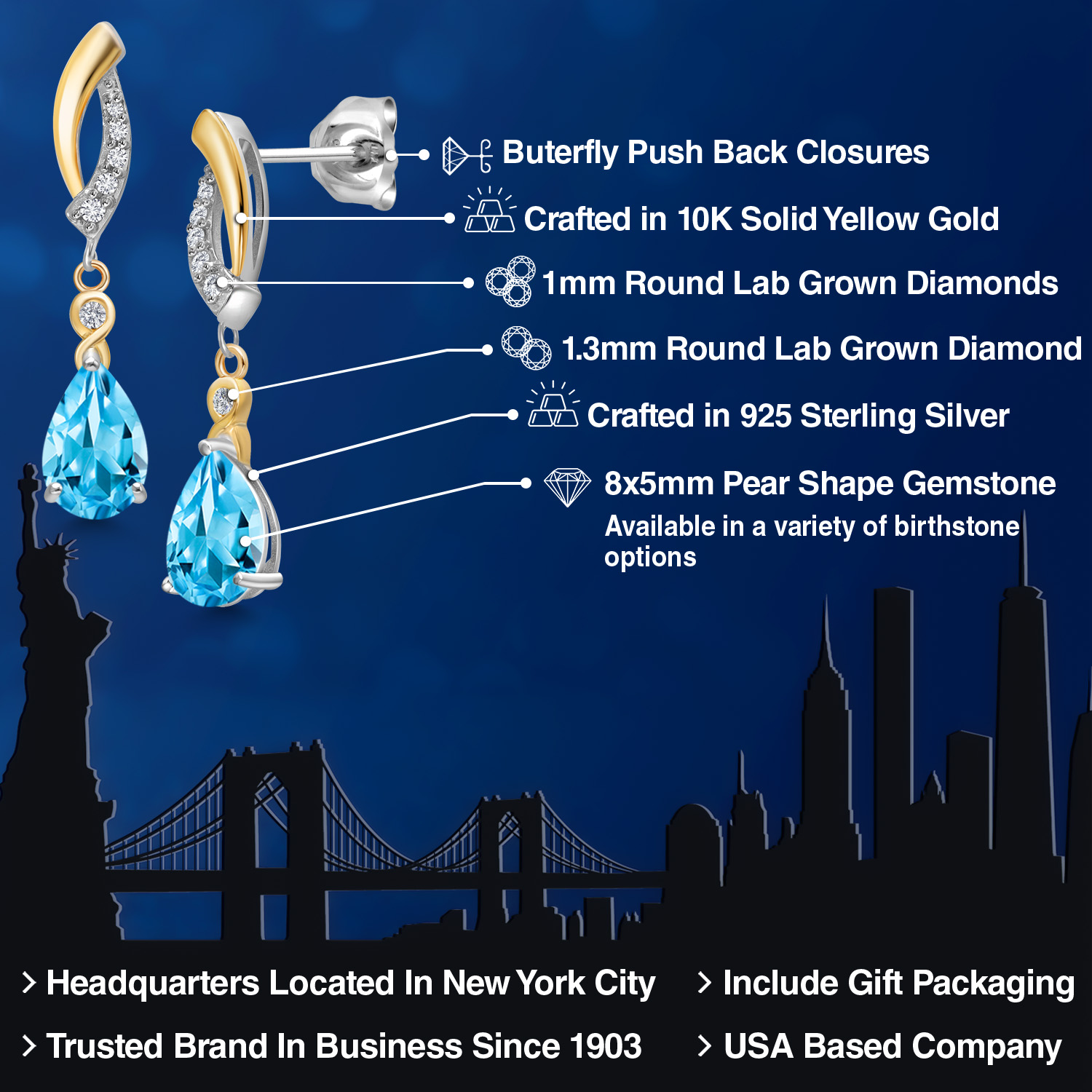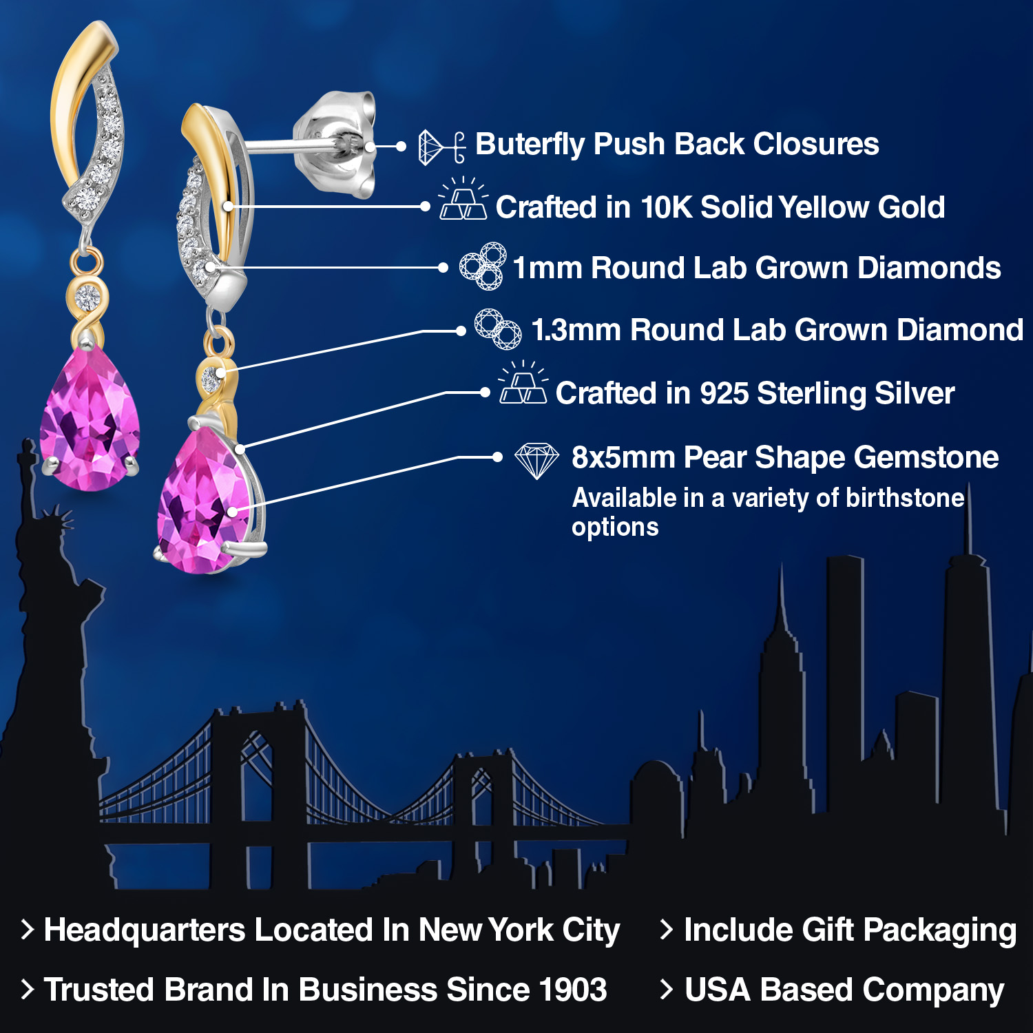 ELEGANT TWO-TONE DESIGN: These stunning dangle earrings feature a luxurious combination of 925 Sterling Silver and 10K Yellow Gold, creating a timeless and sophisticated look. The two-tone setting beautifully enhances the vibrant gemstone birthstone, making these earrings a perfect accessory for any occasion.