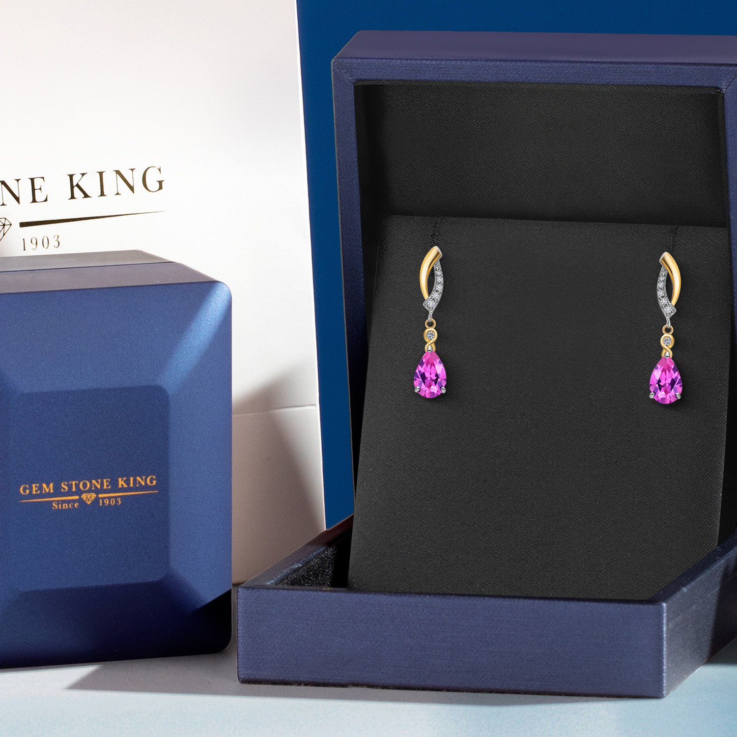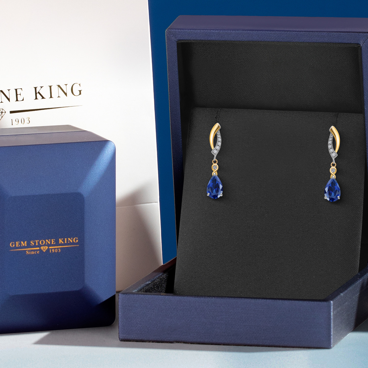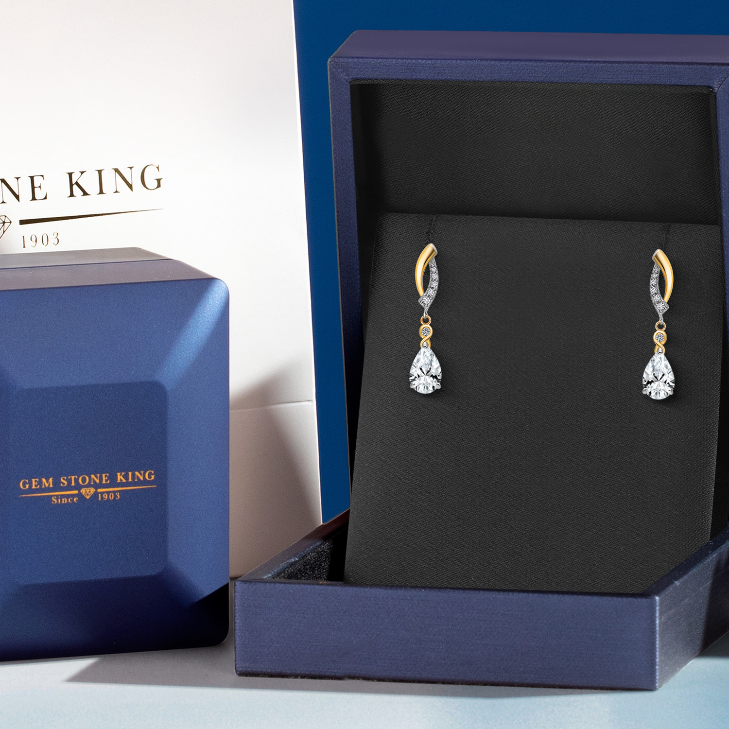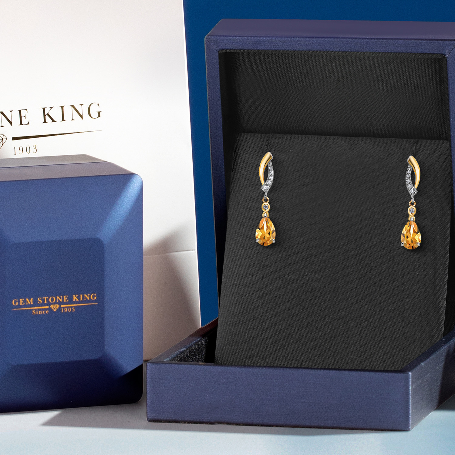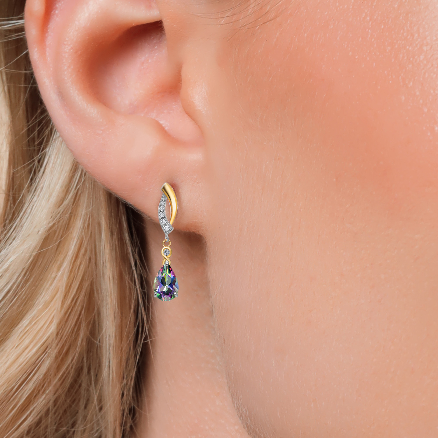 ELEGANT TWO-TONE DESIGN: These stunning dangle earrings feature a luxurious combination of 925 Sterling Silver and 10K Yellow Gold, creating a timeless and sophisticated look. The two-tone setting beautifully enhances the vibrant gemstone birthstone, making these earrings a perfect accessory for any occasion.