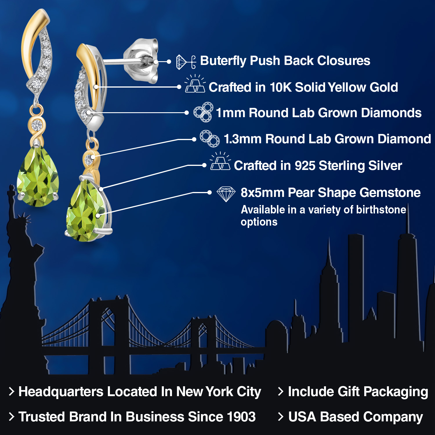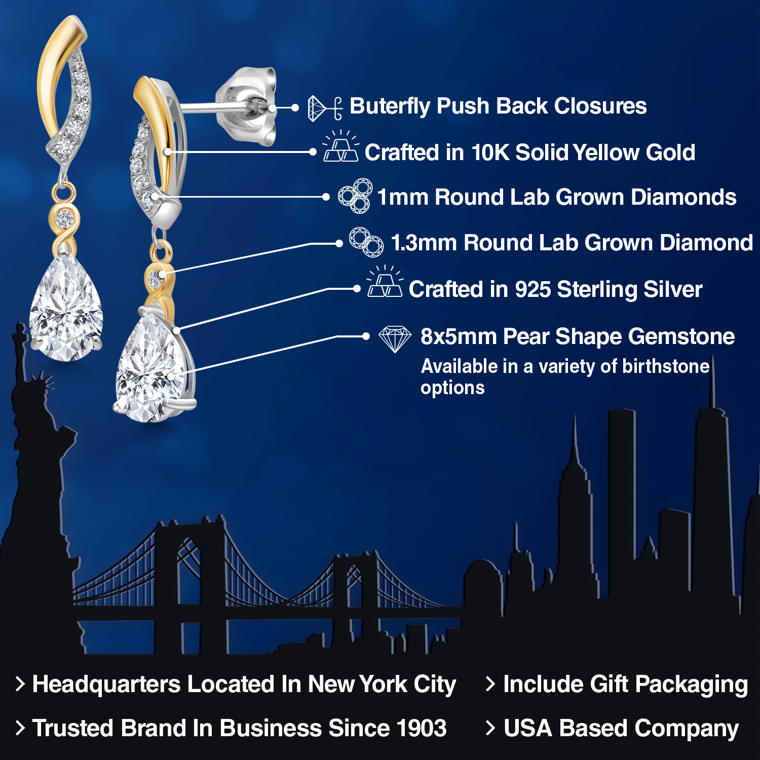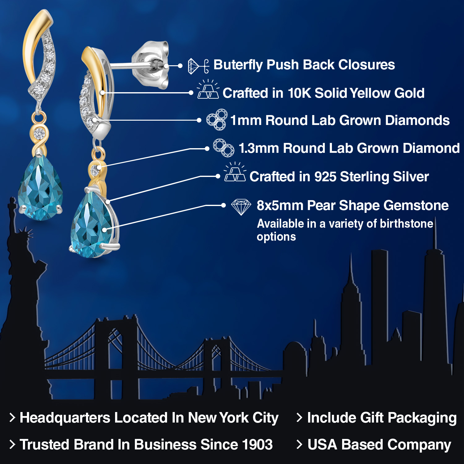 DAZZLING GEMSTONE AND DIAMOND COMBINATION: Each earring showcases a captivating pear-shaped 8x5MM gemstone birthstone, accented by sparkling white lab-grown diamonds. This elegant combination of gemstones and diamonds adds a touch of brilliance and sophistication to any outfit.