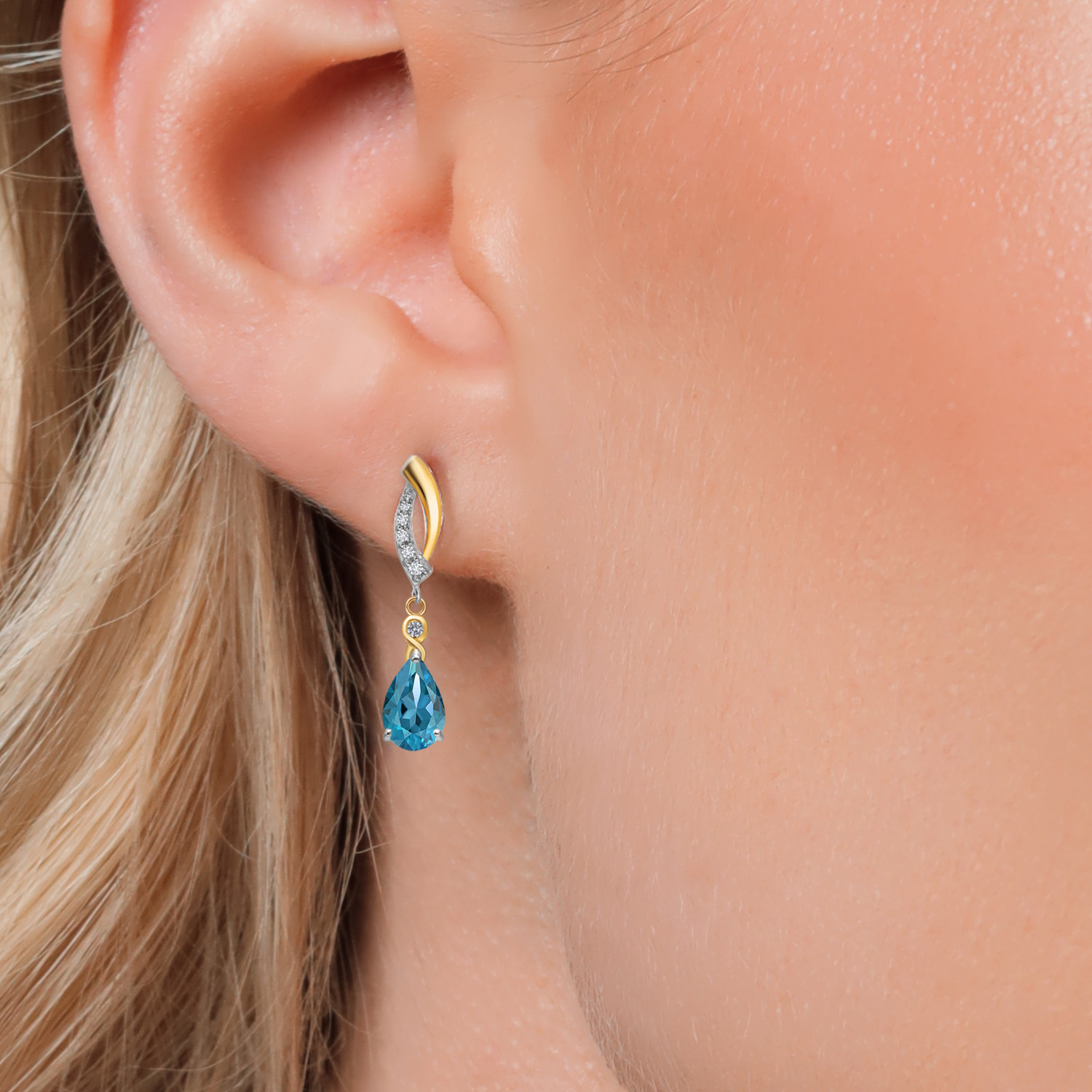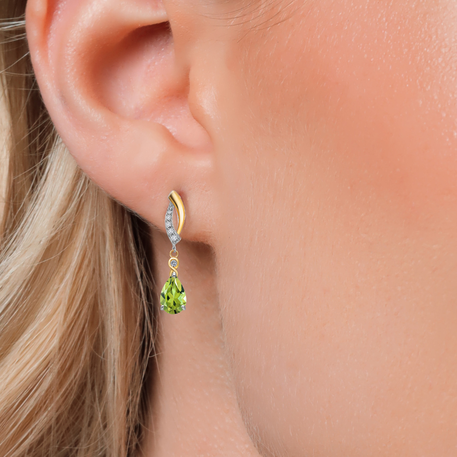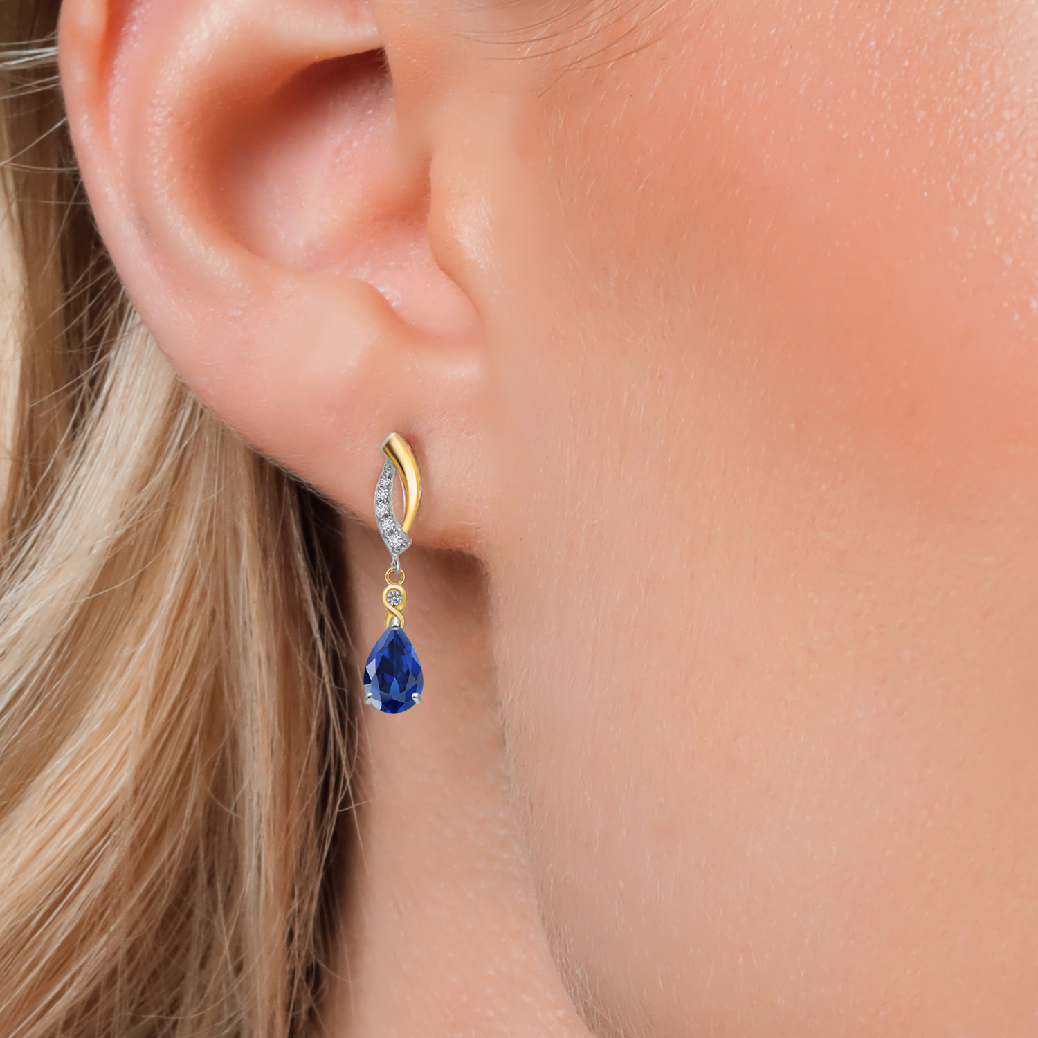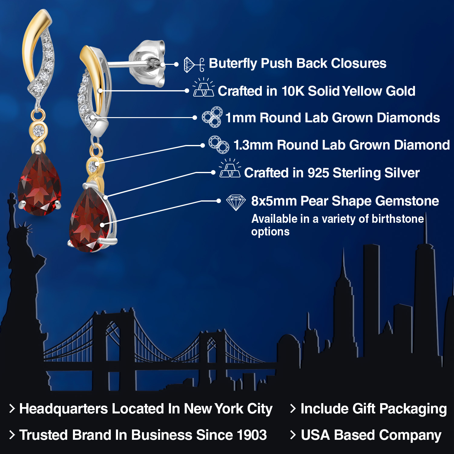 DAZZLING GEMSTONE AND DIAMOND COMBINATION: Each earring showcases a captivating pear-shaped 8x5MM gemstone birthstone, accented by sparkling white lab-grown diamonds. This elegant combination of gemstones and diamonds adds a touch of brilliance and sophistication to any outfit.