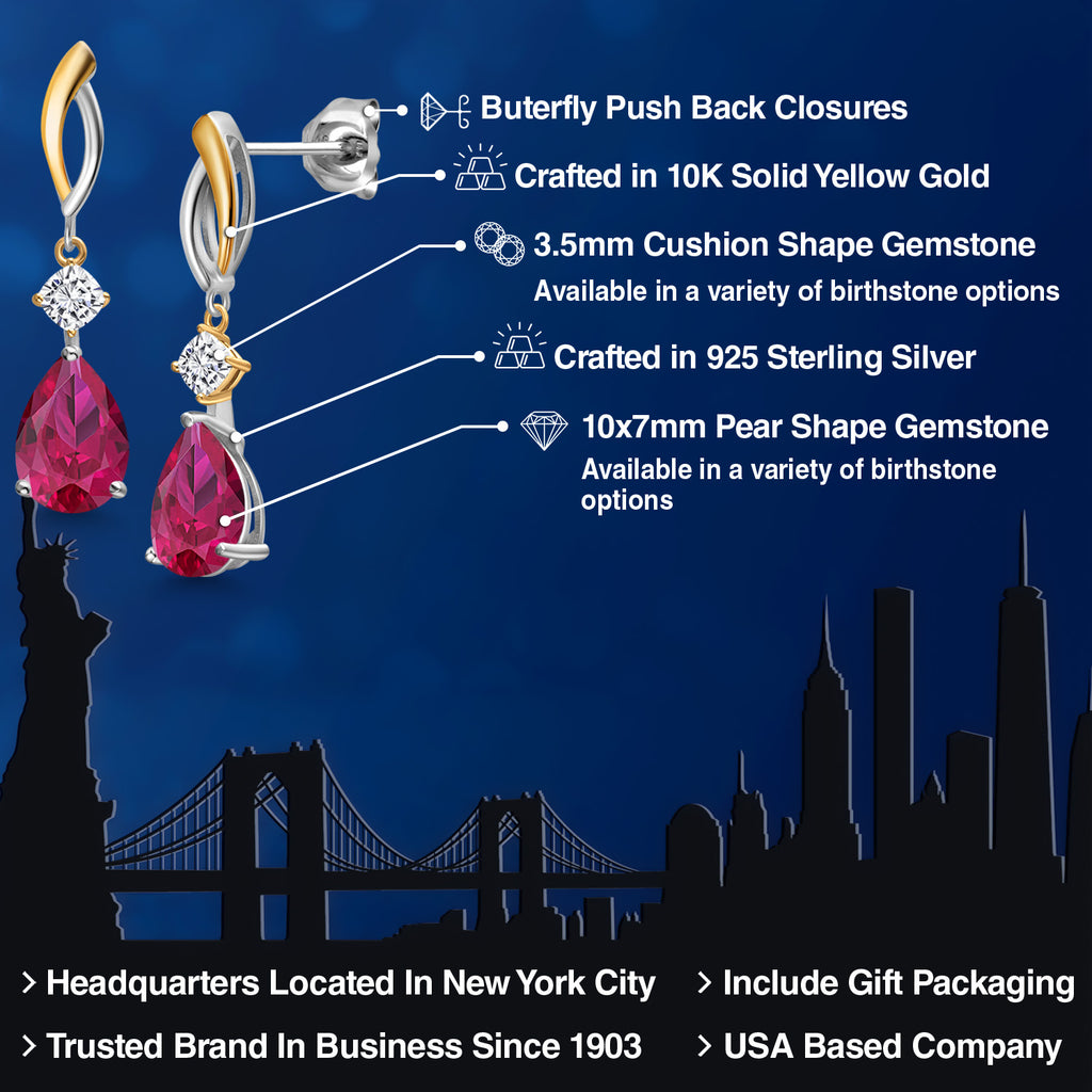 2-Tone Engagement Ring For Women | 925 Silver and 10K Yellow Gold | Gemstone Birthstone | 6MM Cushion Cut | Wedding Anniversary Promise Ring | Available In Size 5, 6, 7, 8, 9