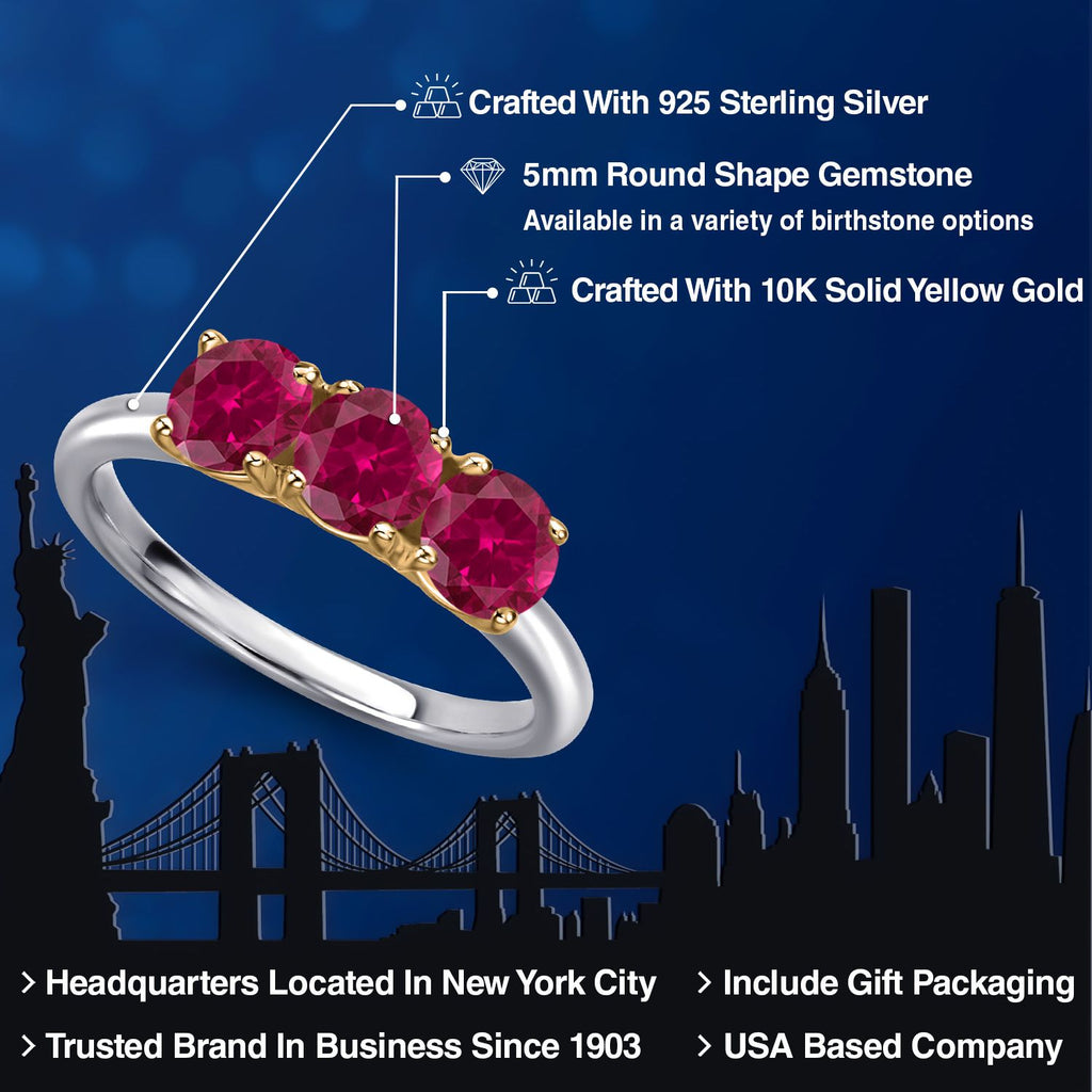 2-Tone Engagement Ring For Women | 925 Silver and 10K Yellow Gold | Gemstone Birthstone | 6MM Cushion Cut | Wedding Anniversary Promise Ring | Available In Size 5, 6, 7, 8, 9