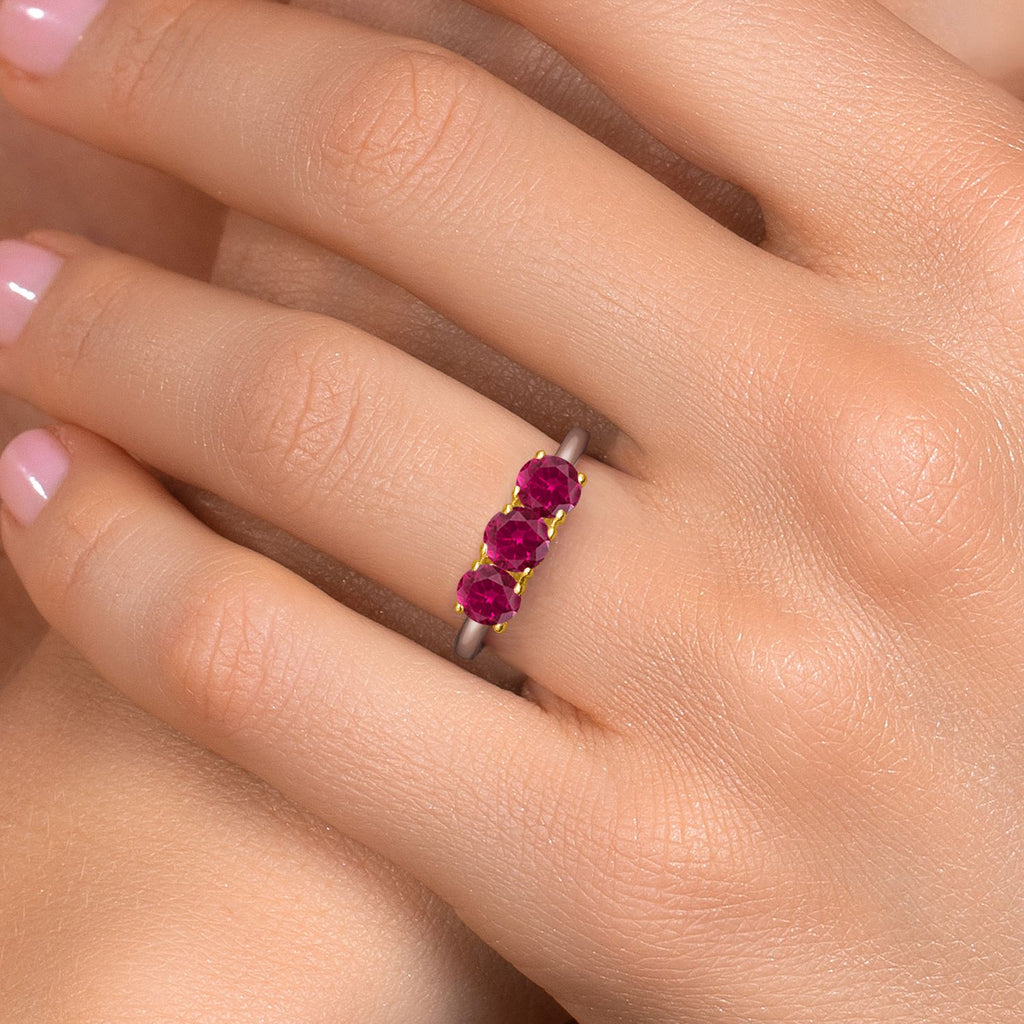 MEASUREMENTS: 5x5mm Round Heat-Treated Red Created Ruby, 5x5mm Round Heat-Treated Red Created Ruby. Total Carat Weight is 1.8 cttw