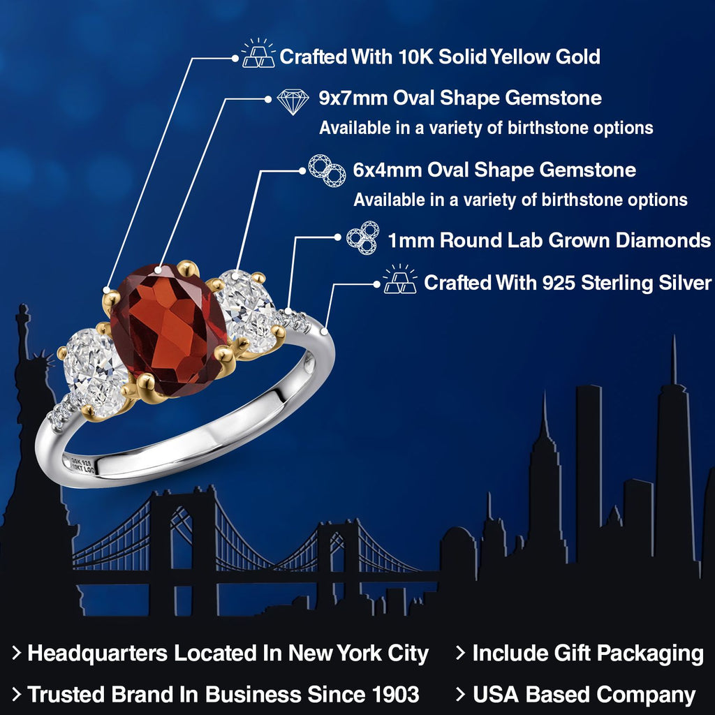 2-Tone Engagement Ring For Women | 925 Silver and 10K Yellow Gold | Gemstone Birthstone | 6MM Cushion Cut | Wedding Anniversary Promise Ring | Available In Size 5, 6, 7, 8, 9