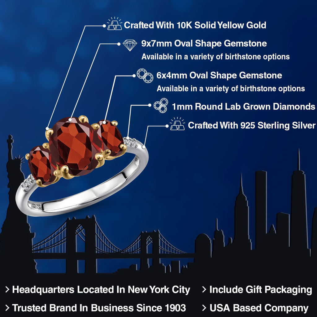 MEASUREMENTS: 9x7mm Oval Red Garnet, 6x4mm Oval Red Garnet1, x, 1, mm Round E - F Lab Grown Diamond. Total Carat Weight is 3.33 cttw