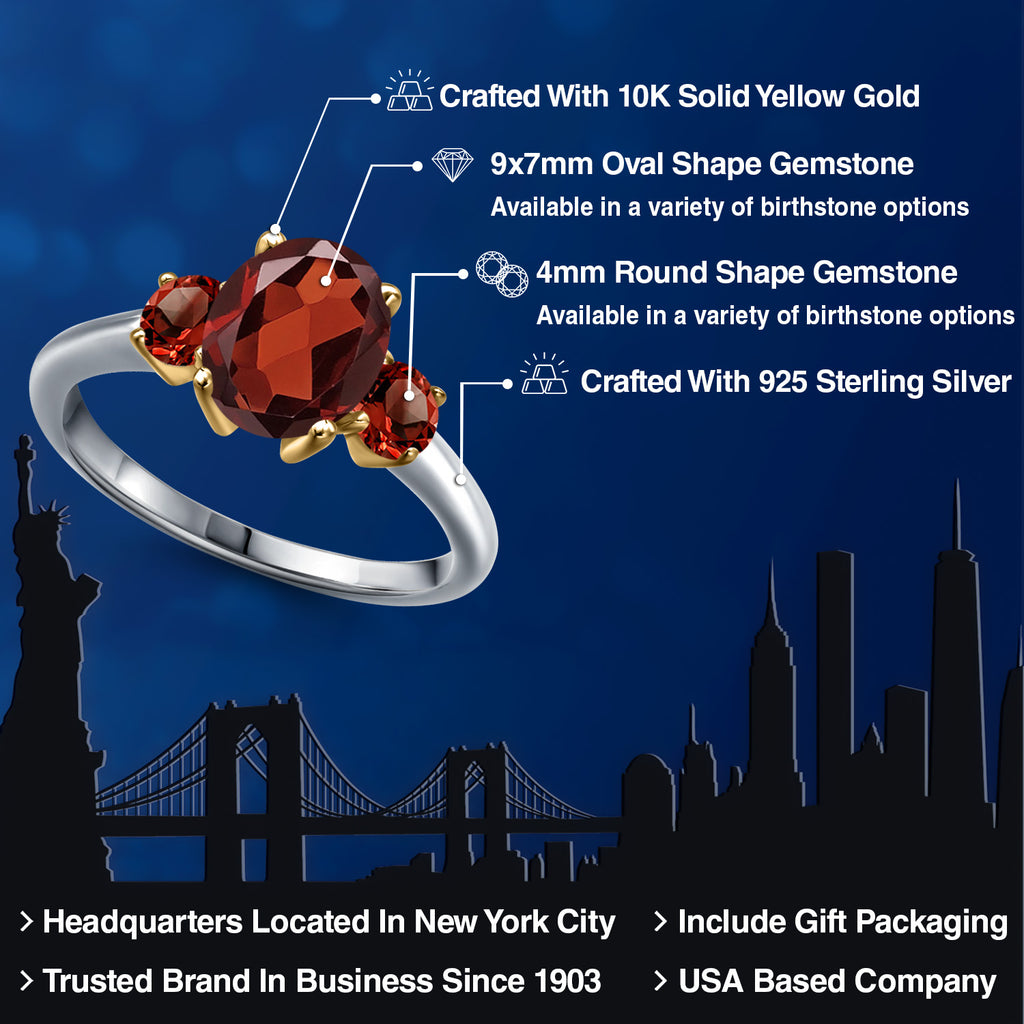 2-Tone Engagement Ring For Women | 925 Silver and 10K Yellow Gold | Gemstone Birthstone | 6MM Cushion Cut | Wedding Anniversary Promise Ring | Available In Size 5, 6, 7, 8, 9