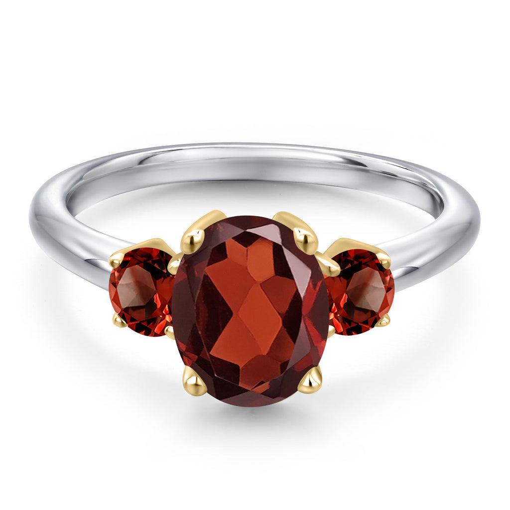 MEASUREMENTS: 9x7mm Oval Red Garnet, 4x4mm Round Red Garnet. Total Carat Weight is 2.87 cttw