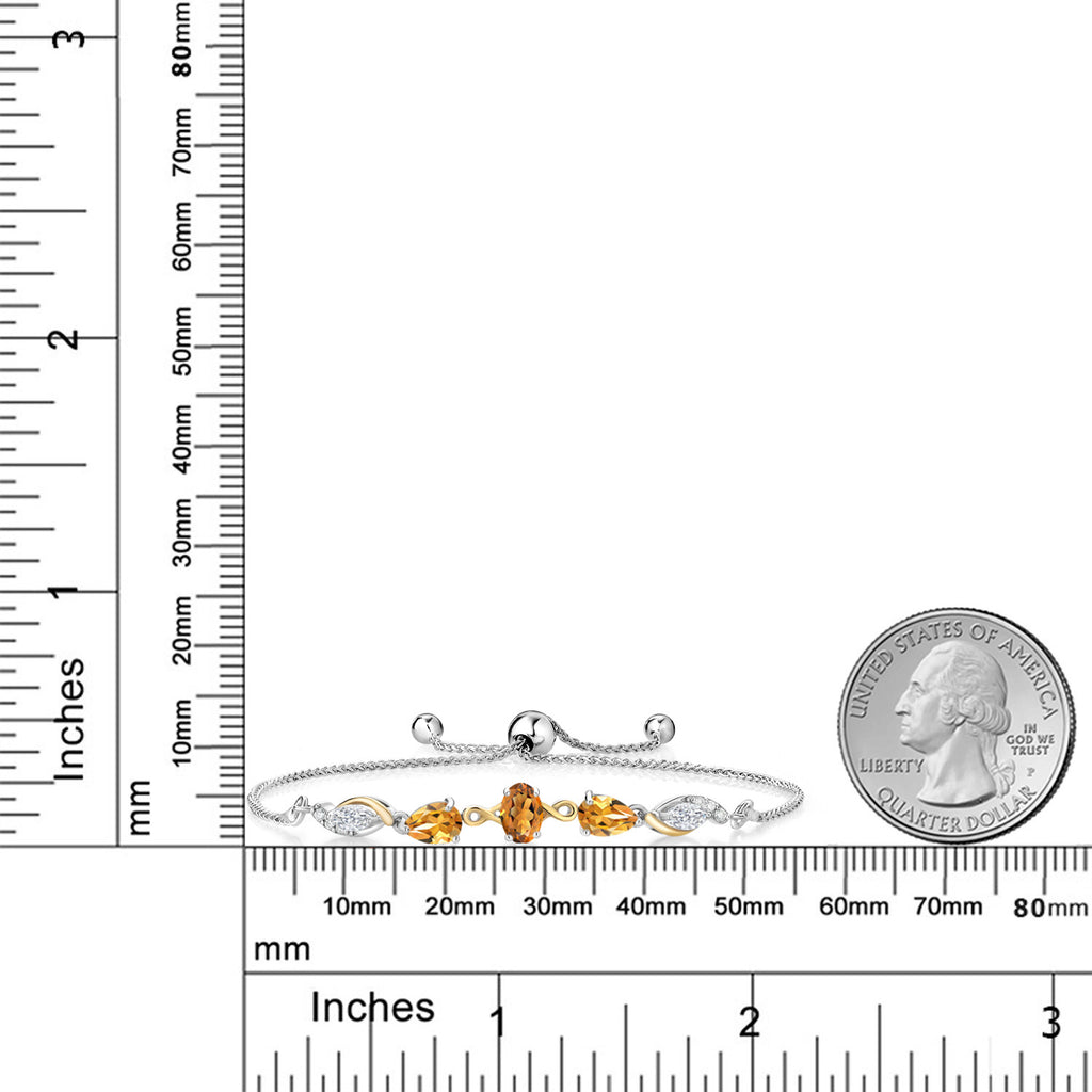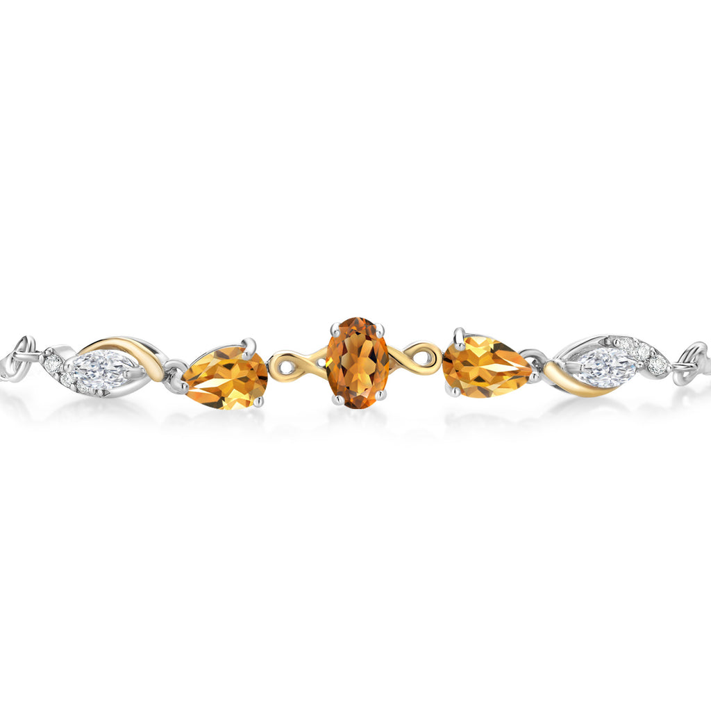 6X4MM MADEIRA CITRINE, 6X4MM YELLOW CITRINE, AND 5X2.5MM MOISSANITE GEMSTONES: This exquisite tennis bracelet features oval Madeira citrine, pear-shaped yellow citrine, and marquise-cut near-colorless moissanite accented by lab-grown diamonds totaling 1.30 cttw, radiating warmth and brilliance.