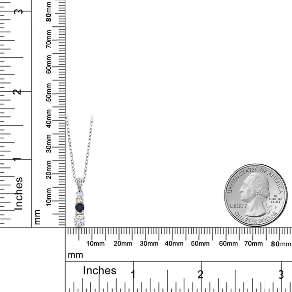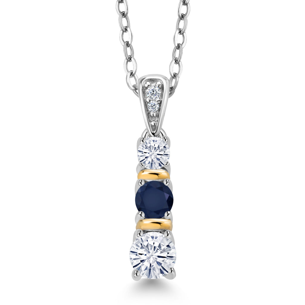 EXQUISITE CRAFTSMANSHIP AND DESIGN: This elegant pendant necklace features a total of 0.55 Cttw of stunning gemstones, including round 4MM and 3MM white moissanite and a 3.5MM blue sapphire. Set in a combination of high-quality 925 Silver and 10K Yellow Gold, this necklace showcases a beautiful and sophisticated design.