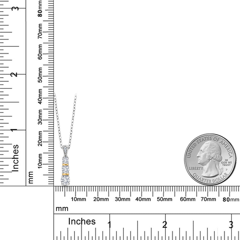 Gem Stone King 0.54 Cttw Round White Lab Grown Diamond Pendant Necklace For Women | 925 Silver and 10K Yellow Gold | Gemstone April Birthstone | DEF Color | VVS-VS Clarity | With 18 Inch Chain